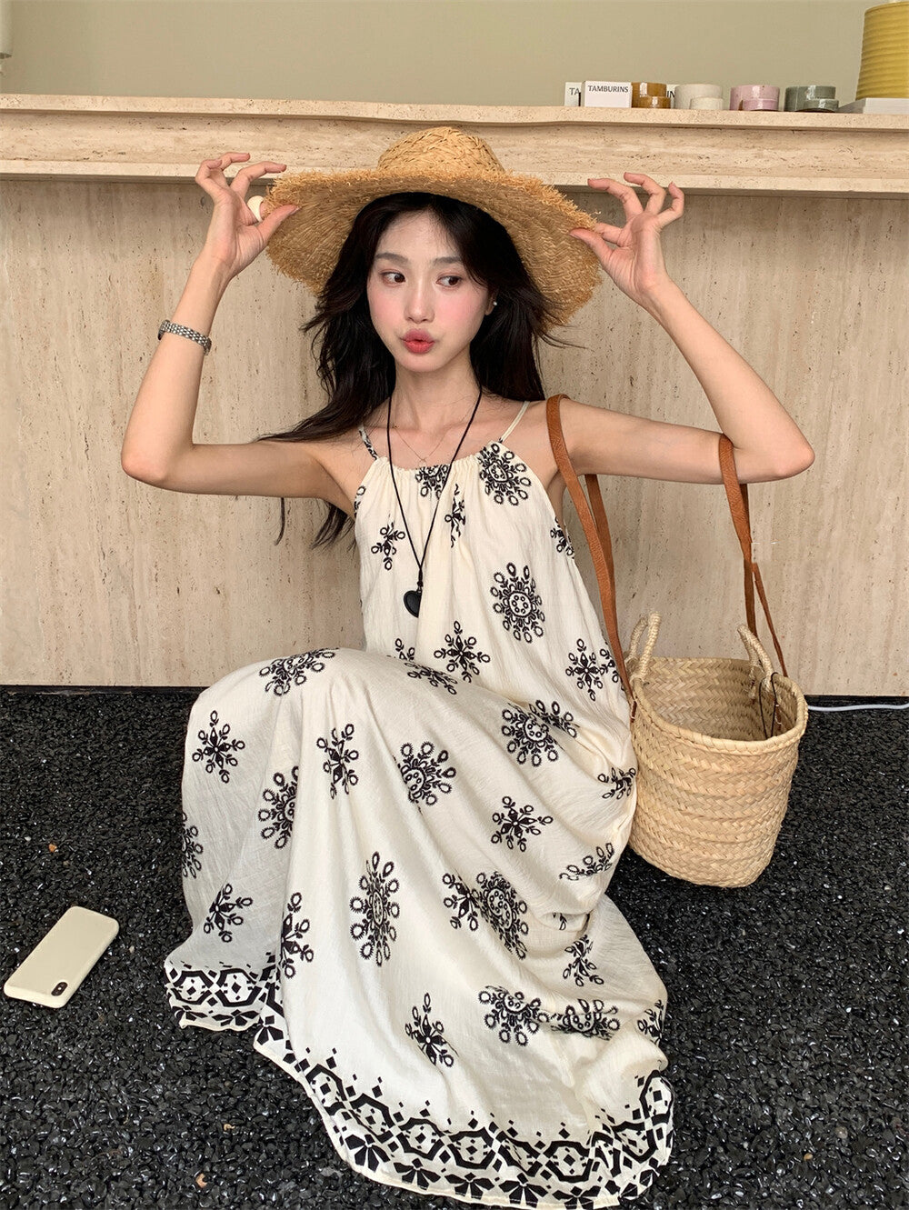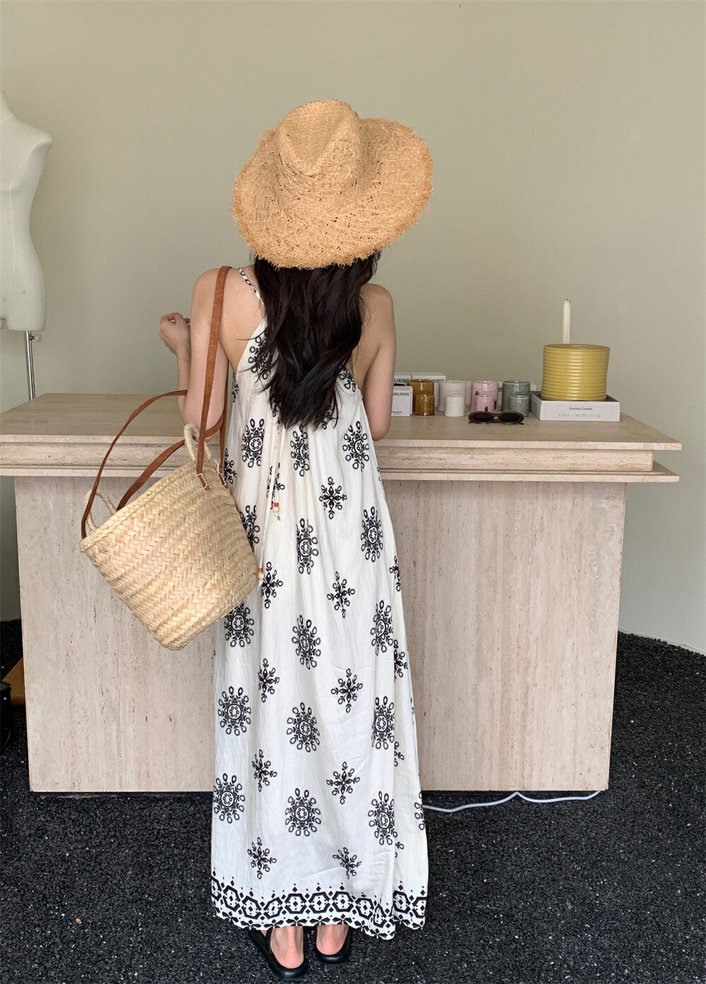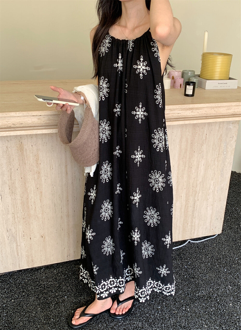 濃濃民族風 度假感滿分🌞掛脖設計+大裙擺 超顯慵懶氣質涼爽垂墜感布料 輕盈不貼身穿上就像在海邊渡假一樣🍹混紡面料