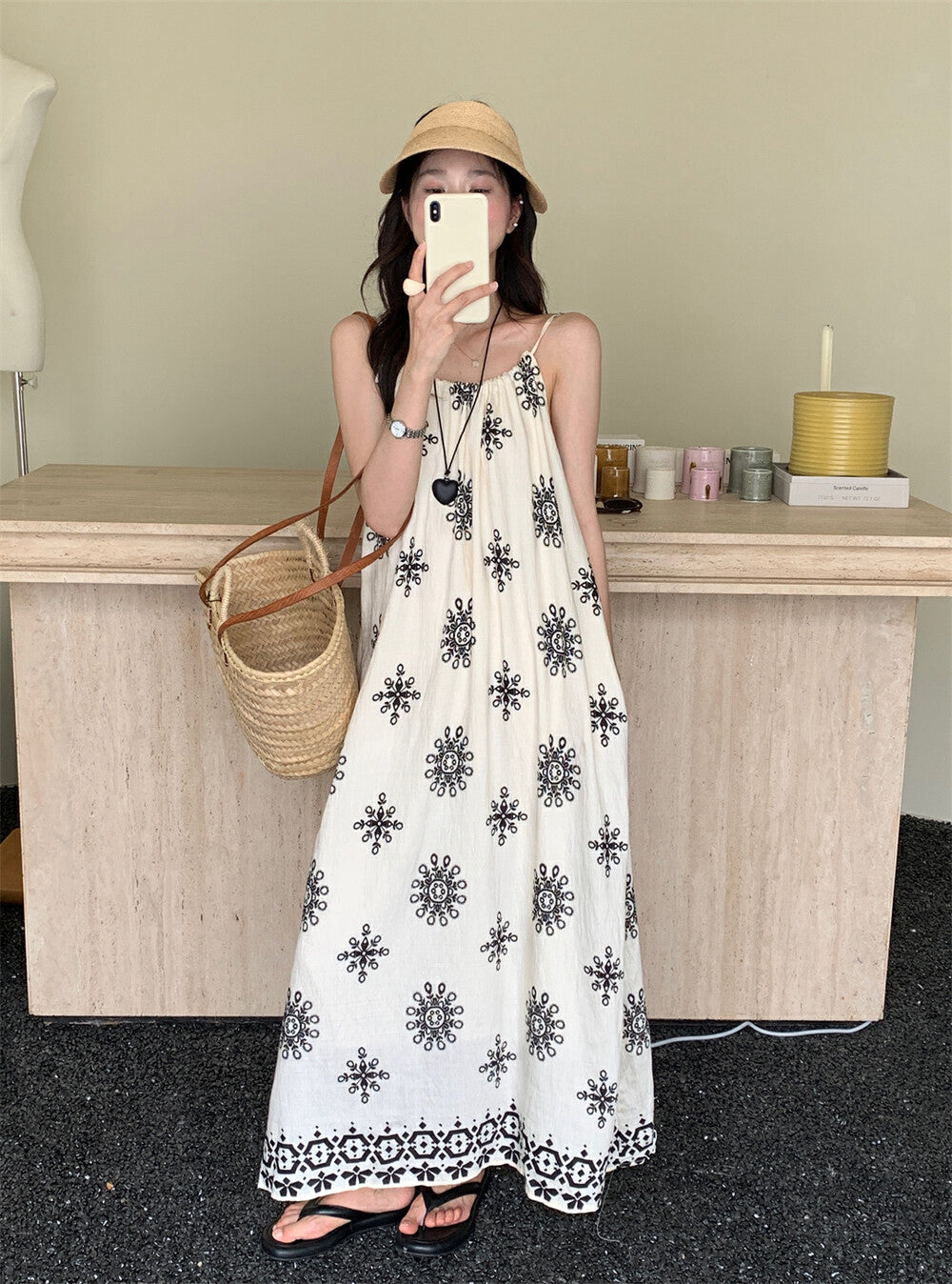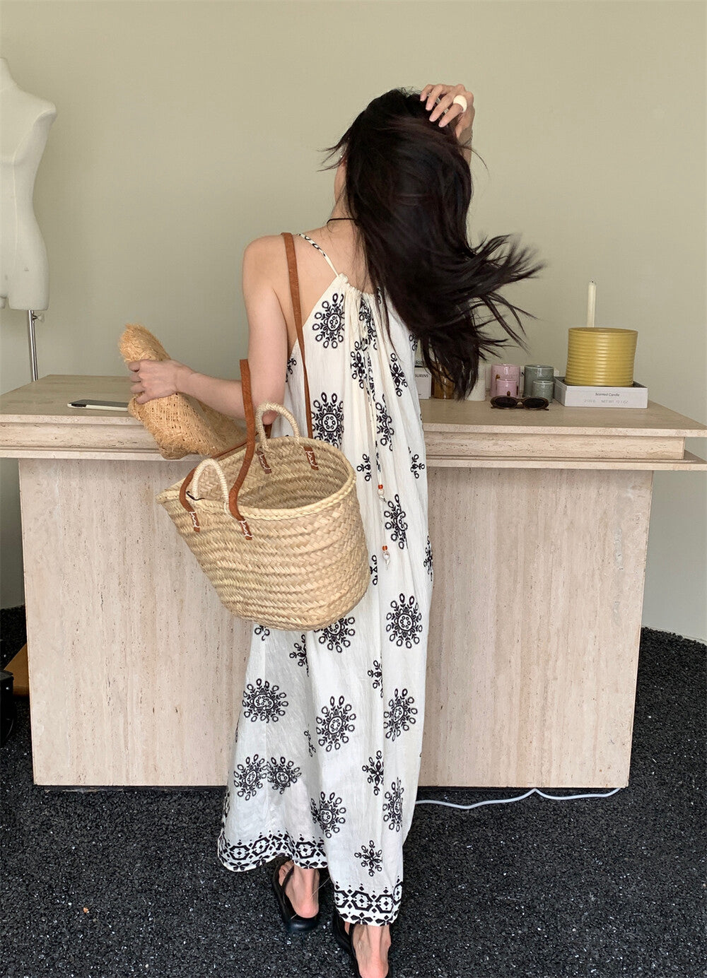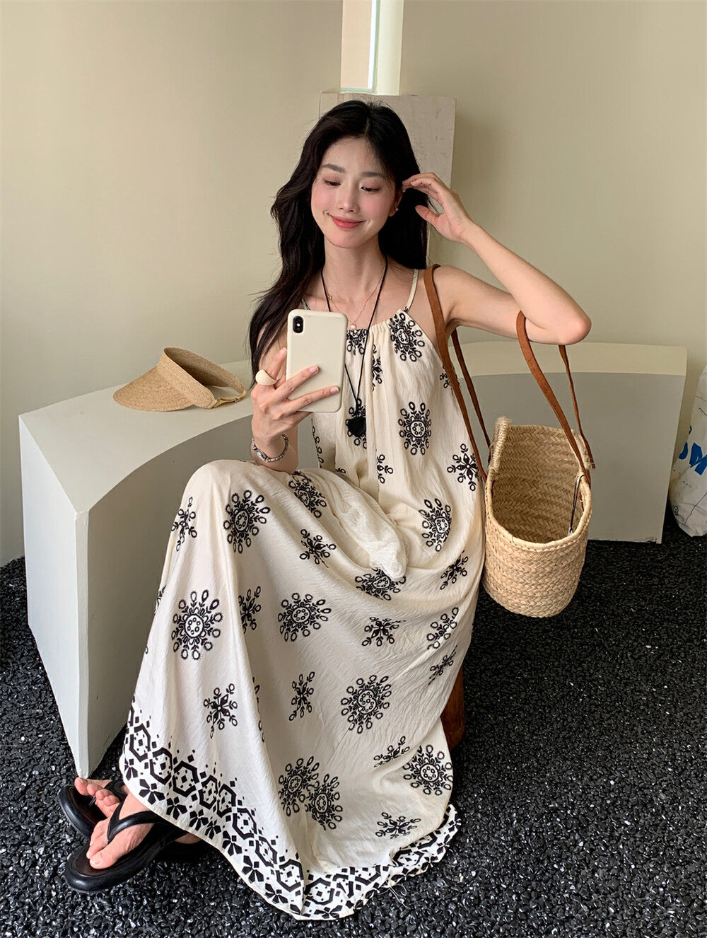 濃濃民族風 度假感滿分🌞掛脖設計+大裙擺 超顯慵懶氣質涼爽垂墜感布料 輕盈不貼身穿上就像在海邊渡假一樣🍹混紡面料