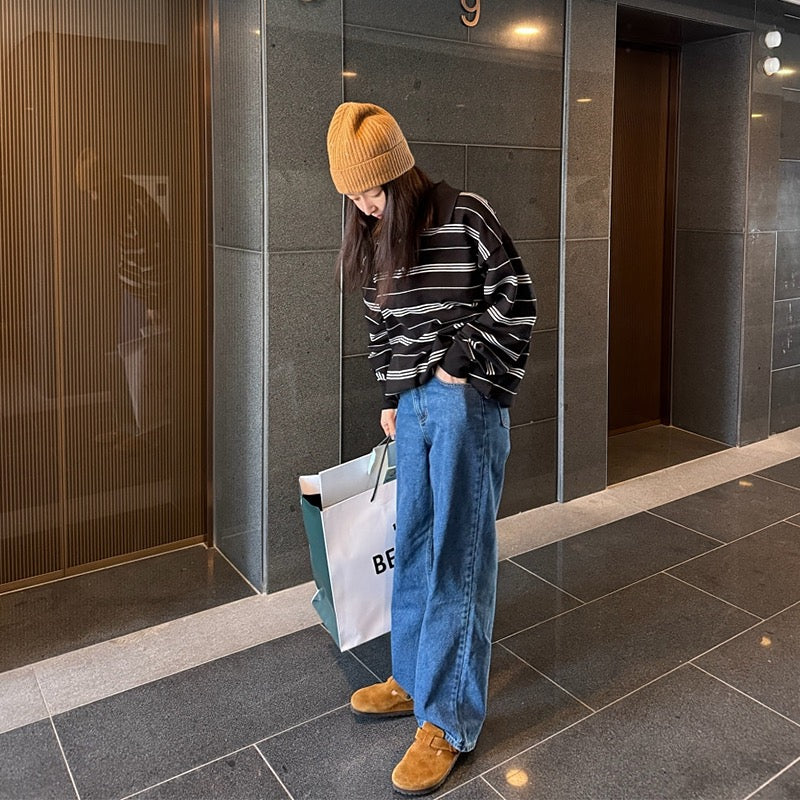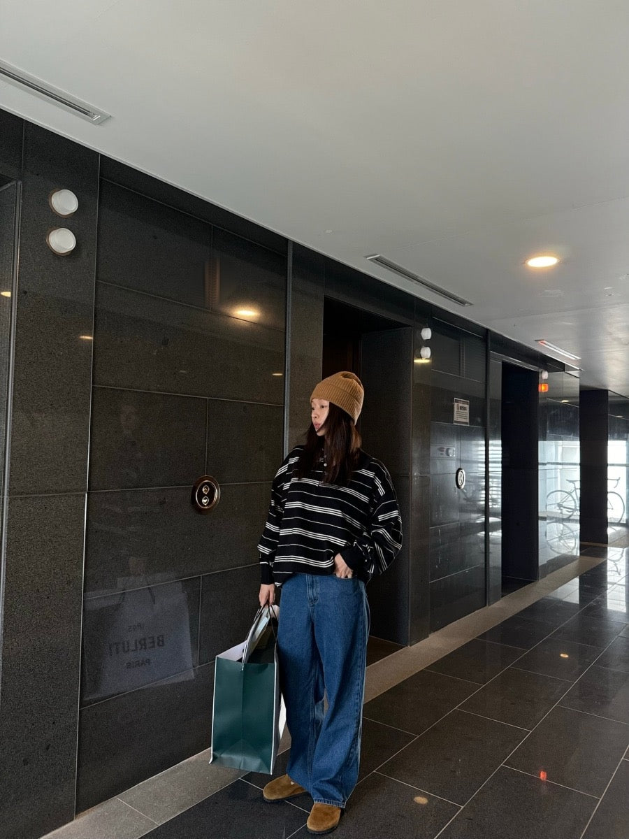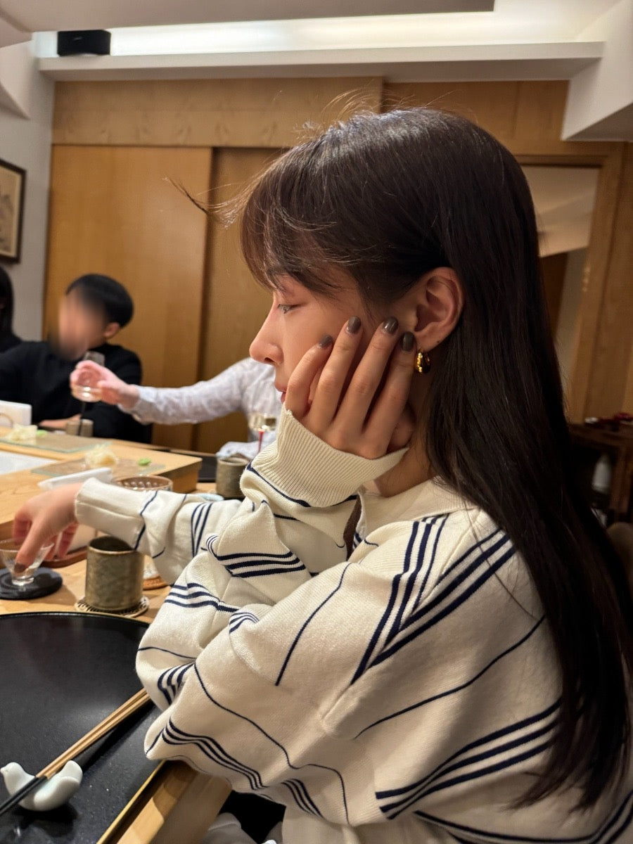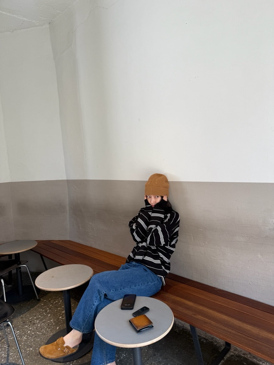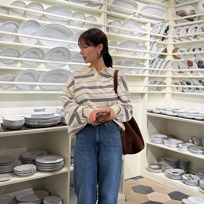 寬鬆條紋Polo針織top