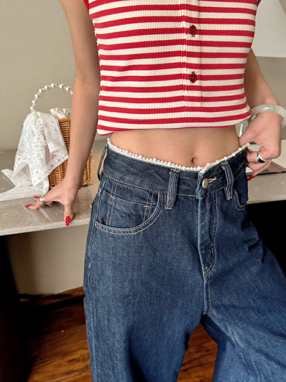 珍珠米腰頭設計,細節感滿分✨顯瘦修身,曲線更迷人高腰設計,拉長腿部比例舒適面料,穿著無壓力💯牛仔面料