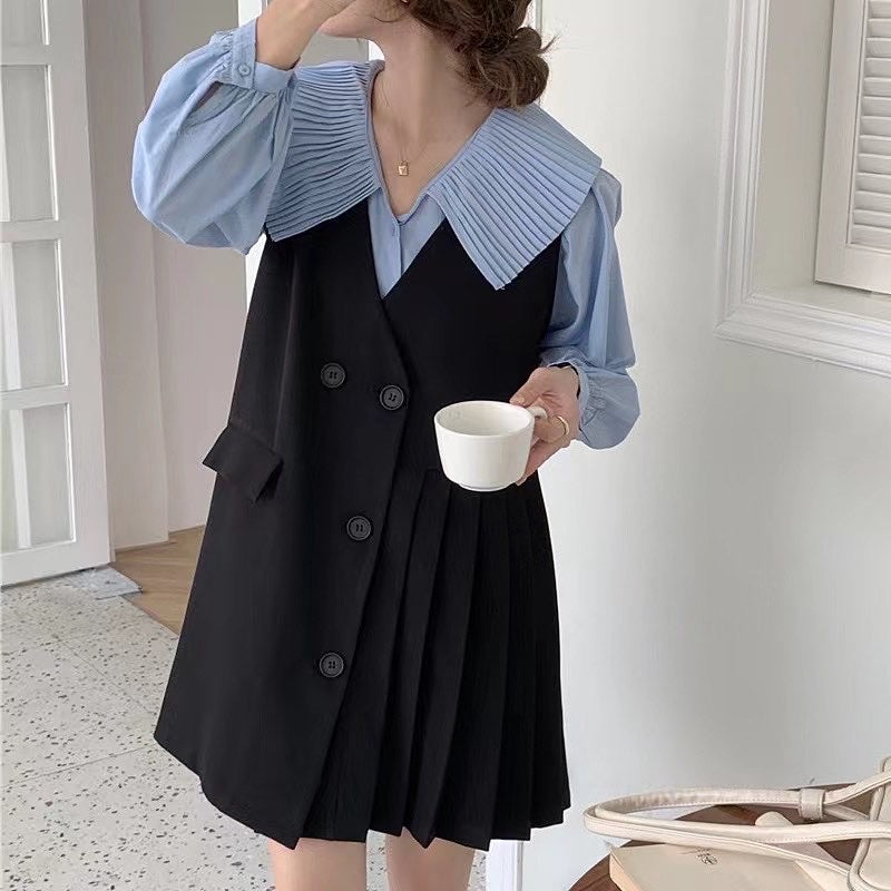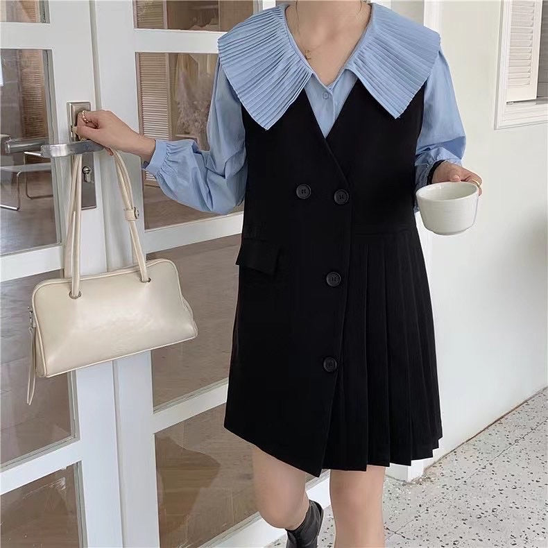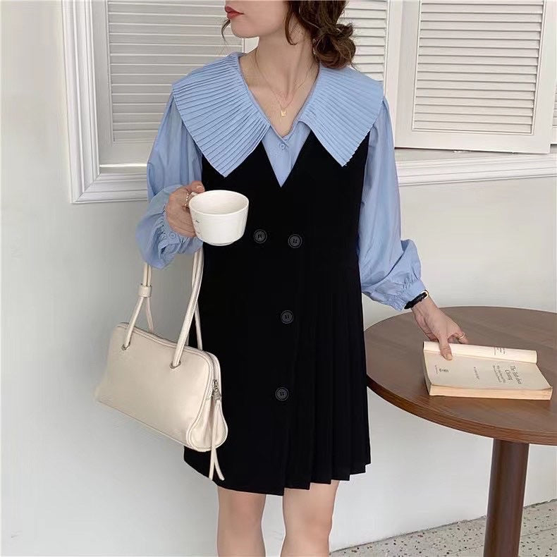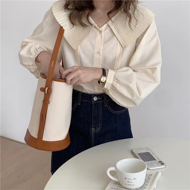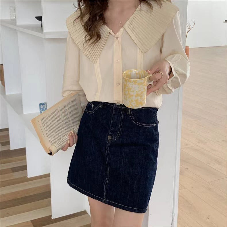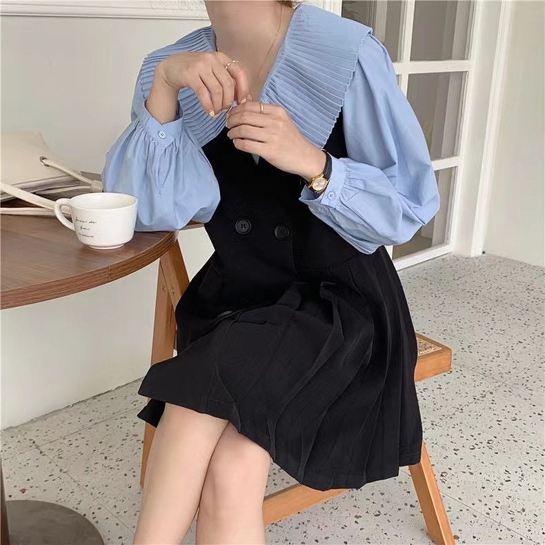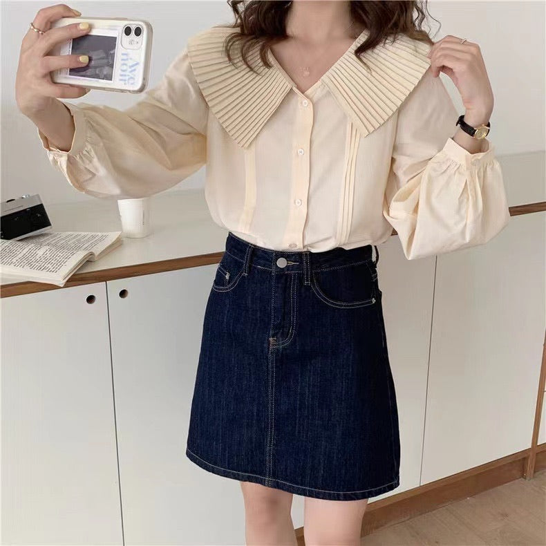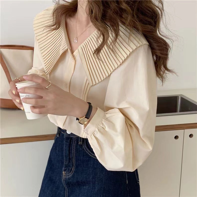 百褶領長恤衫