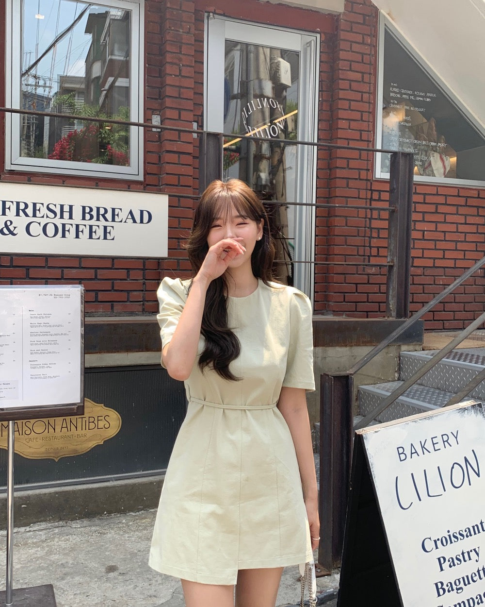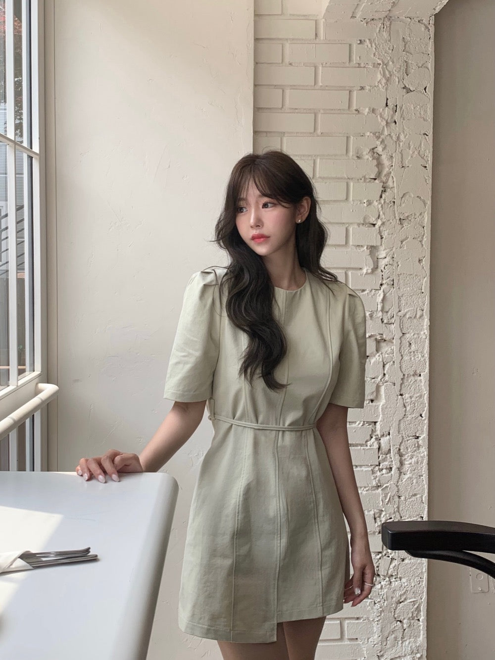 泡泡袖+不規則裙擺超有設計感😍修飾手臂+拉長比例一穿就有氛圍感約會聚會都超吸睛✨滌綸面料