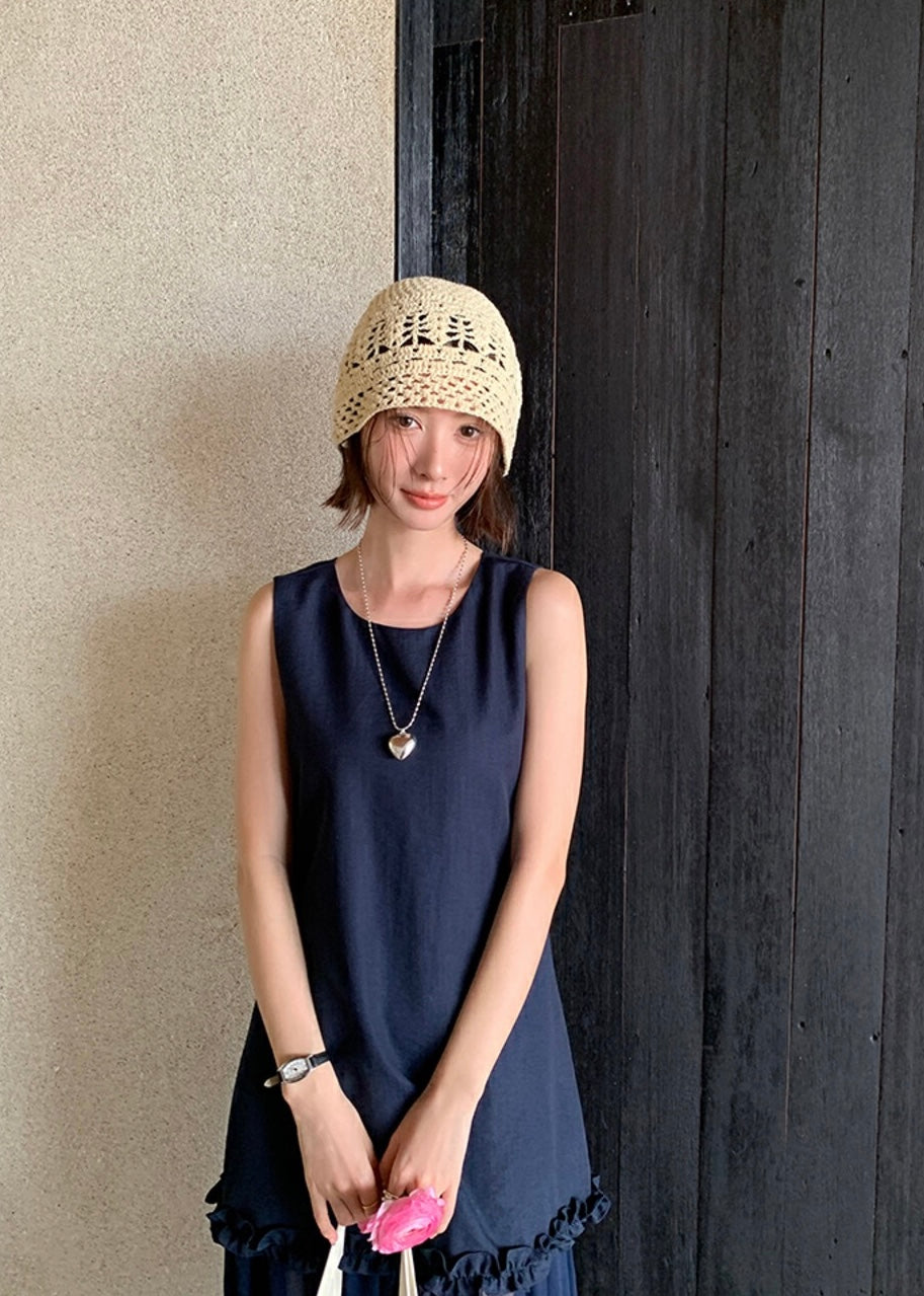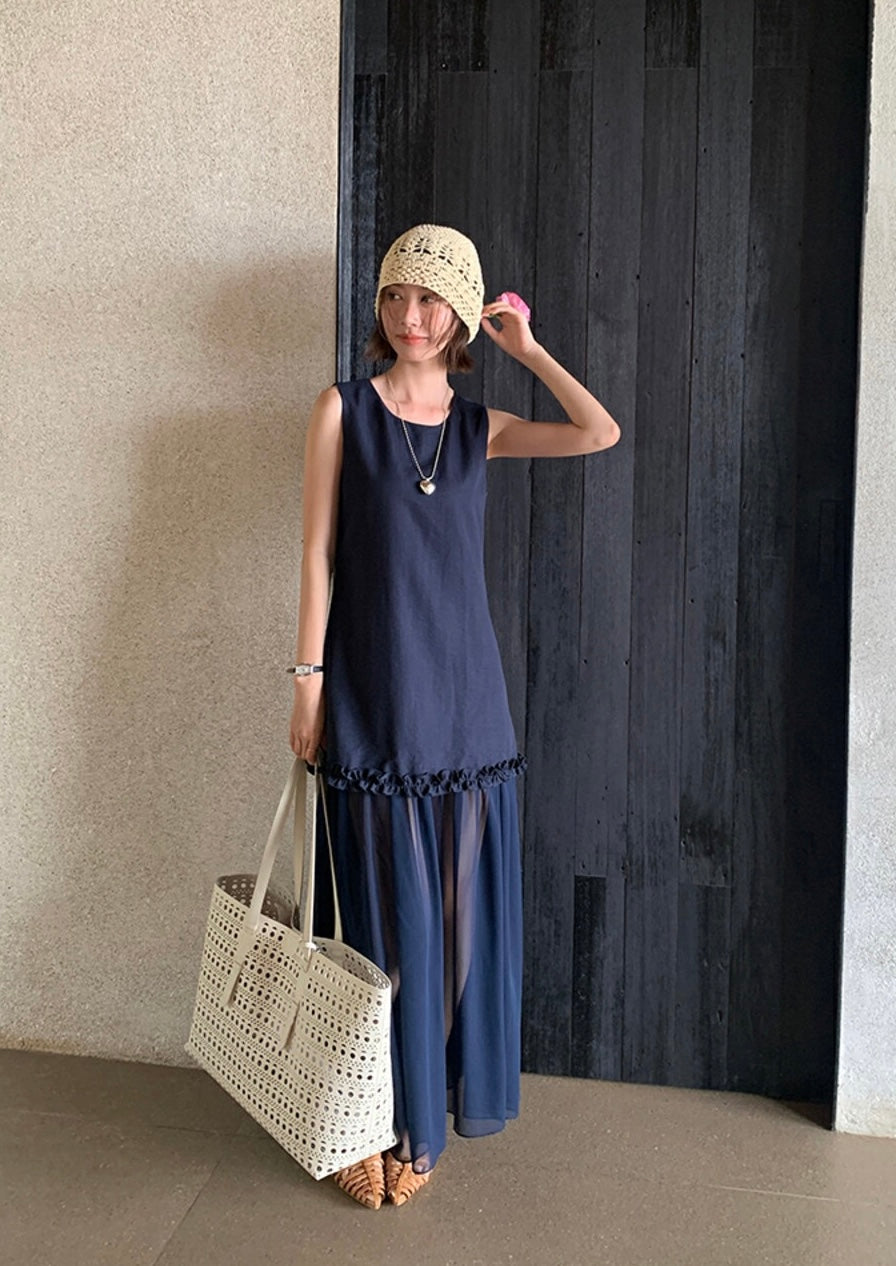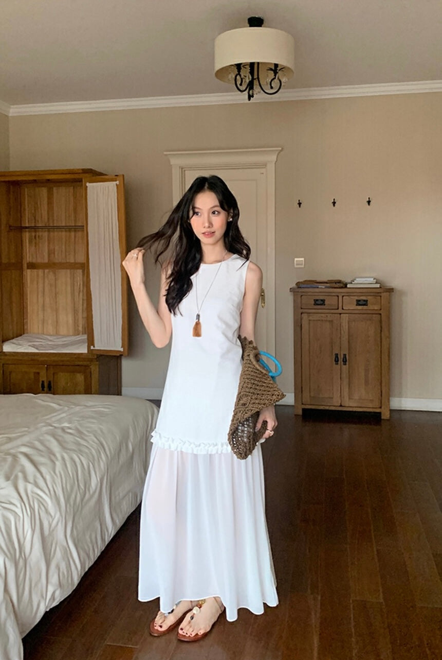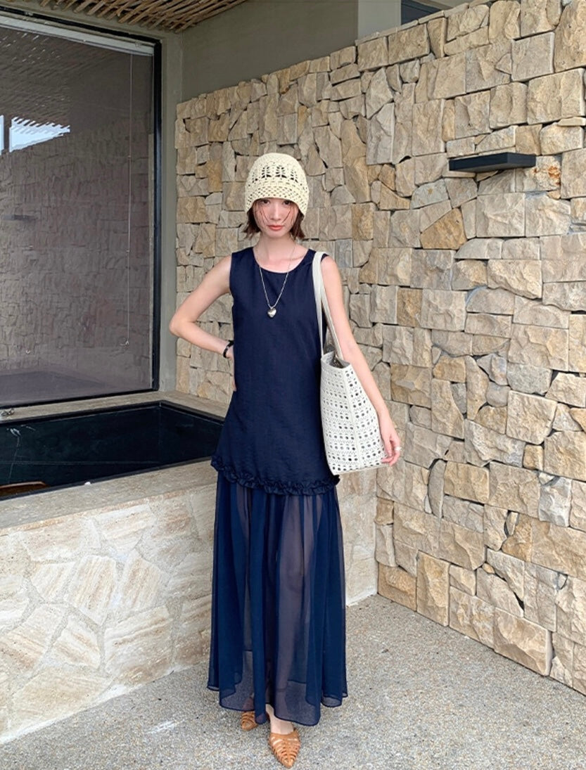 圓領層次感拼接背心連身裙