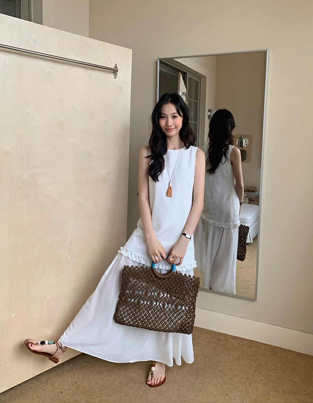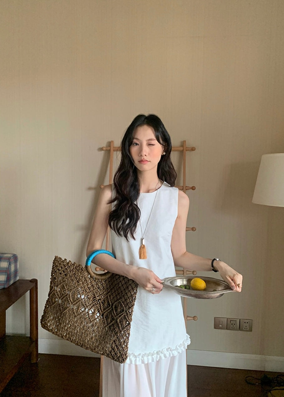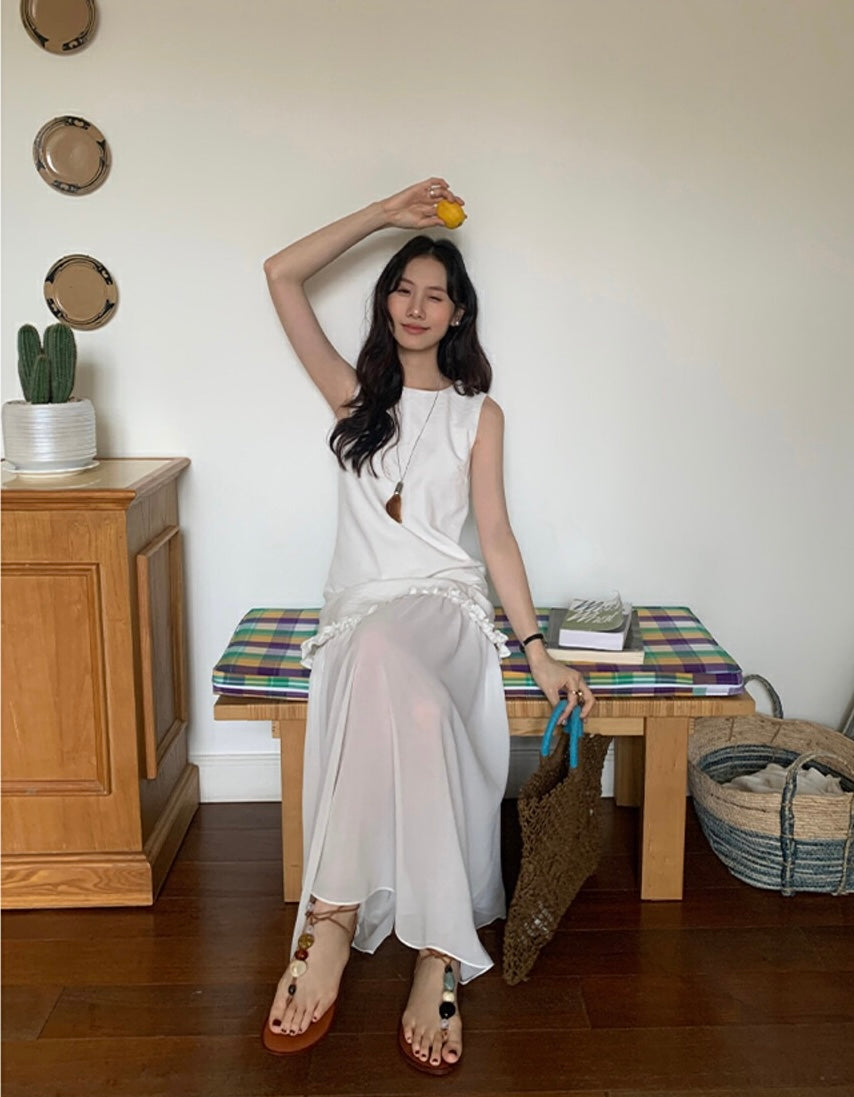 圓領層次感拼接背心連身裙