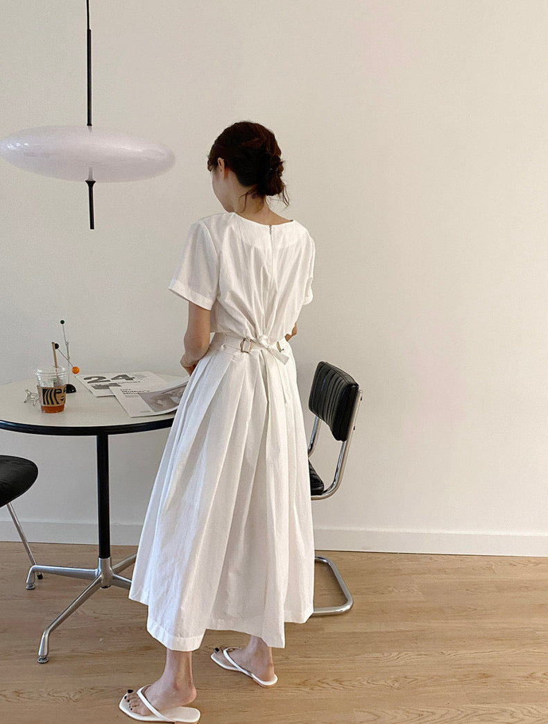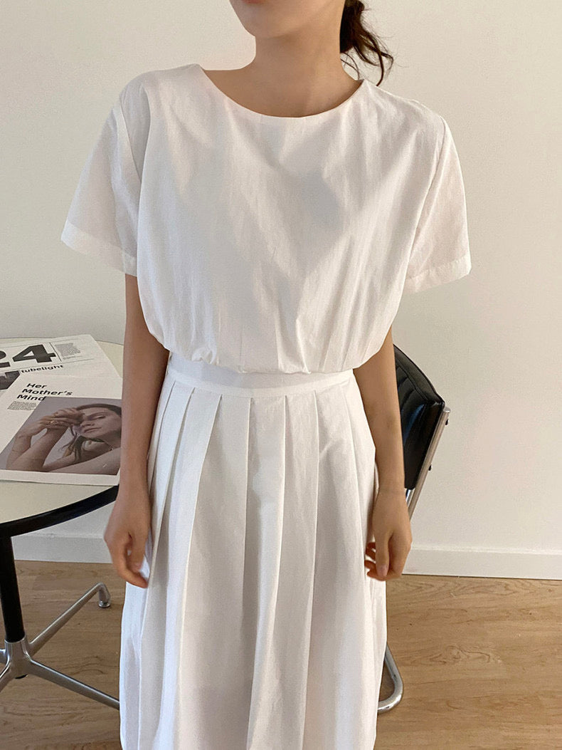 圓領設計 顯臉小又百搭🍃壓褶細節 修飾身形超加分收腰版型 輕鬆穿出好比例🪽上班/日常都可以輕鬆駕馭~棉面料