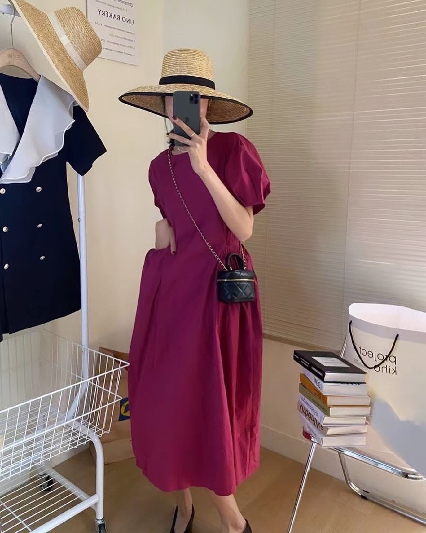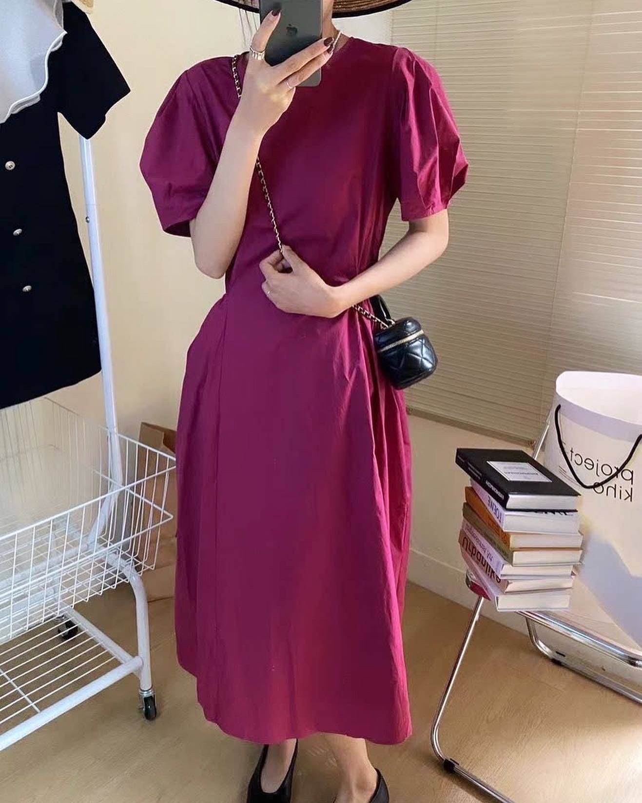 獨特韻味的梅子色對黃皮超級顯白!兩側都有裙袋👍🏻復古泡泡袖❤️棉混紡布料材質:100%棉混紡Size:Size Free上圍 96cm衣長 116cm*All measurements are measured by hands, thus there might be a 1-2 cm difference from measurement.