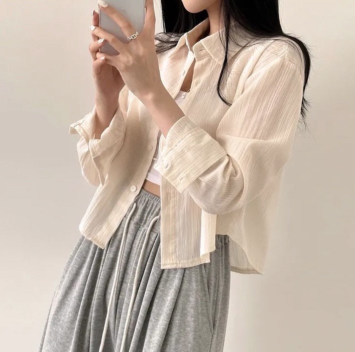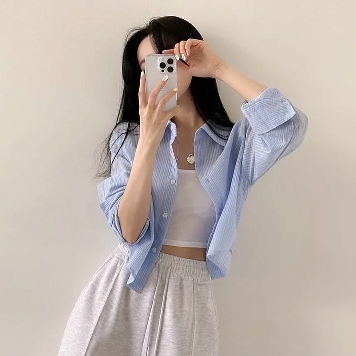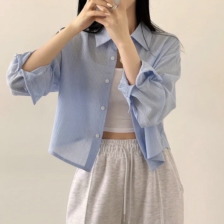 條紋短款防曬恤衫