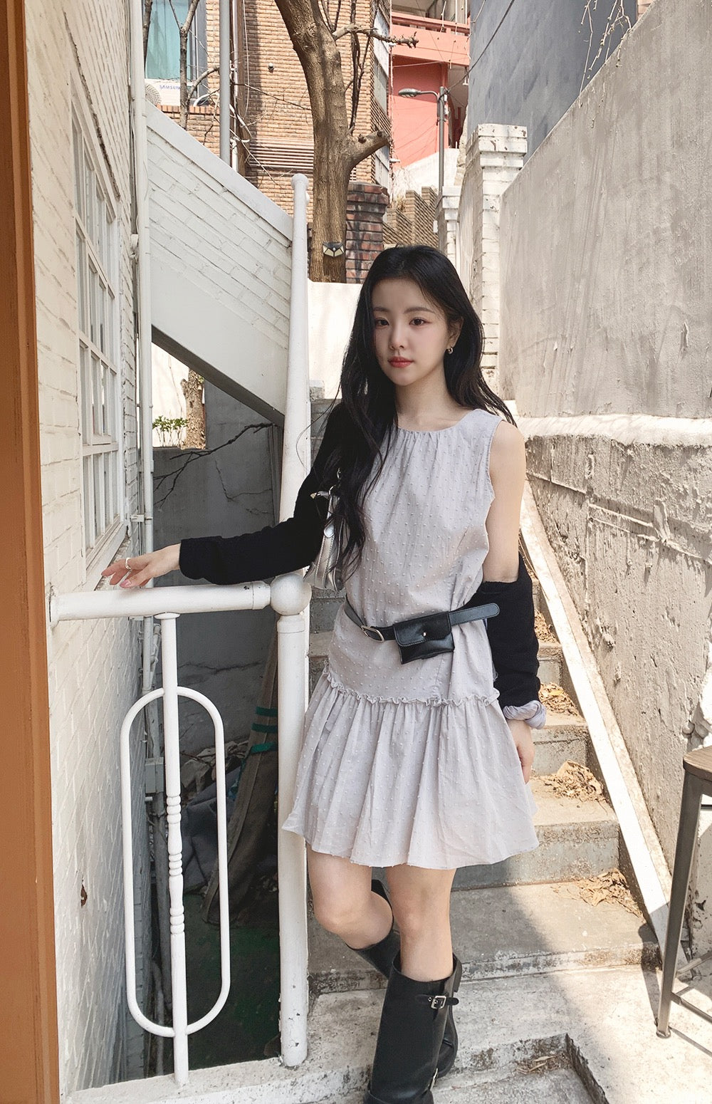 清爽無袖版型好舒服😘腰身剪裁修飾比例單穿就很有型約會出遊都超適合✨滌綸面料