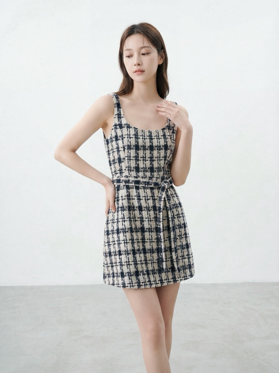 U領設計修飾鎖骨收腰剪裁顯瘦顯高輕鬆穿出法式氣質滌綸面料