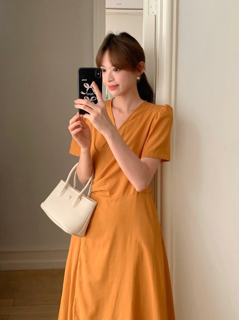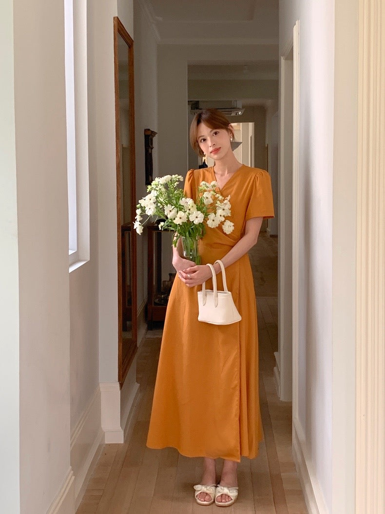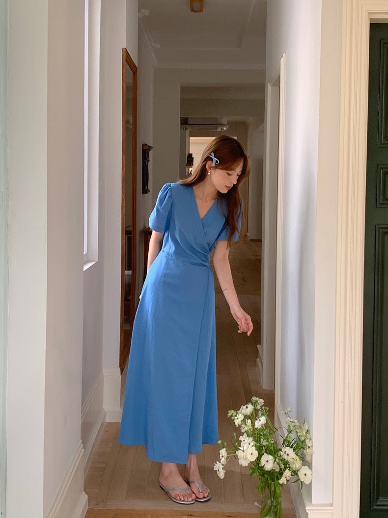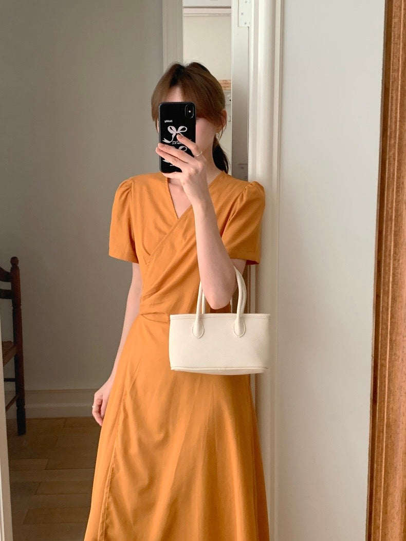 交叉綁帶設計小心機💫V領修飾臉型顯鎖骨收腰剪裁超顯瘦裙擺開衩剛剛好小性感😘混紡面料