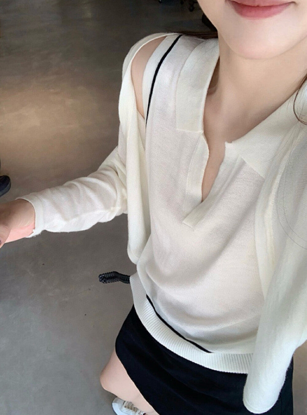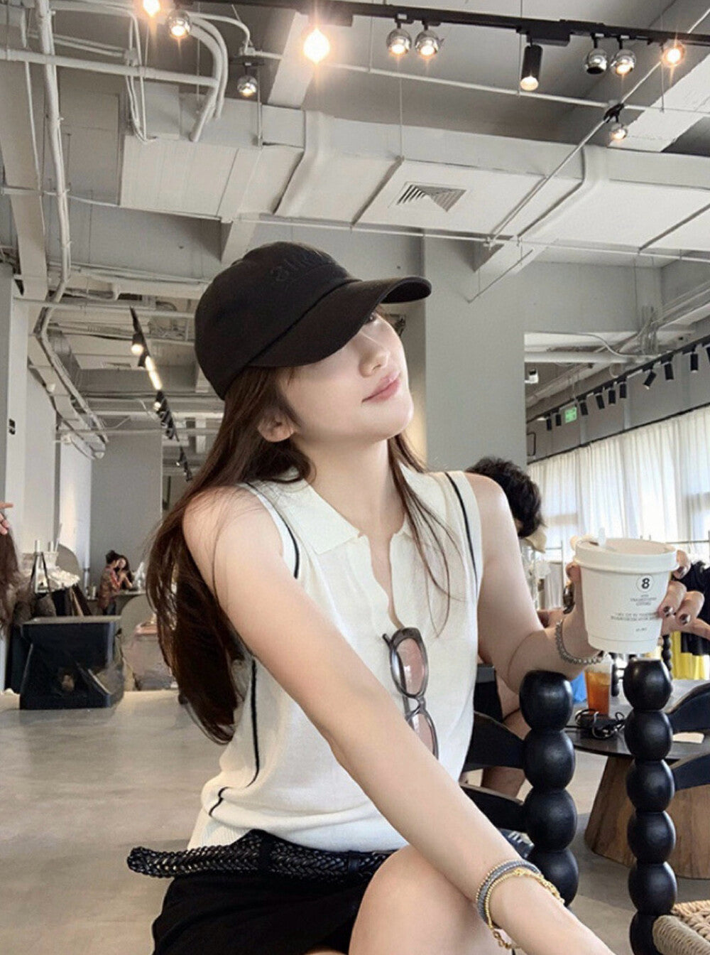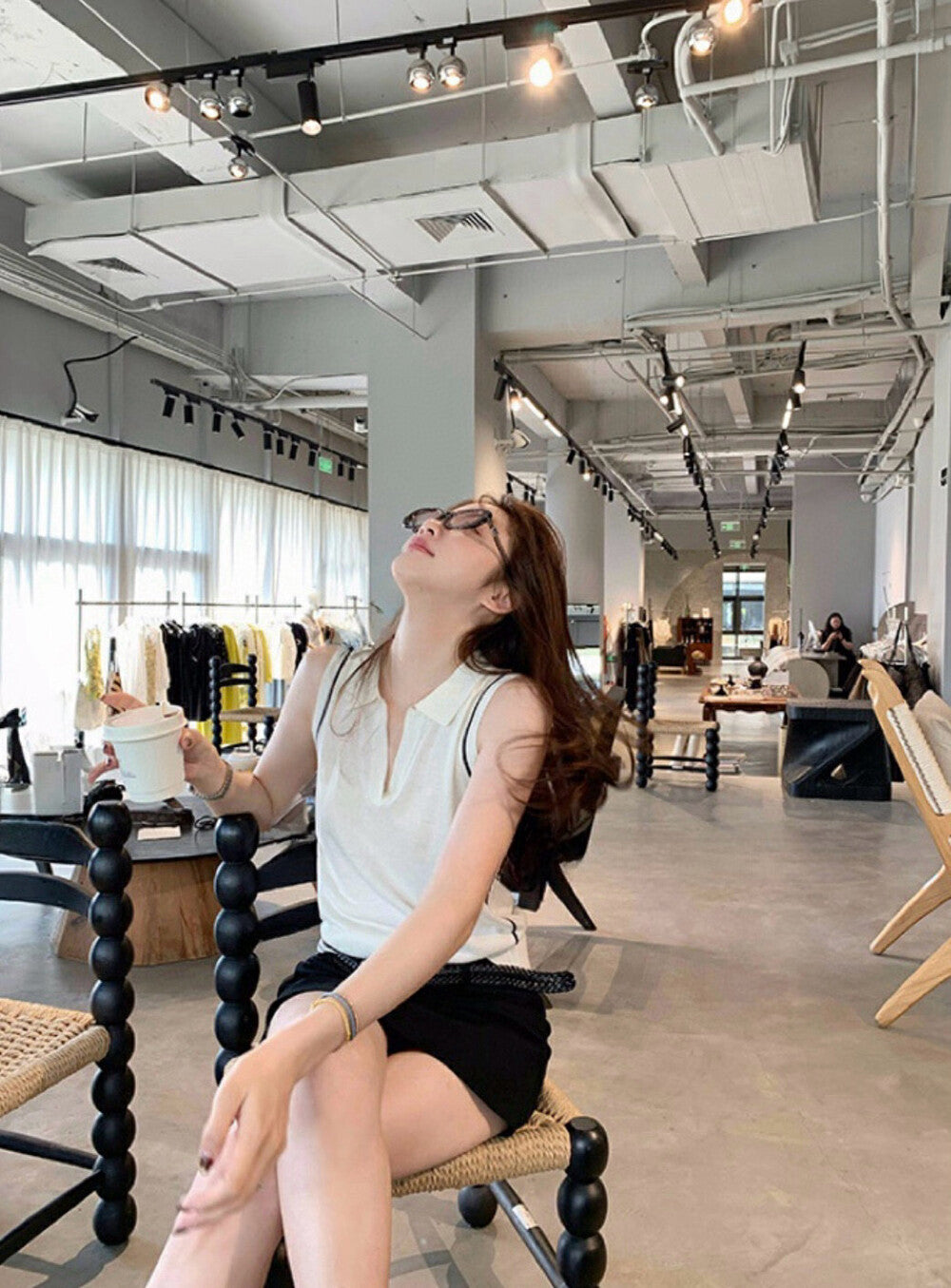 時尚撞色條紋吸睛度滿分 ◼️◻️V領剪裁修飾頸部線條無袖設計清爽好層次春秋疊穿必備時尚單品針織面料