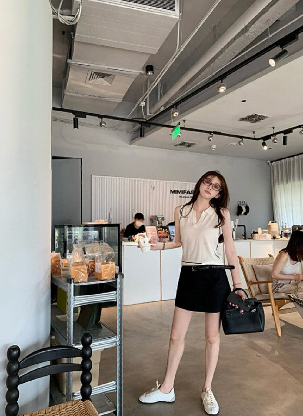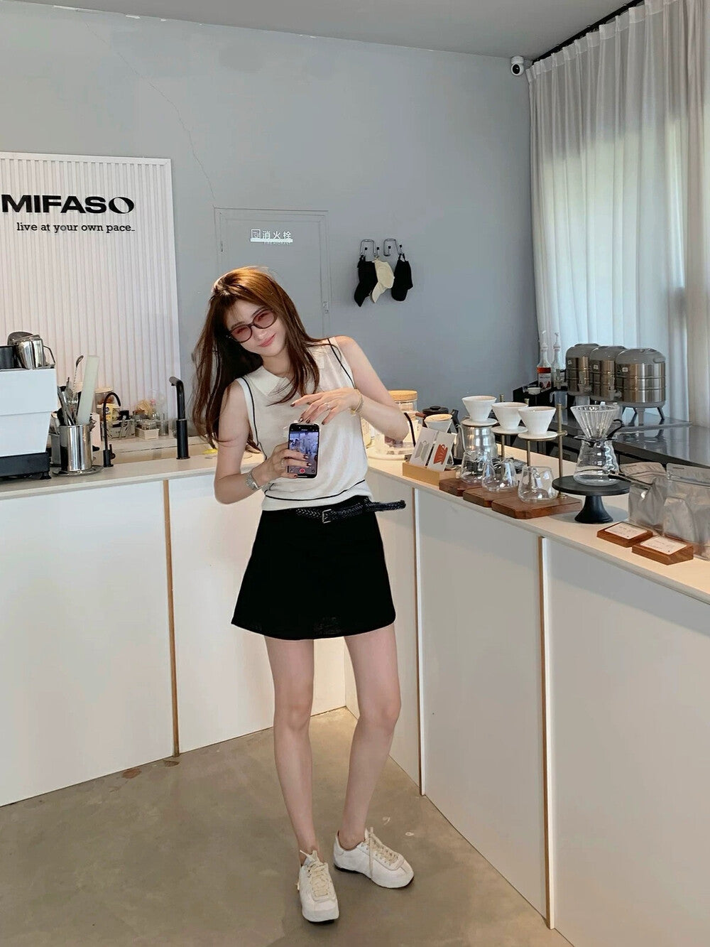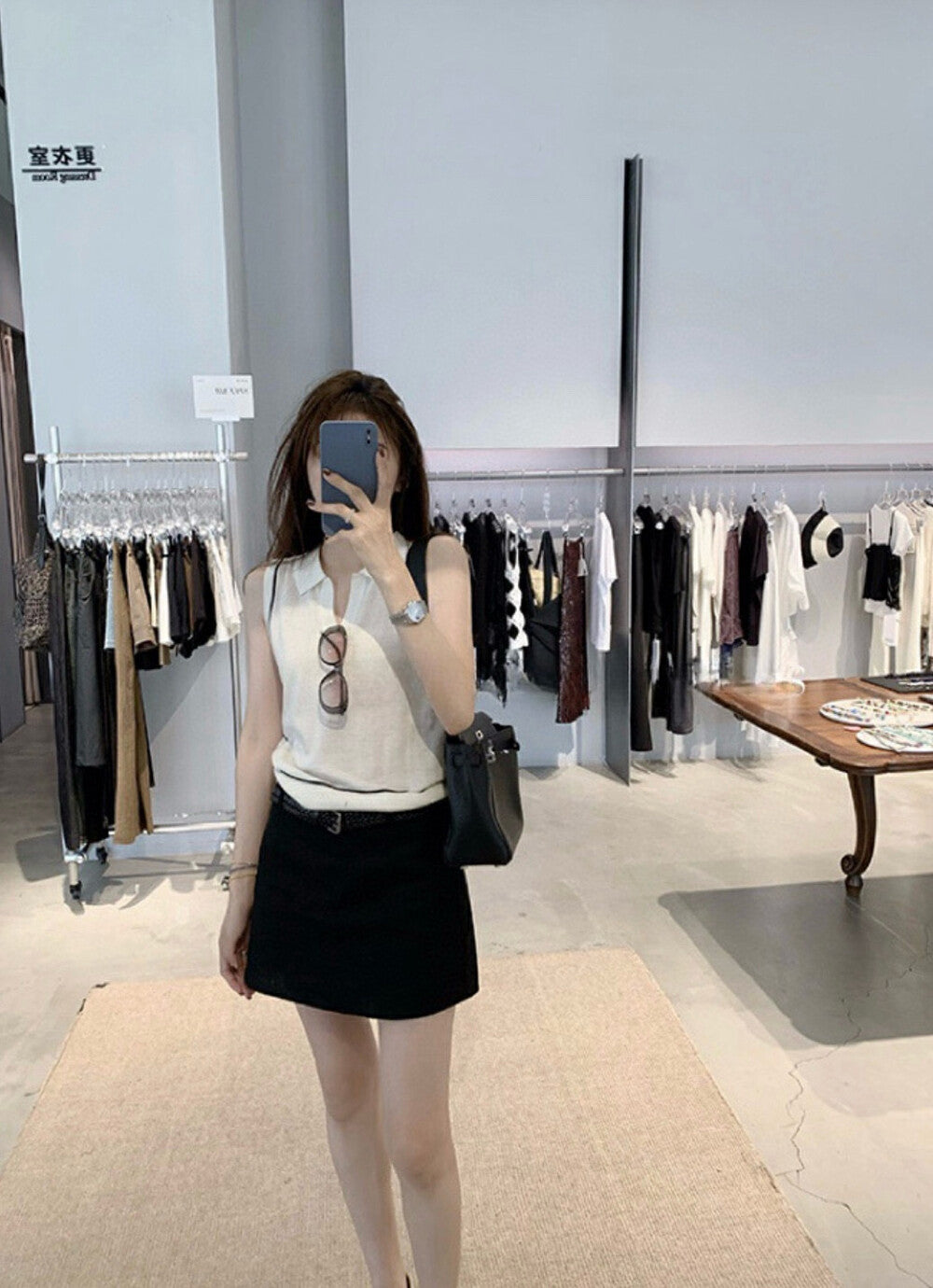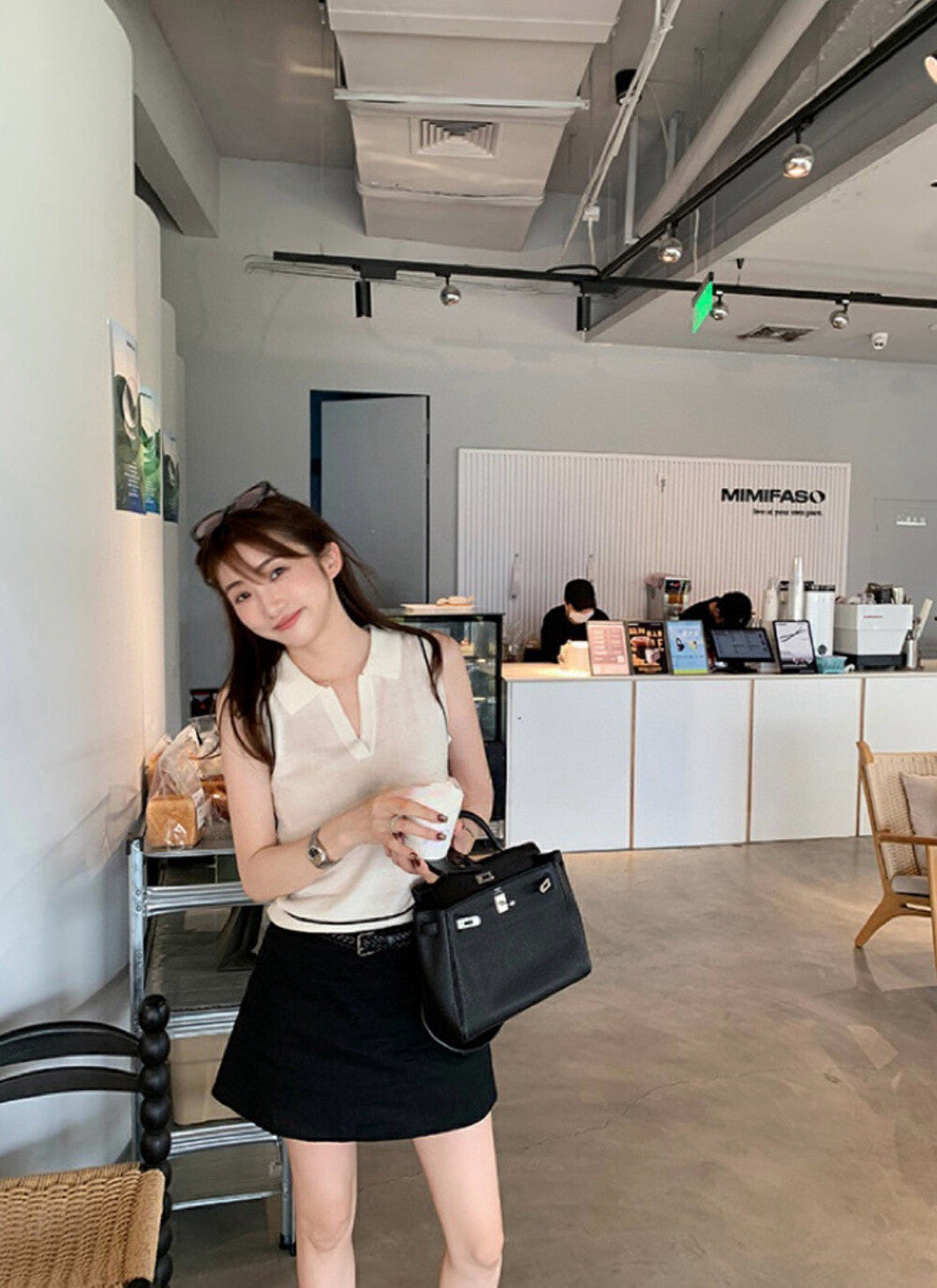 時尚撞色條紋吸睛度滿分 ◼️◻️V領剪裁修飾頸部線條無袖設計清爽好層次春秋疊穿必備時尚單品針織面料