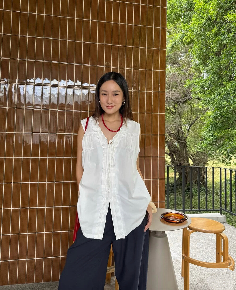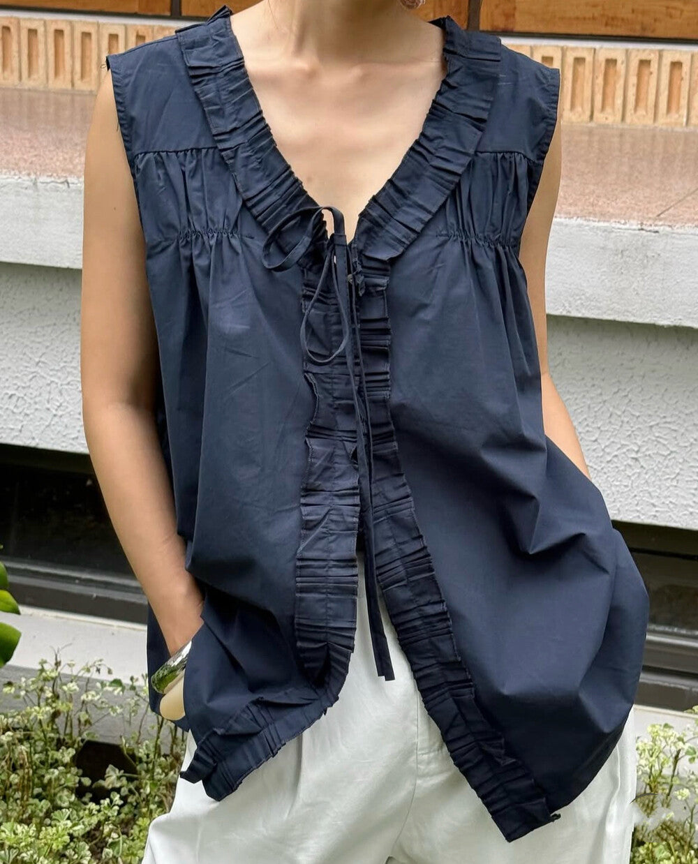 寬鬆版型輕鬆舒適💖V領設計修飾臉型木耳邊增添甜美細節無袖剪裁清爽透氣棉面料