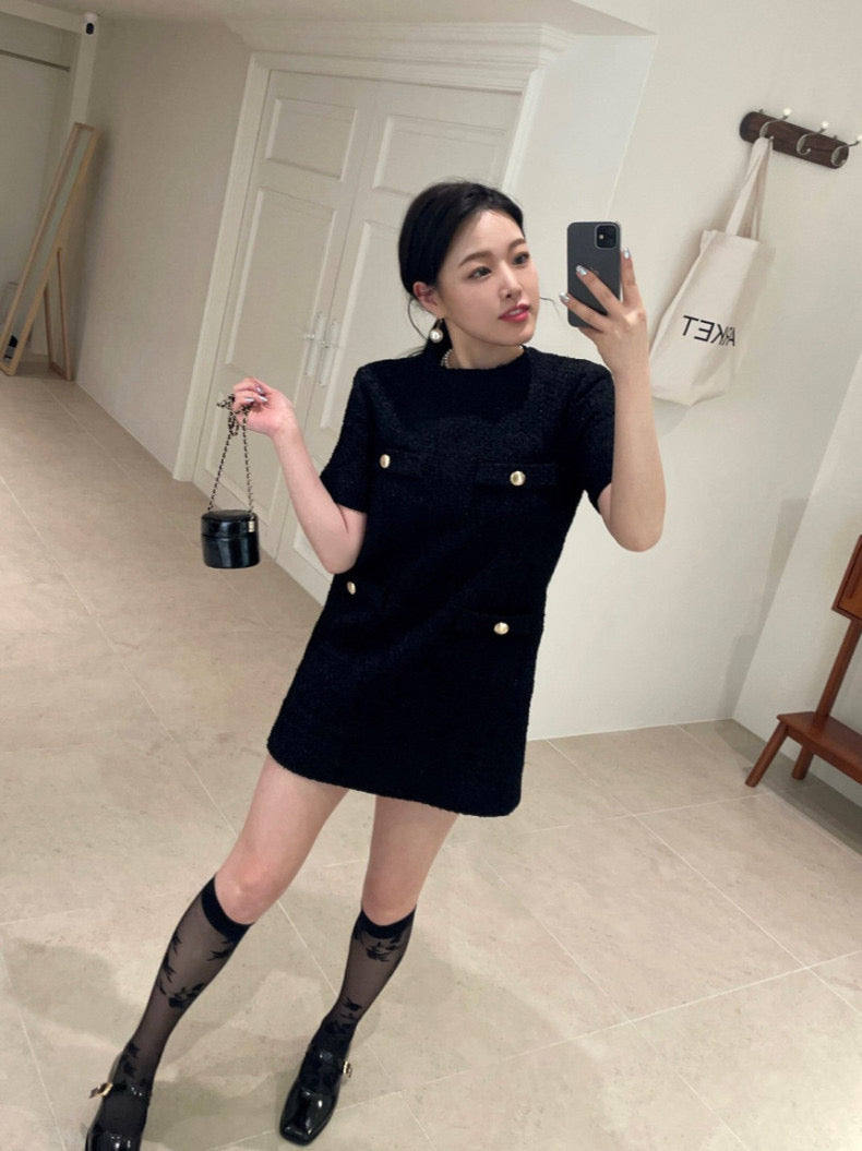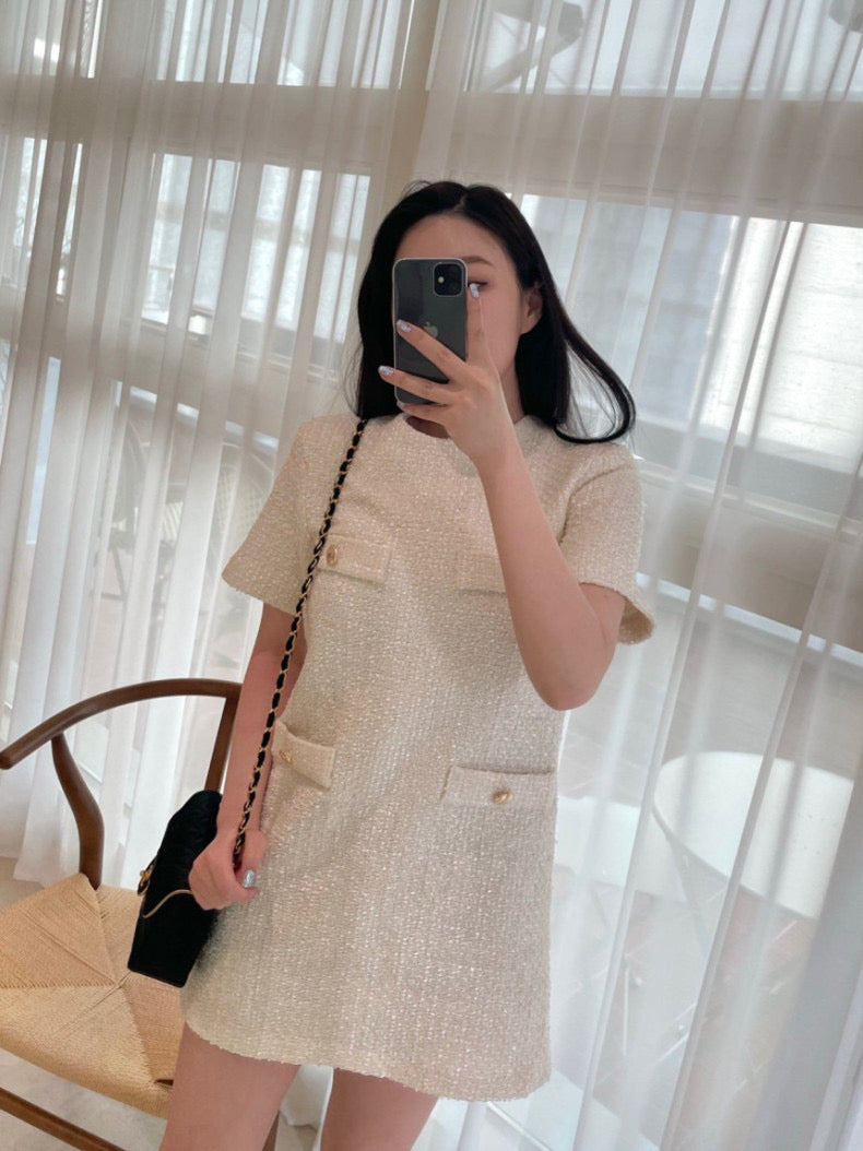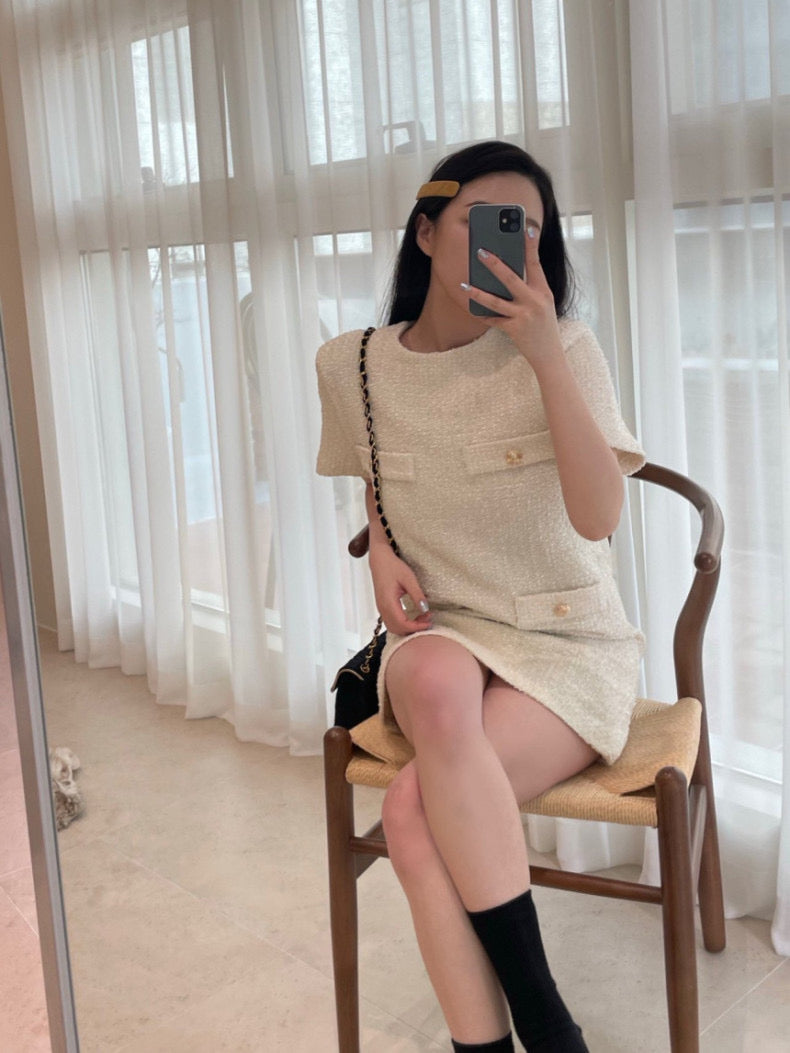 慵懶寬鬆版型舒適自在 🌸經典優雅風優雅不費力圓領設計簡約大方日常穿著輕鬆有型粗花呢面料