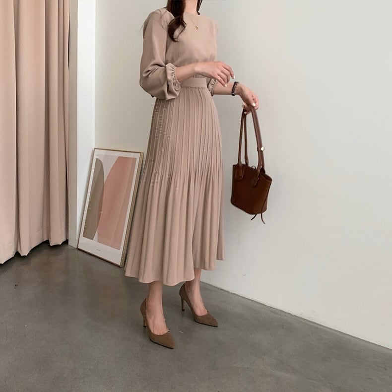 版型好顯瘦!!雪紡質地✨面料舒服柔軟☺️返工必備的一條裙💯滌綸布料材質:100% 滌綸Size:Size Free上圍 94cm裙長 115cm*All measurements are measured by hands, thus there might be a 1-2 cm difference from measurement.