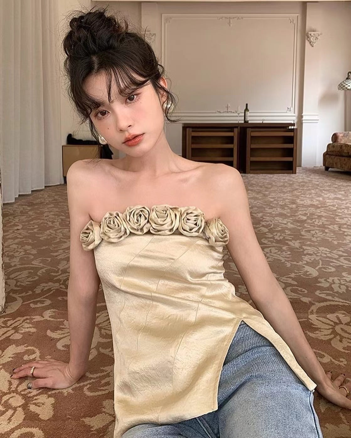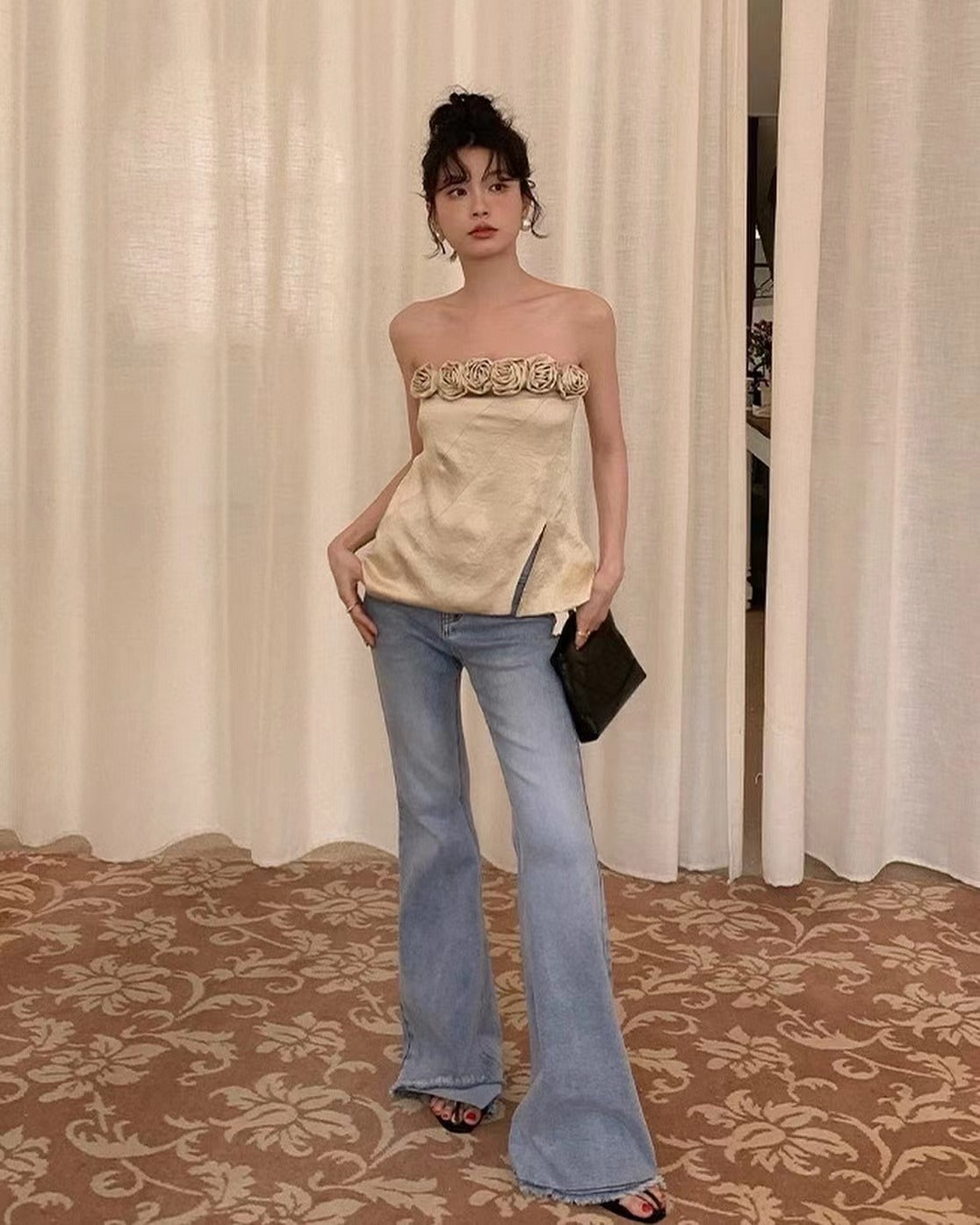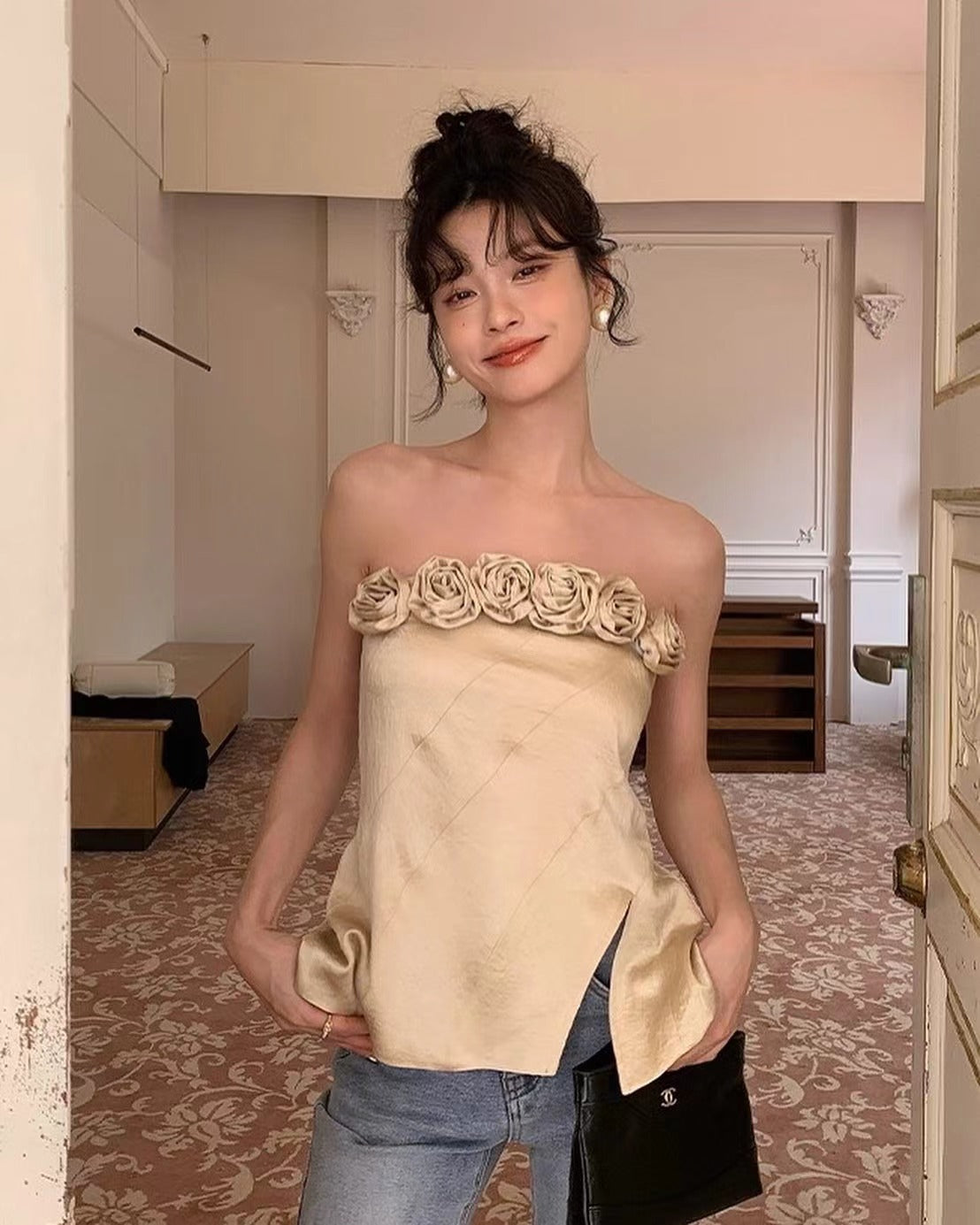 立體花朵抹胸上衣
