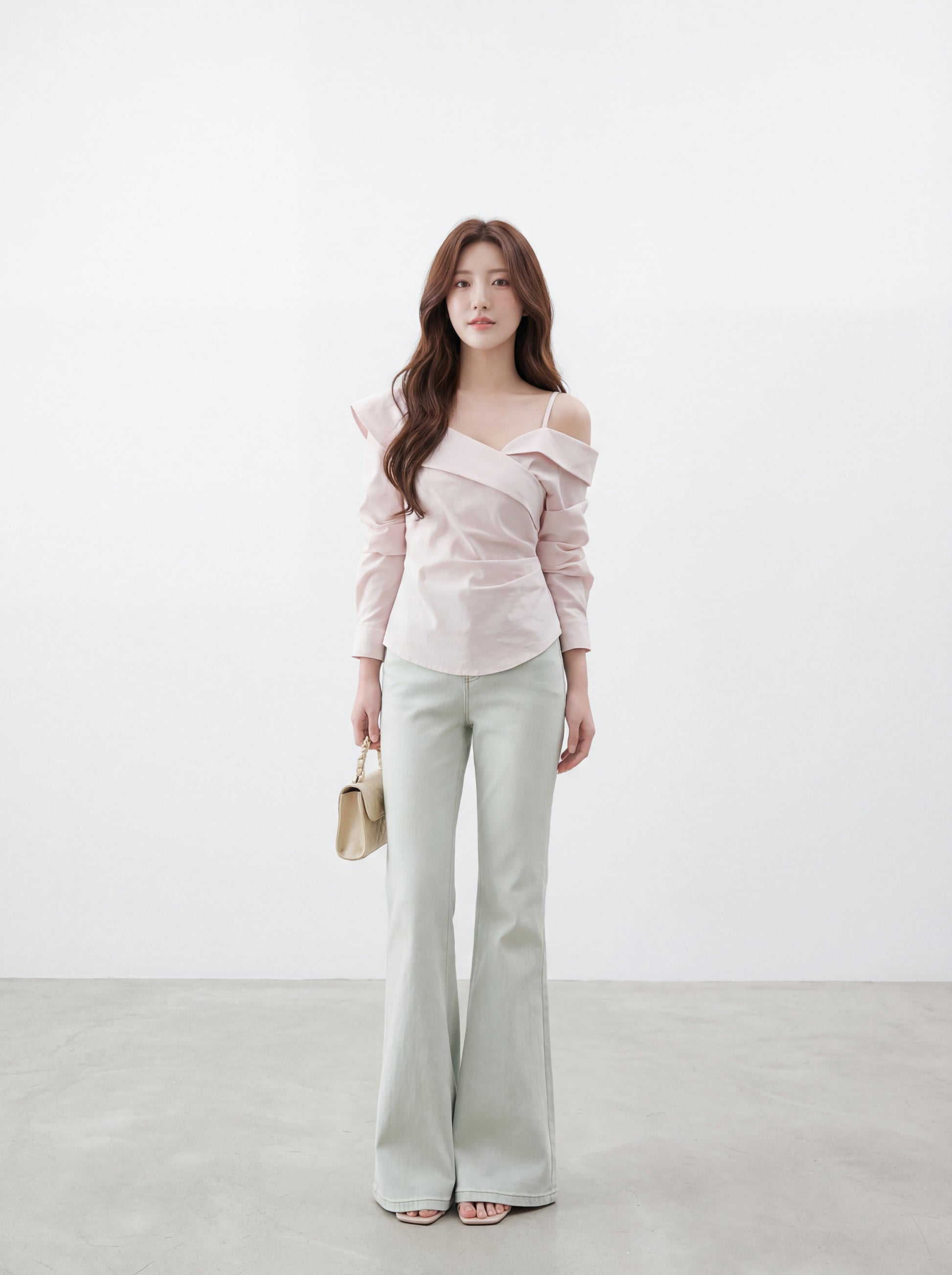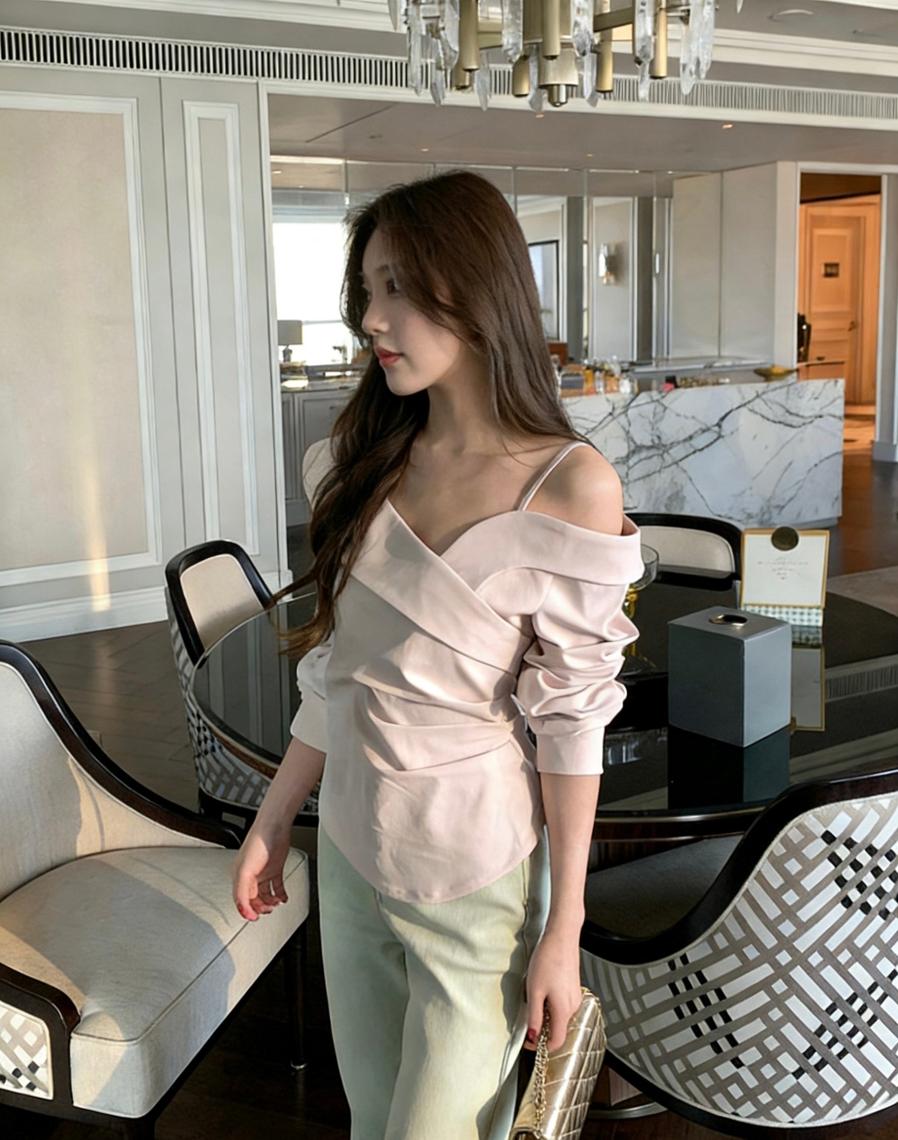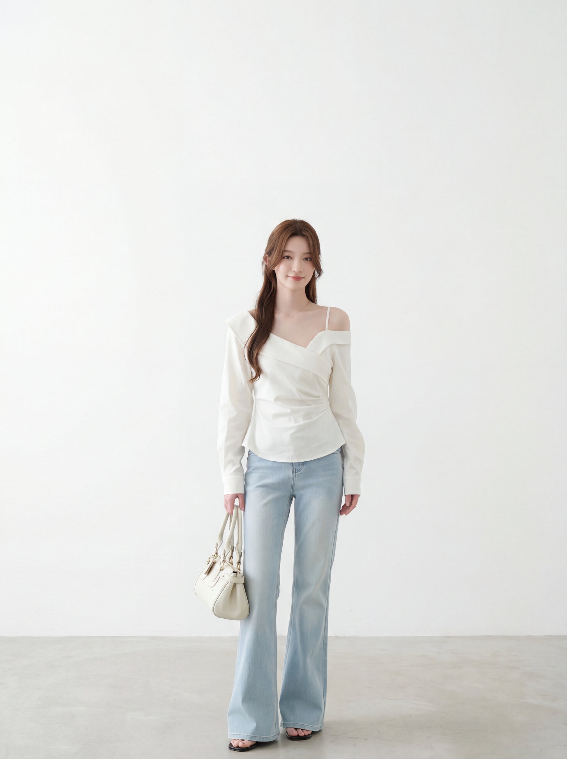 不對稱交叉領露肩小衫