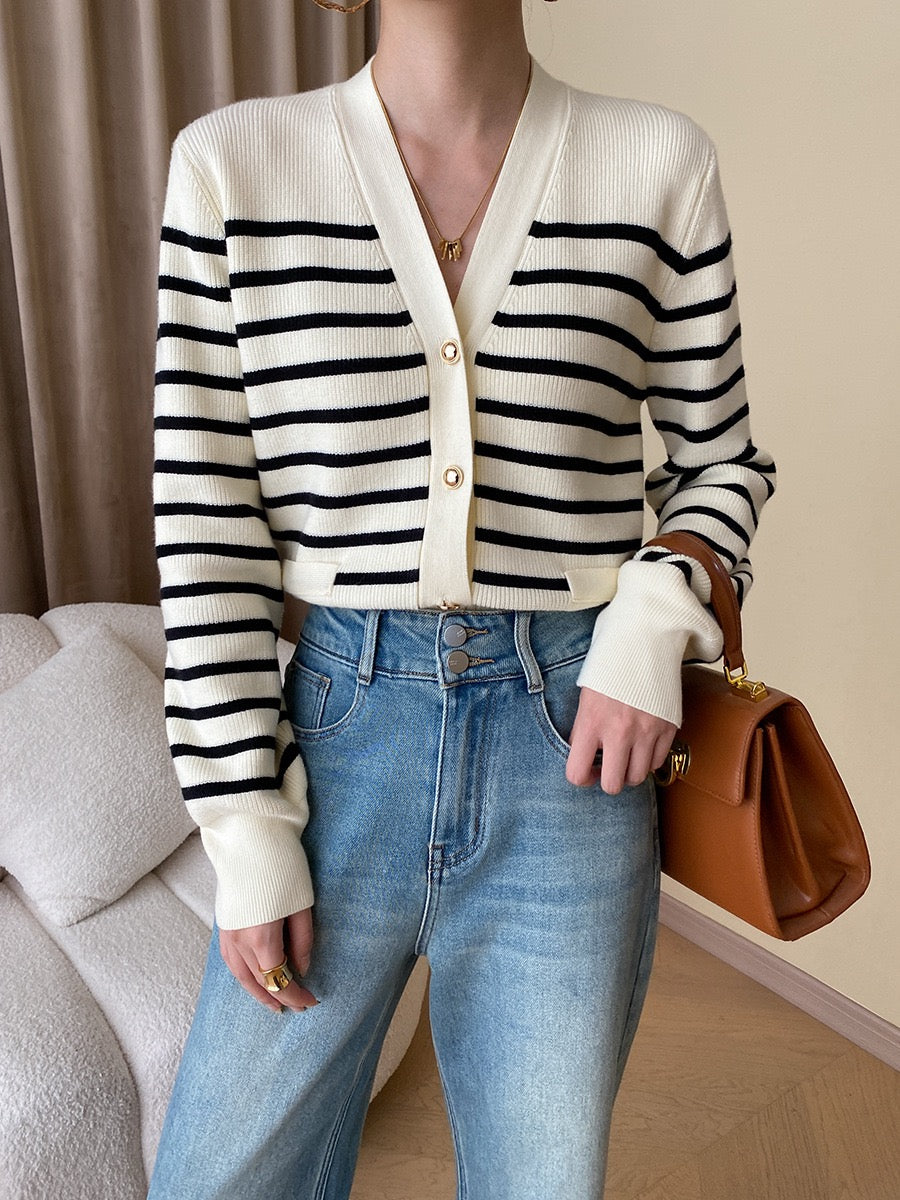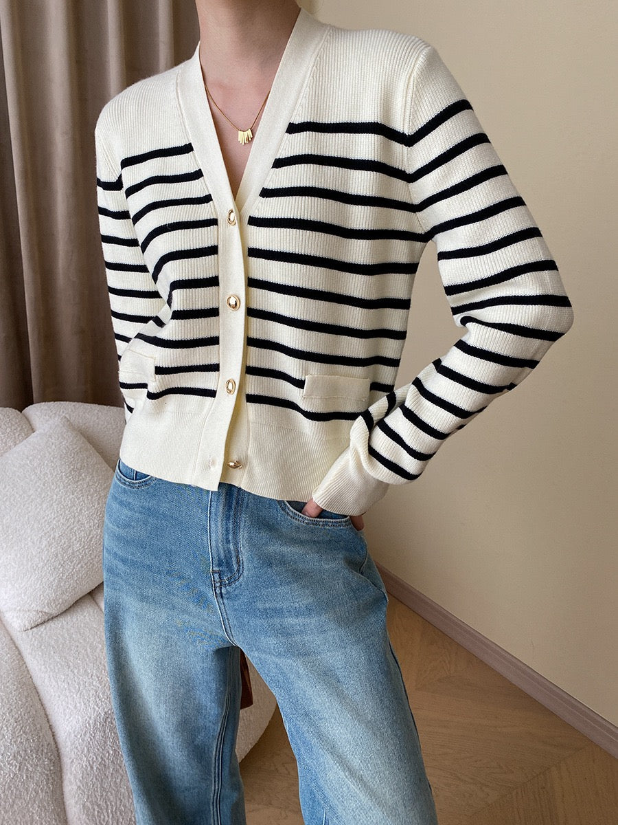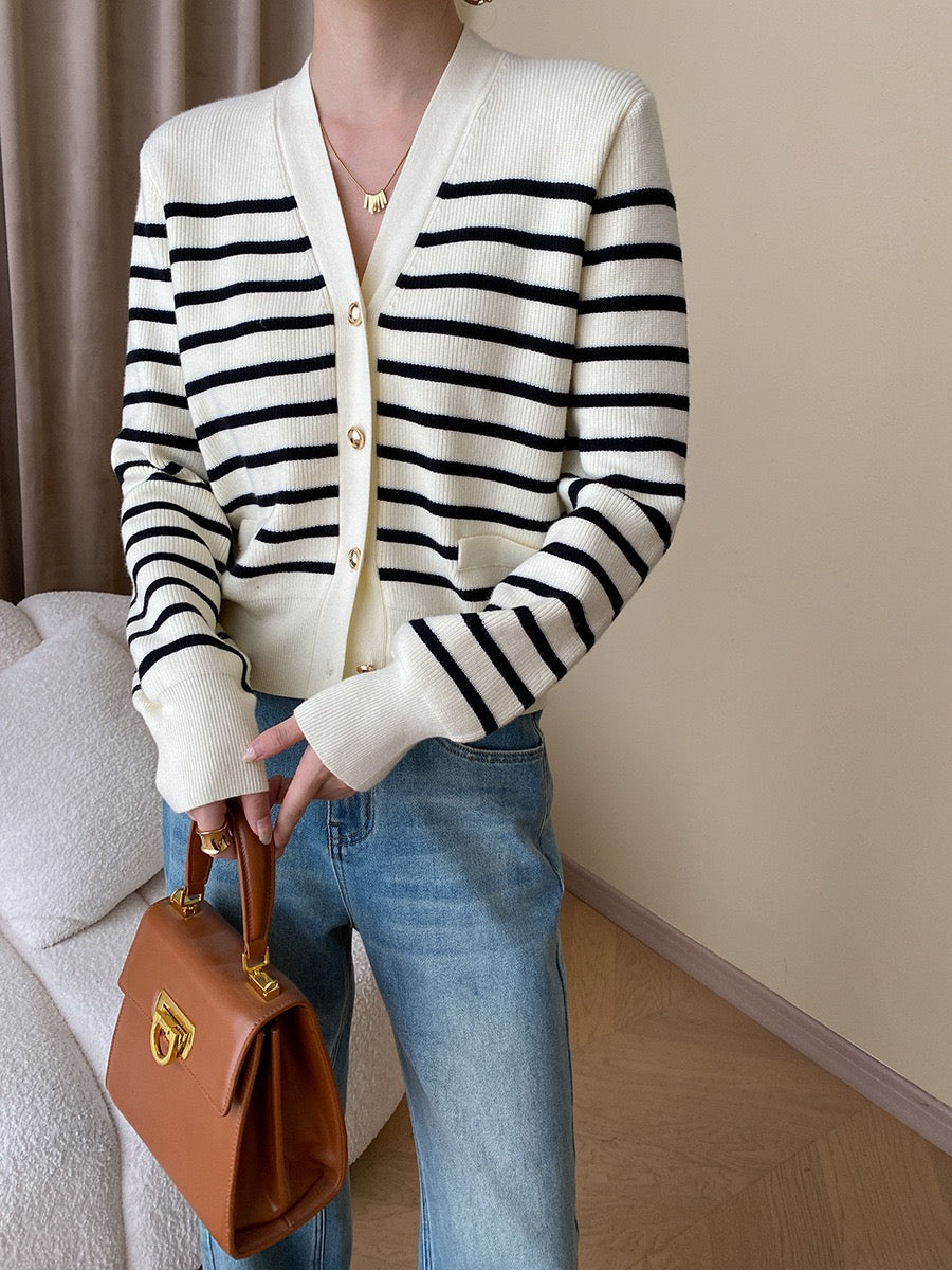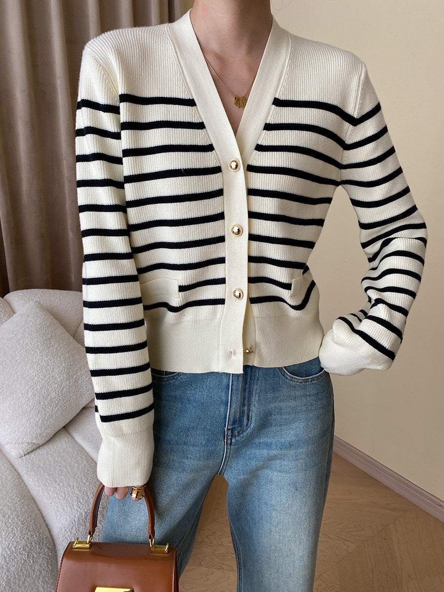 黑白條紋針織外套