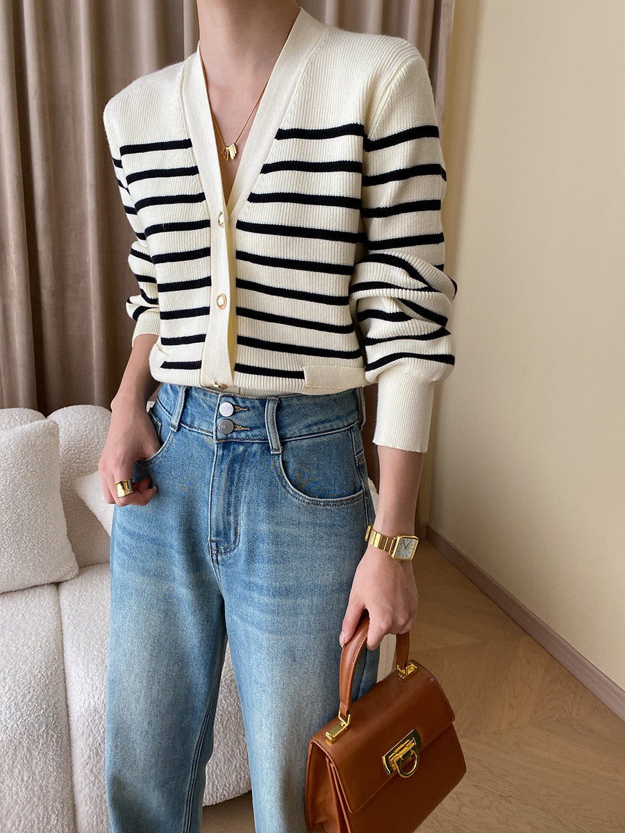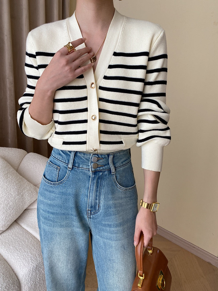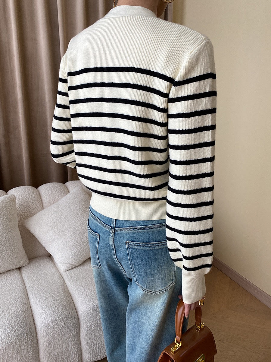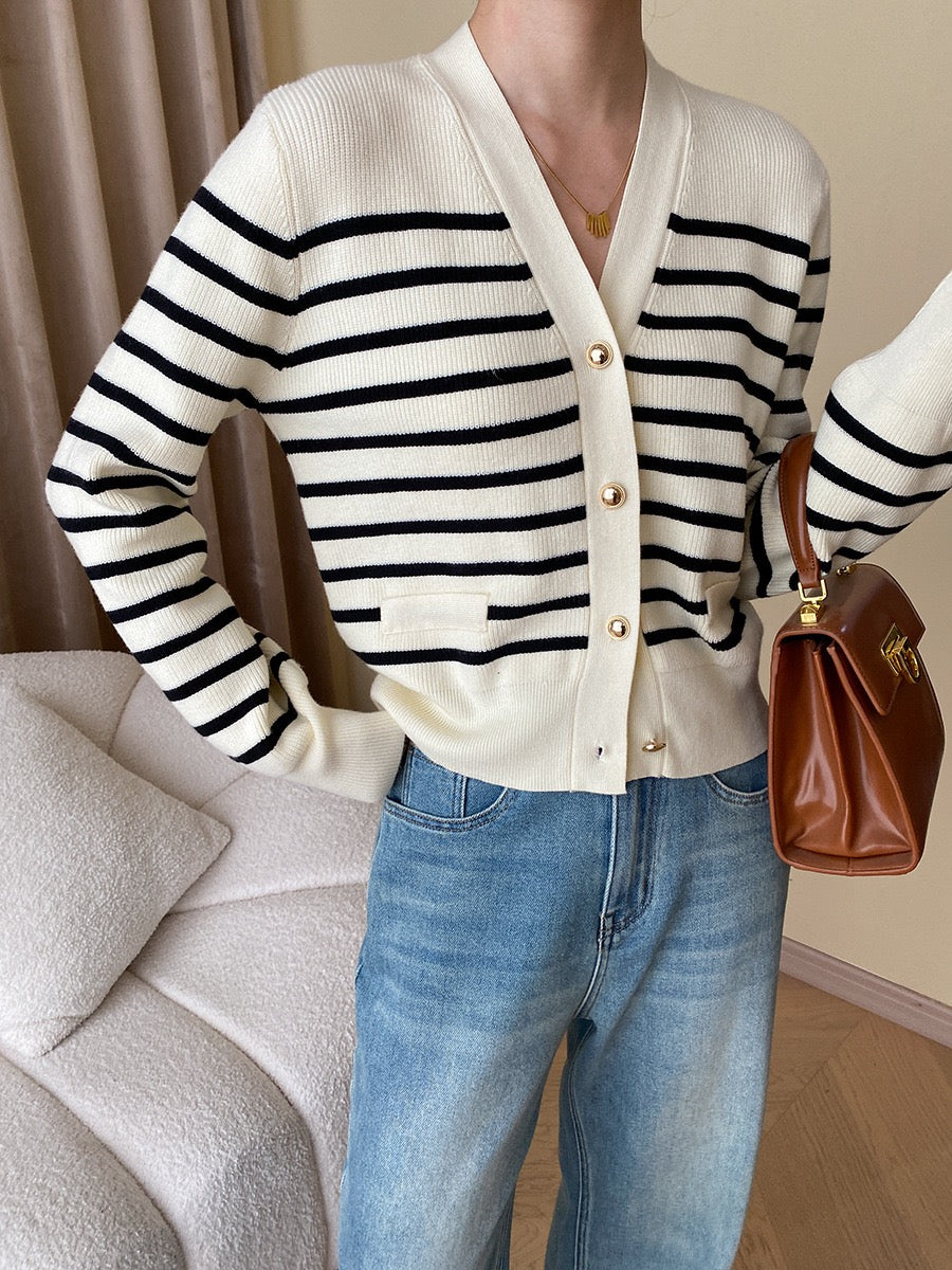 黑白條紋針織外套