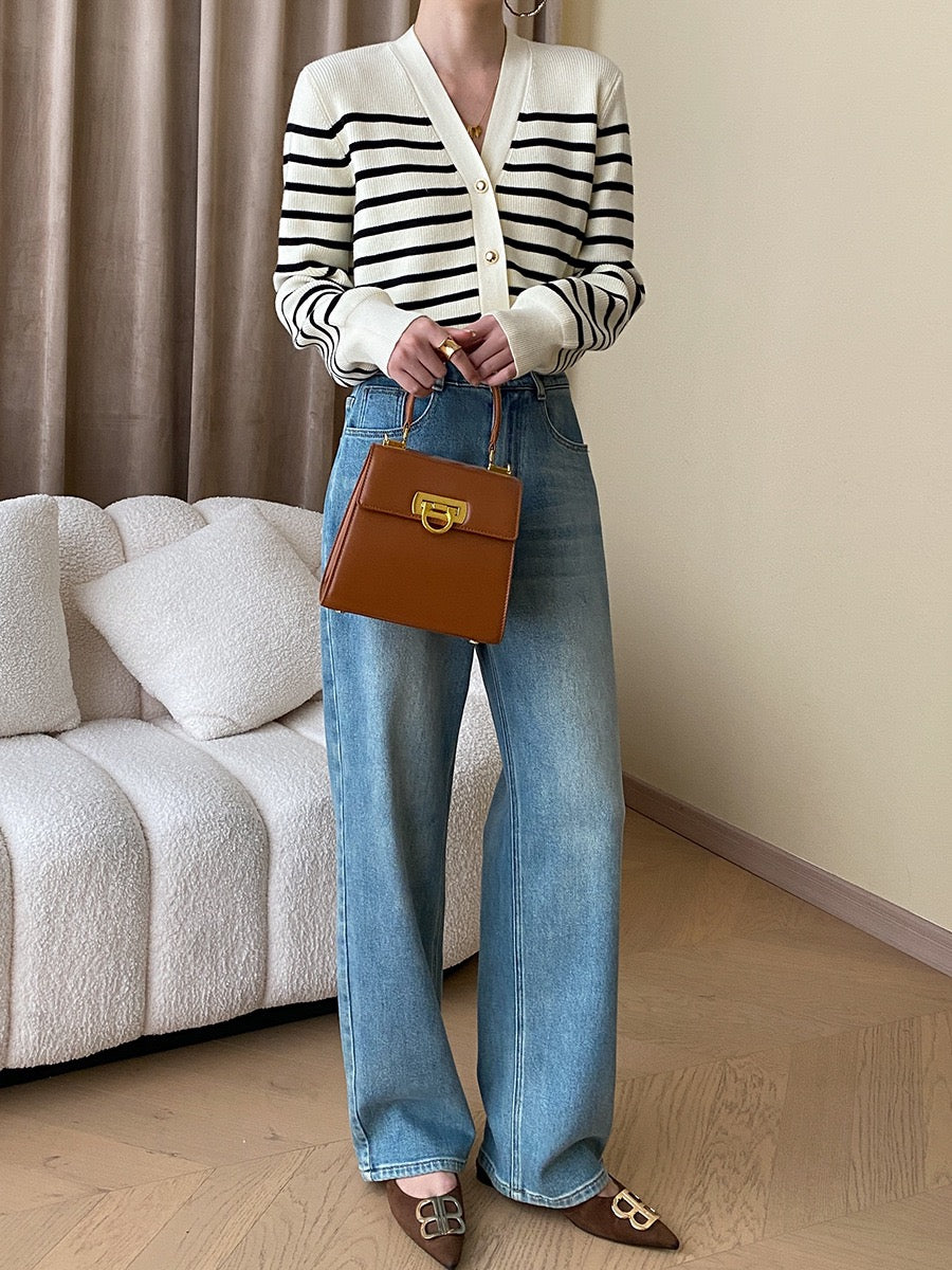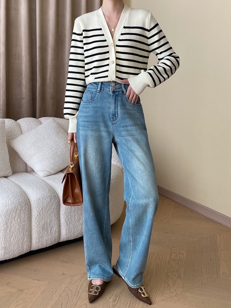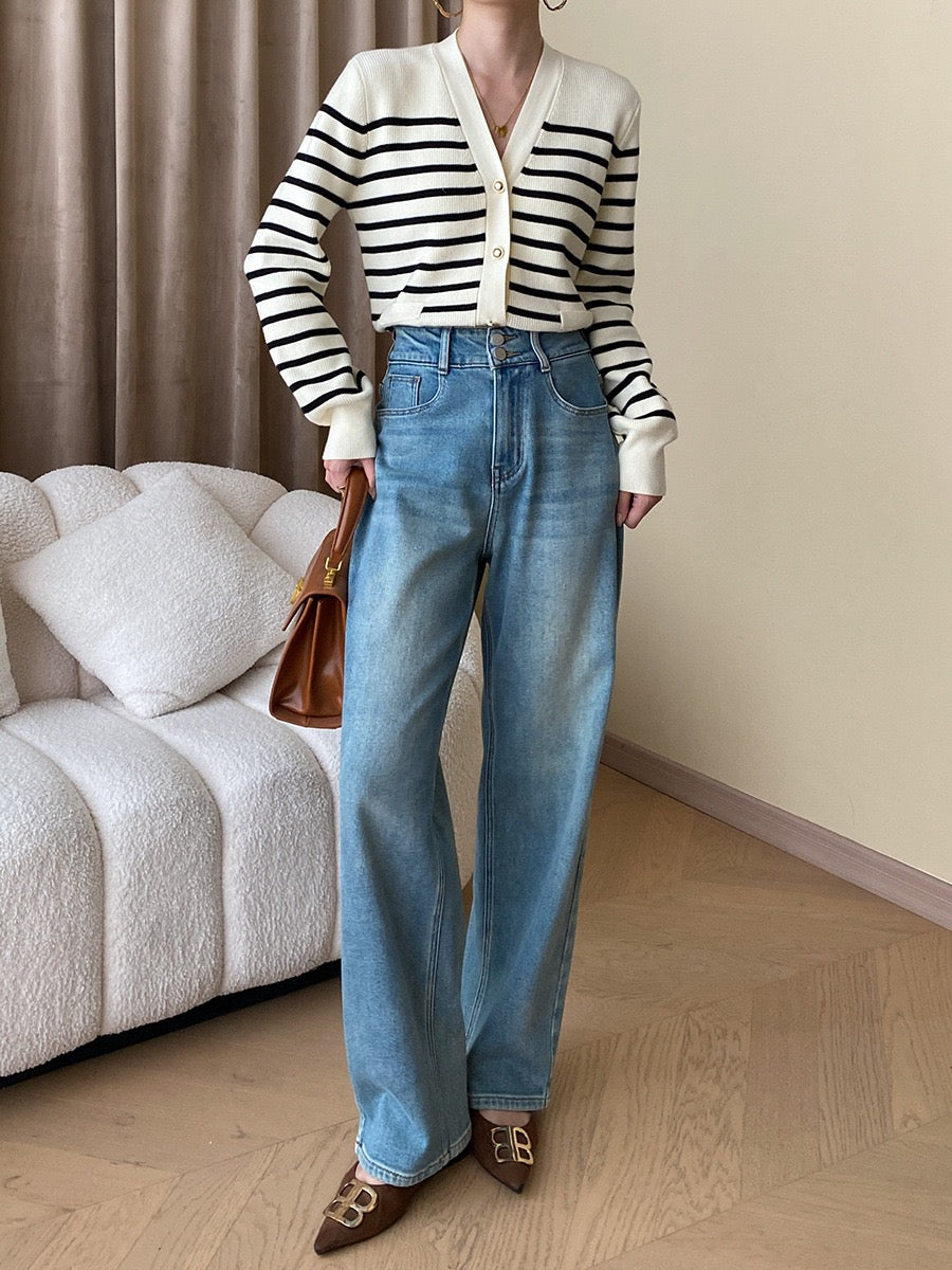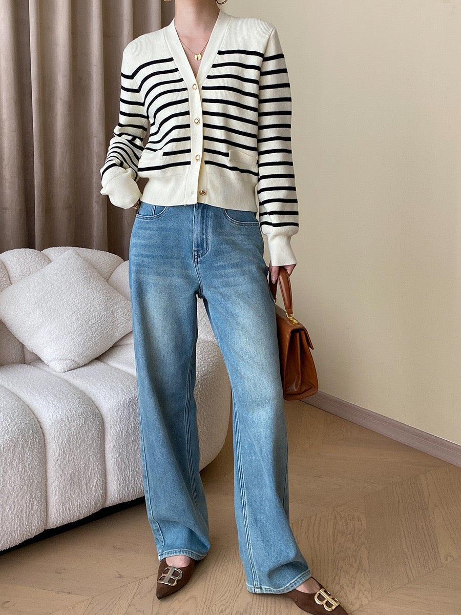 黑白條紋針織外套