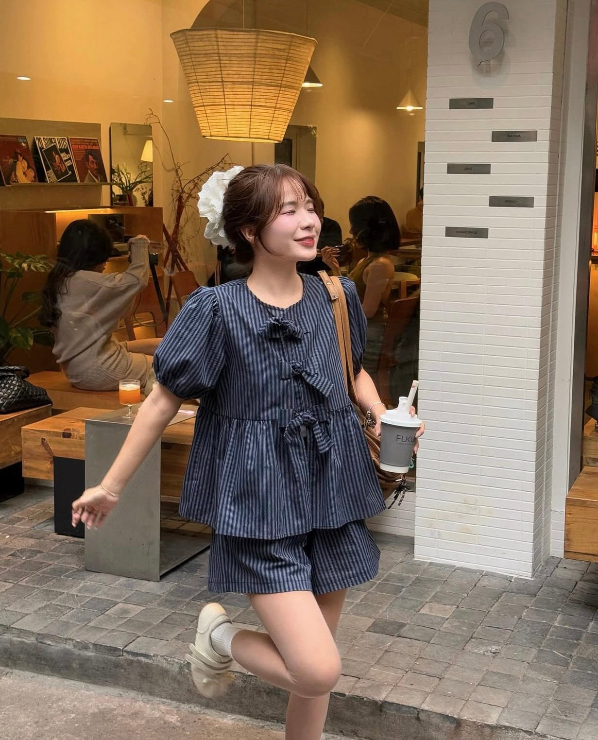 甜美蝴蝶結設計,減齡感滿滿💕寬鬆版型,舒適透氣不緊繃!短褲高腰剪裁,修飾腿型✨休閒又時尚,日常穿搭必備~滌綸面料