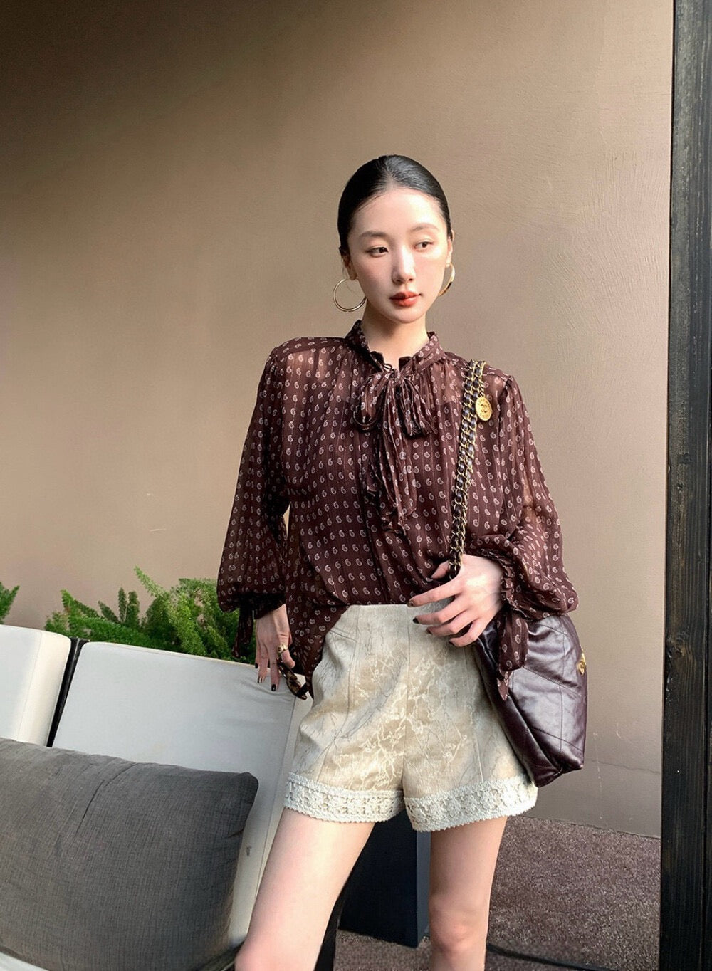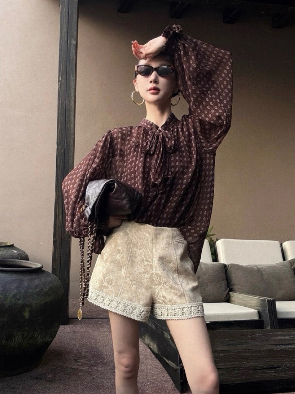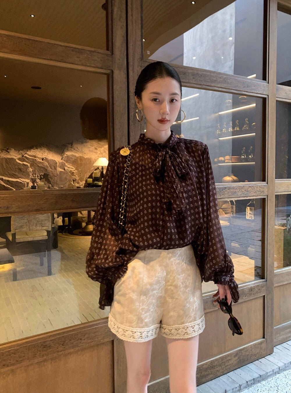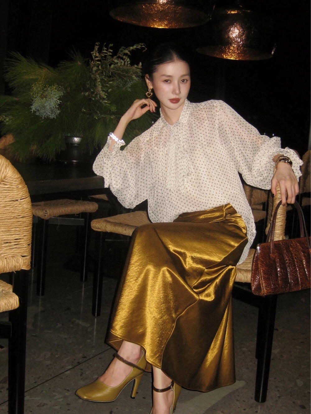 法式復古波點飄帶高級感顯瘦小衫