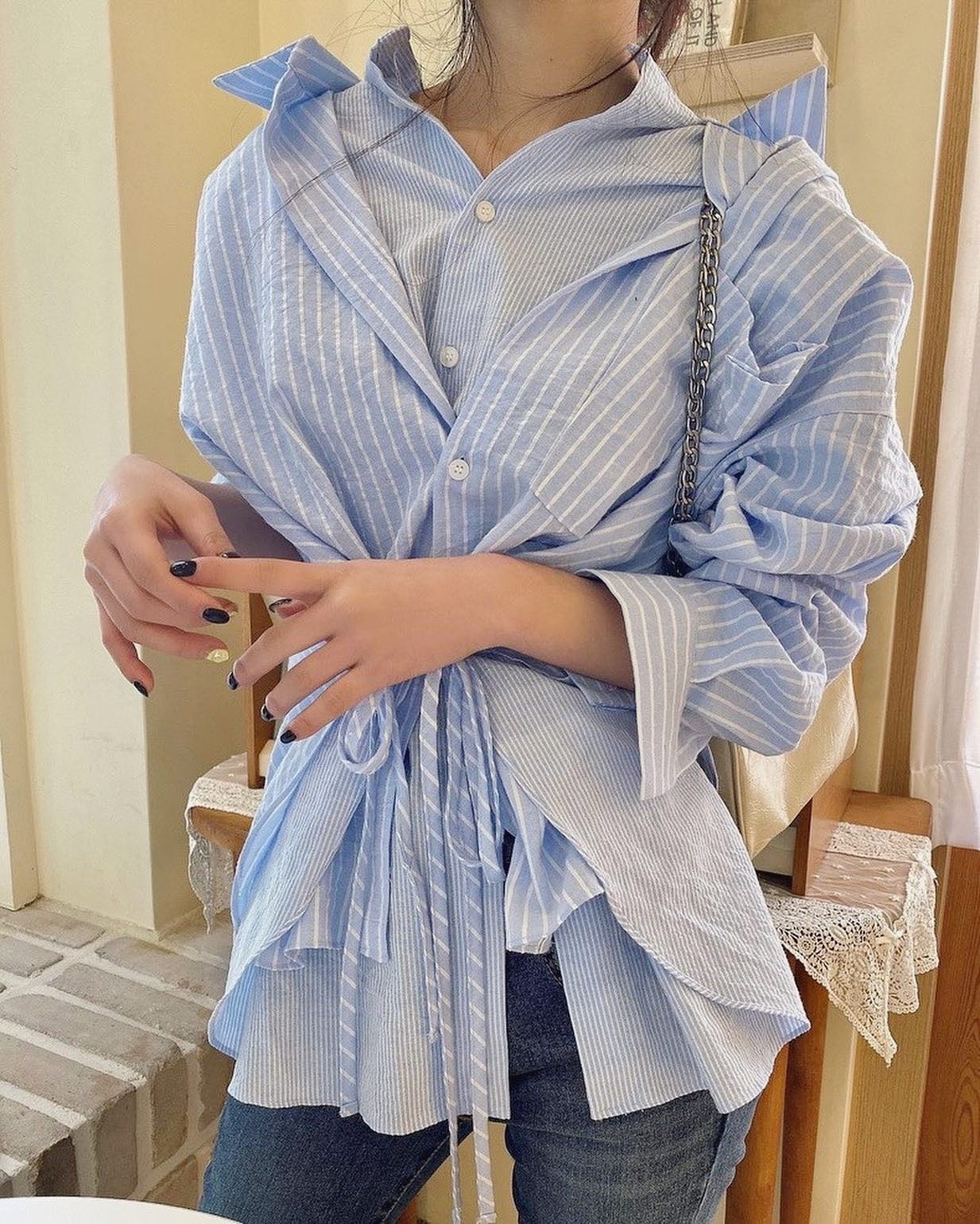 店主自留款🙋🏻♀️係夏天必不可少的恤衫!呢個款真係好特別‼️下面襯白褲/牛仔褲都得~方便百搭😚滌綸布料