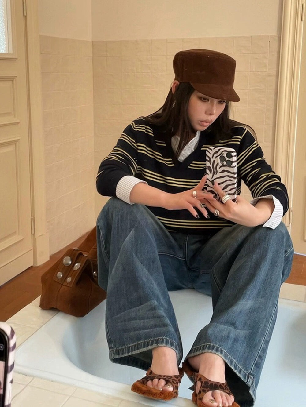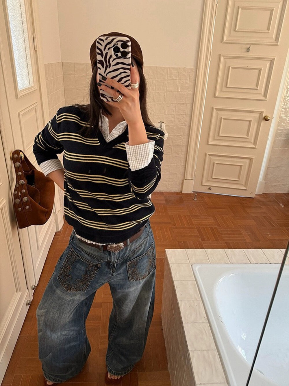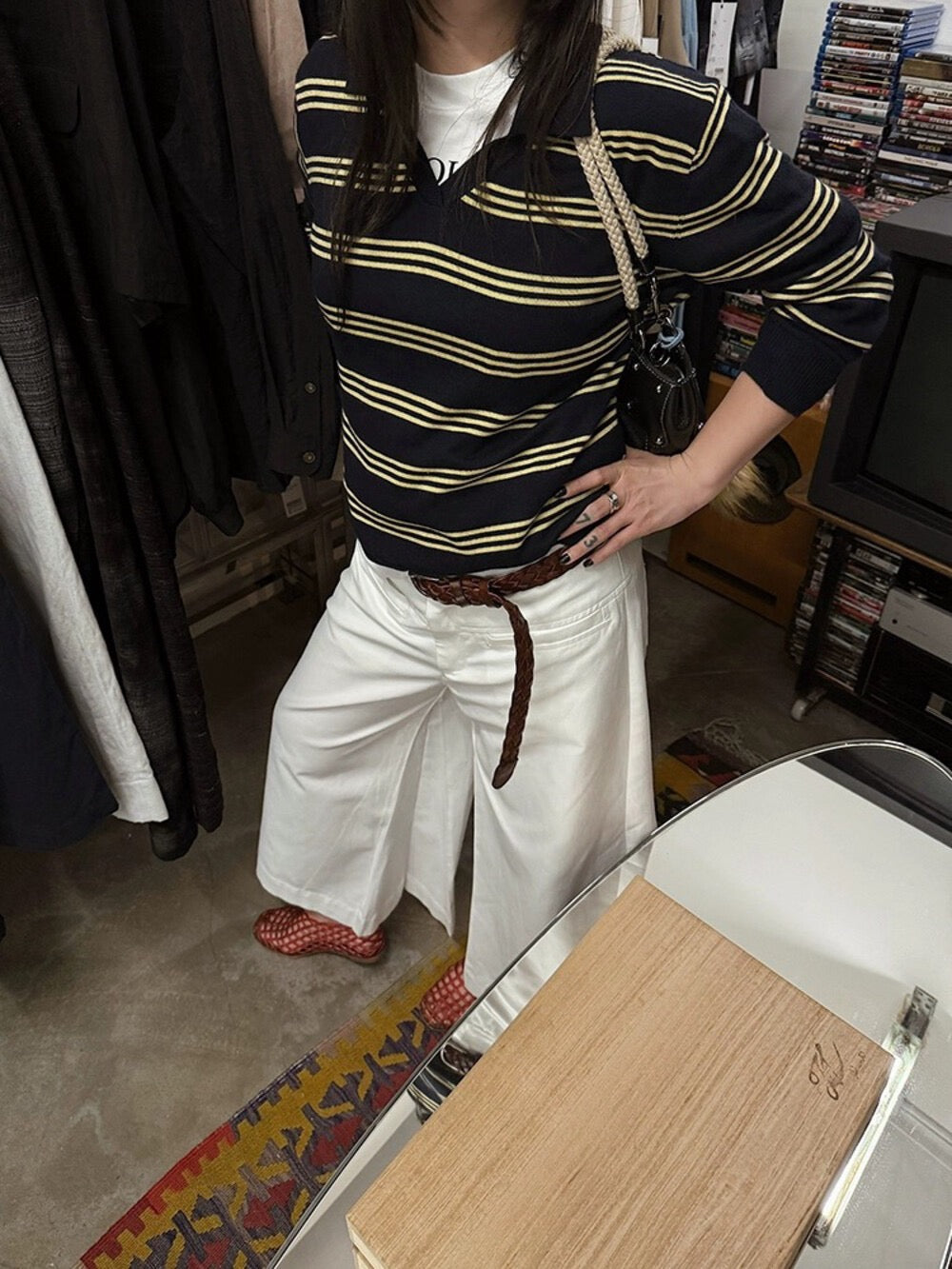 復古翻領優化头肩比慵懶寬鬆營造氛圍感顯瘦條紋簡約不簡單單穿內搭皆有型棉混紡