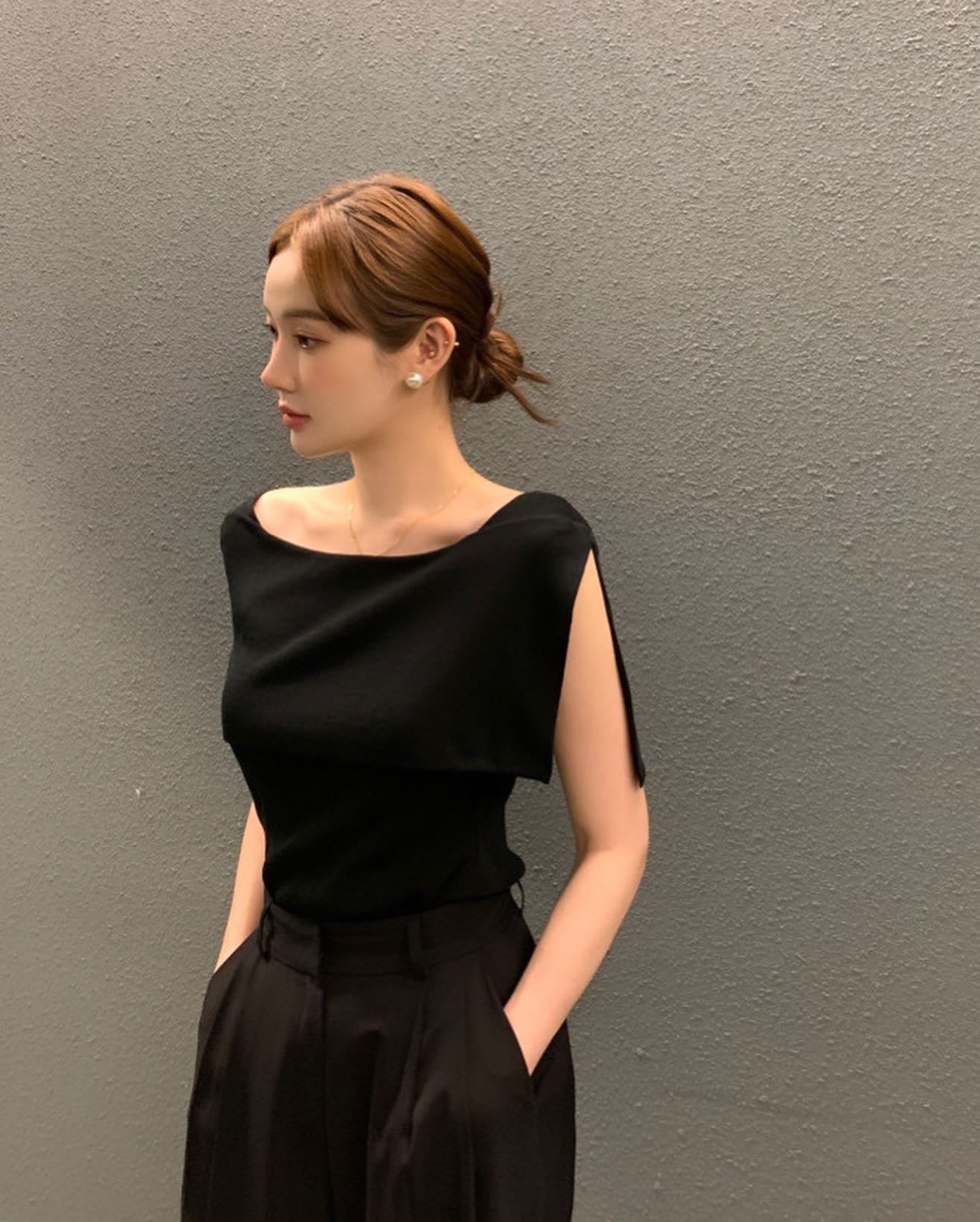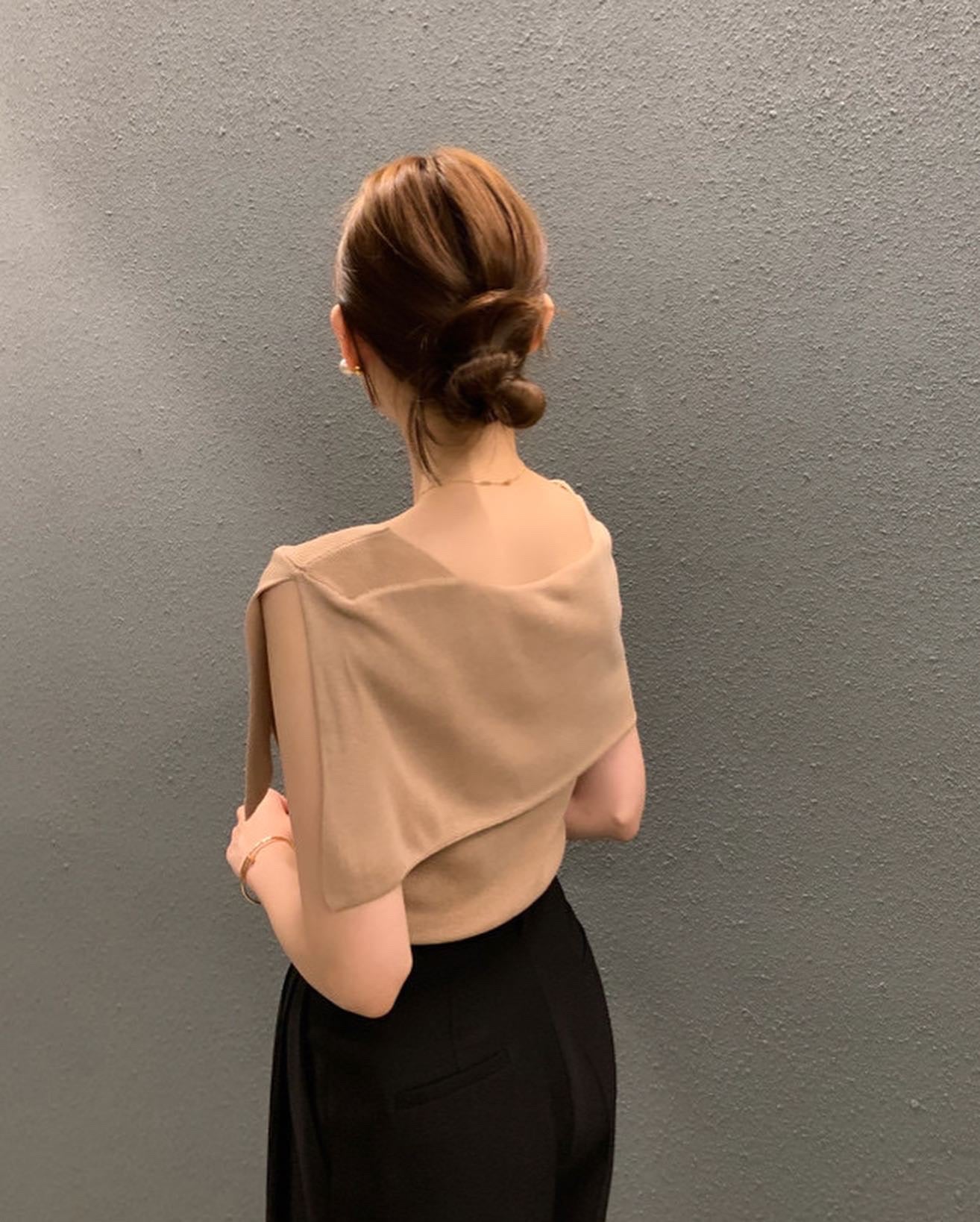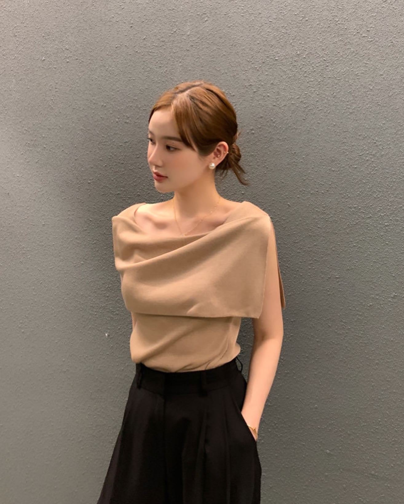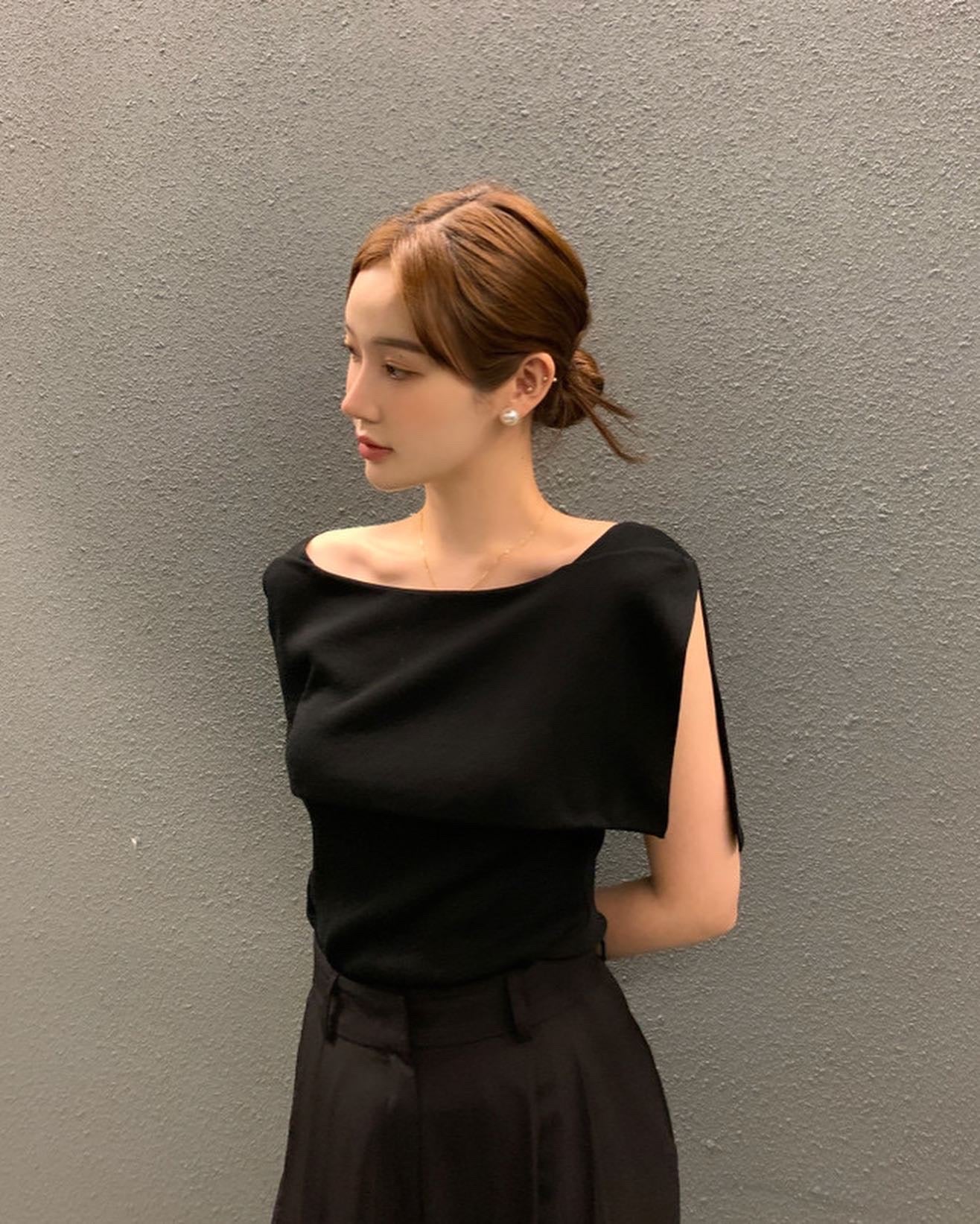 開衩一字肩針織衫