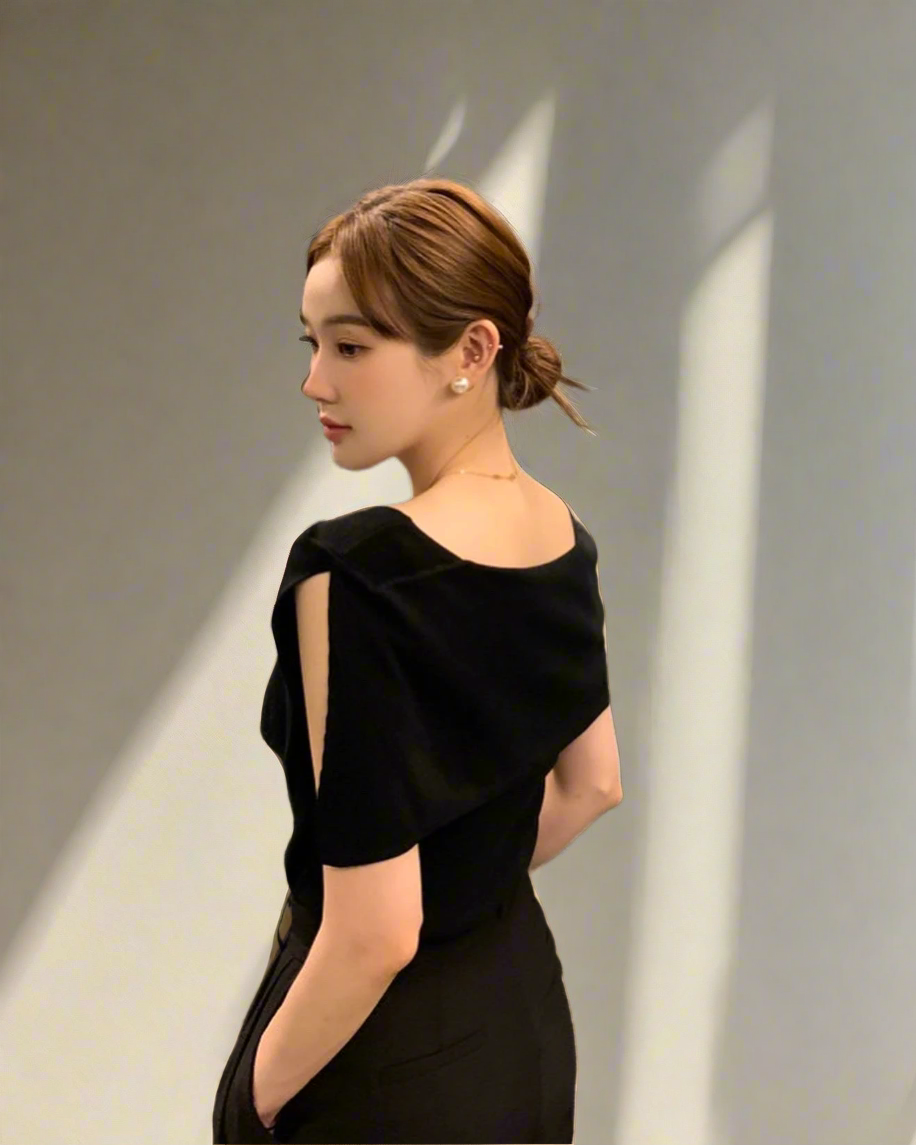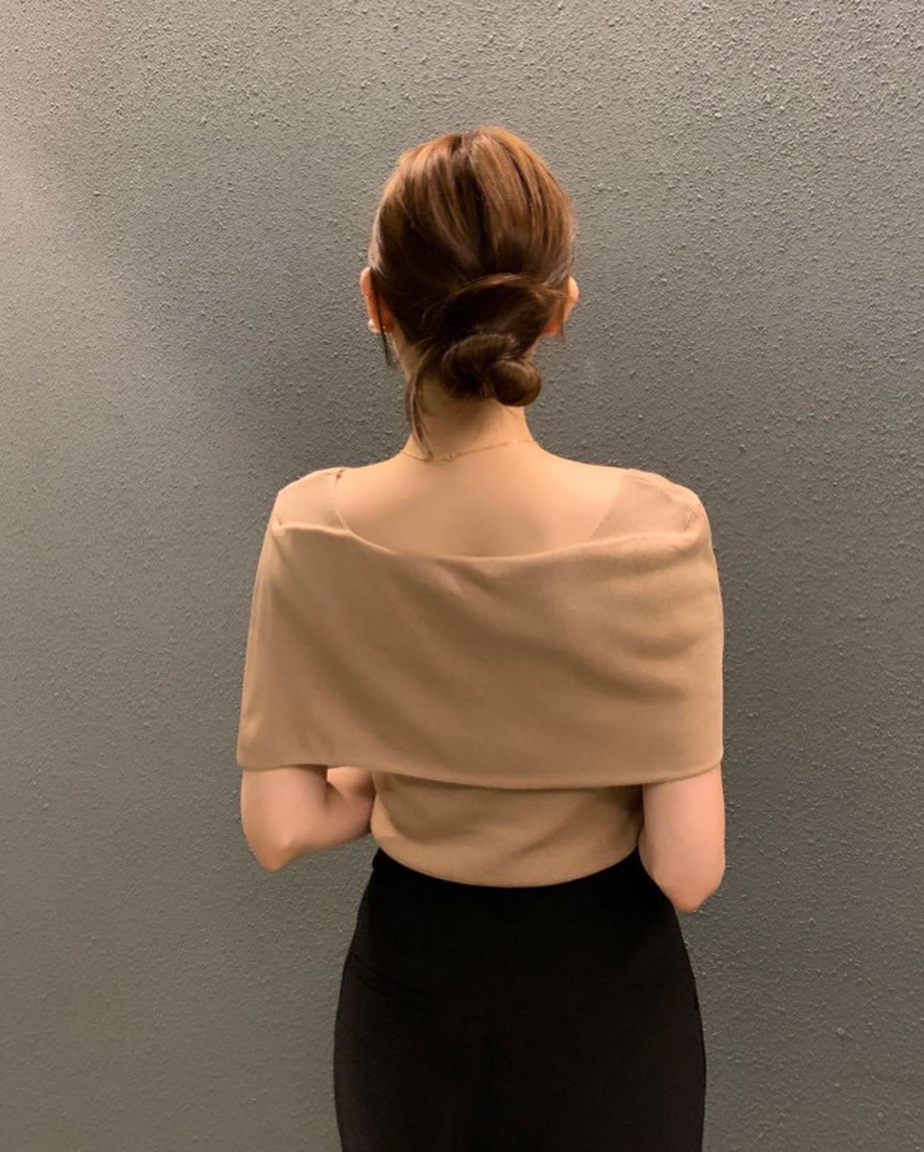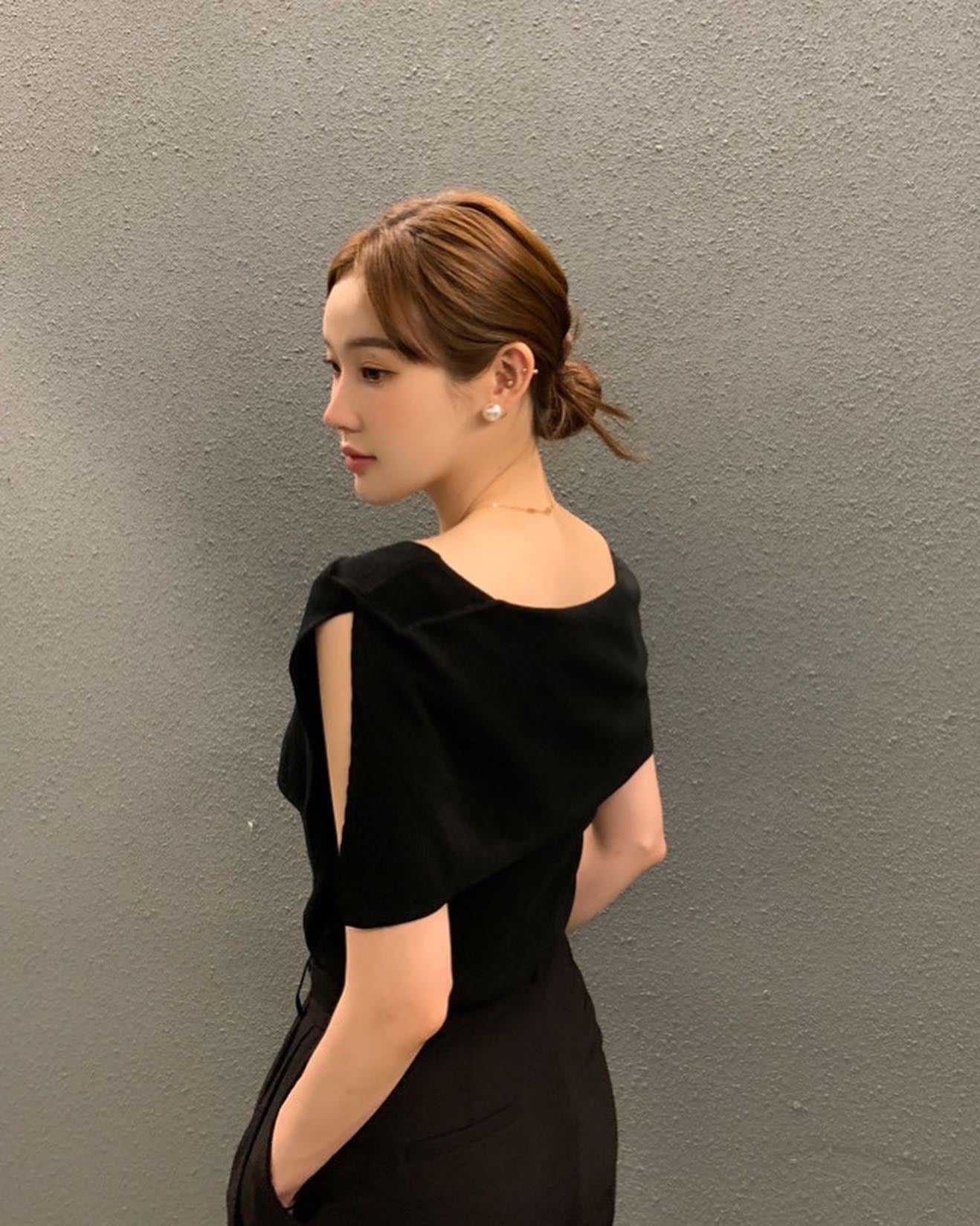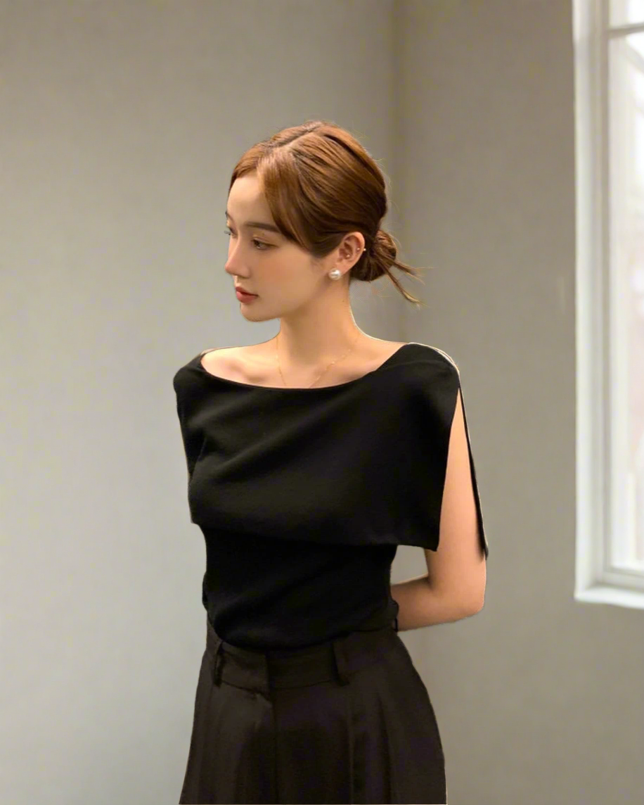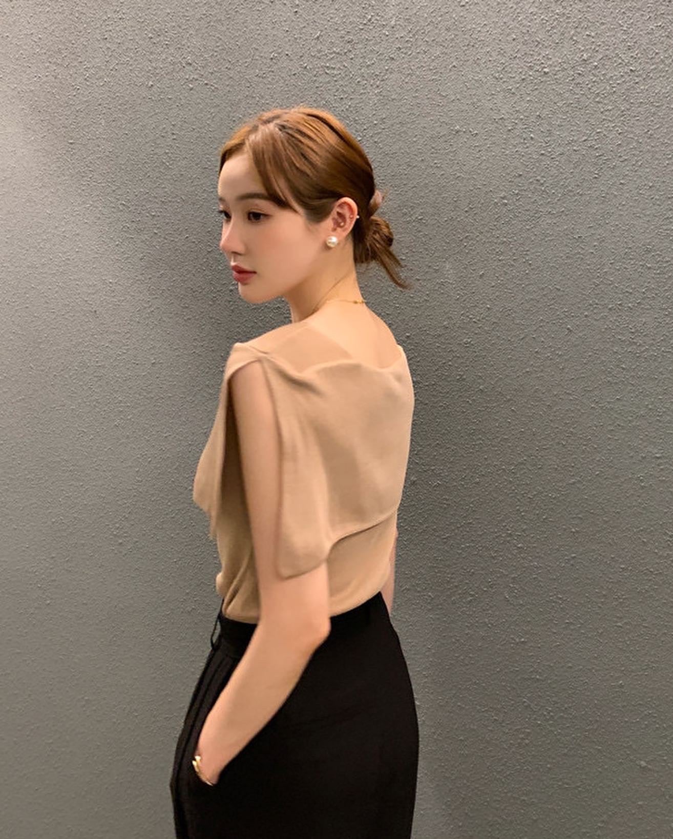 開衩一字肩針織衫
