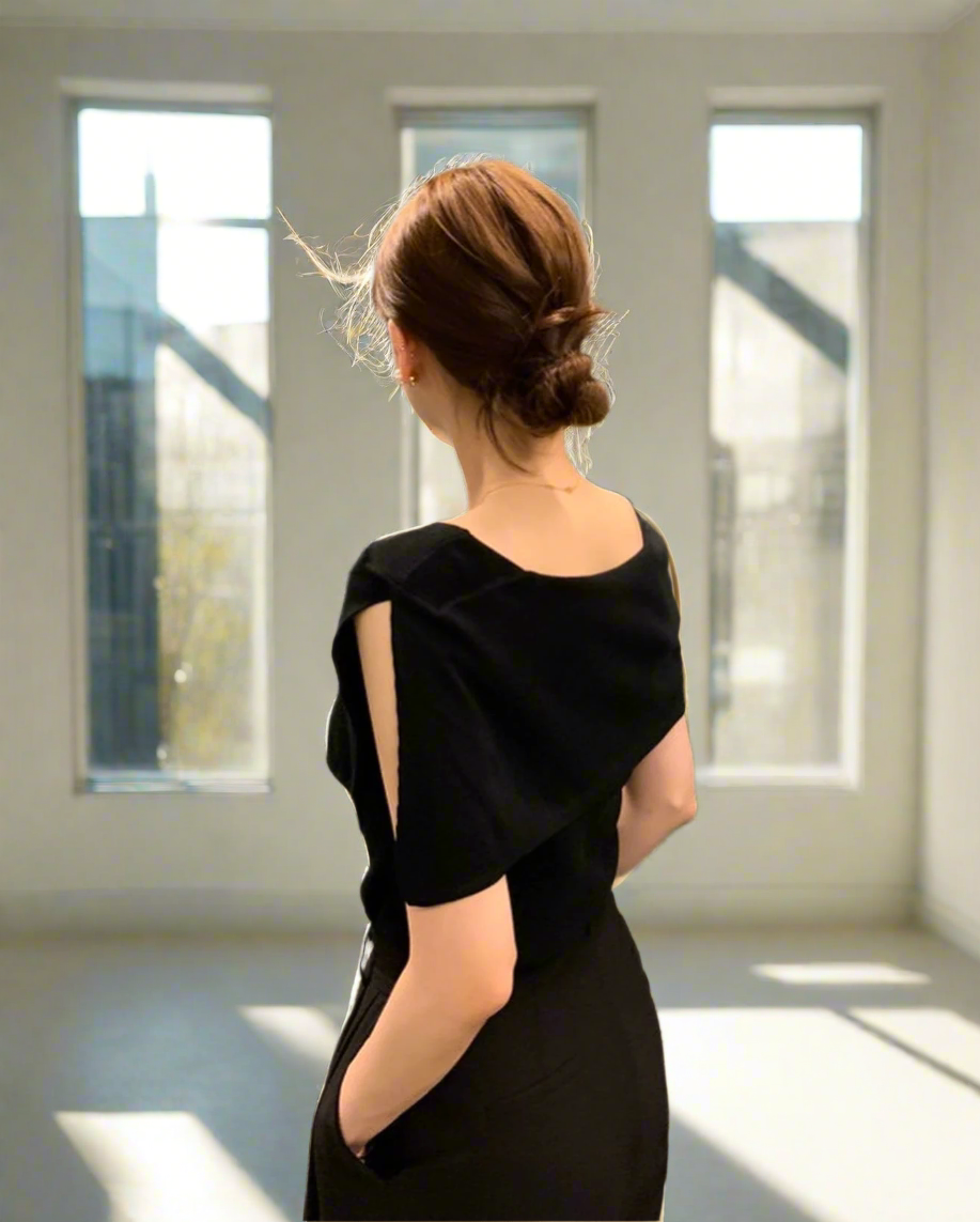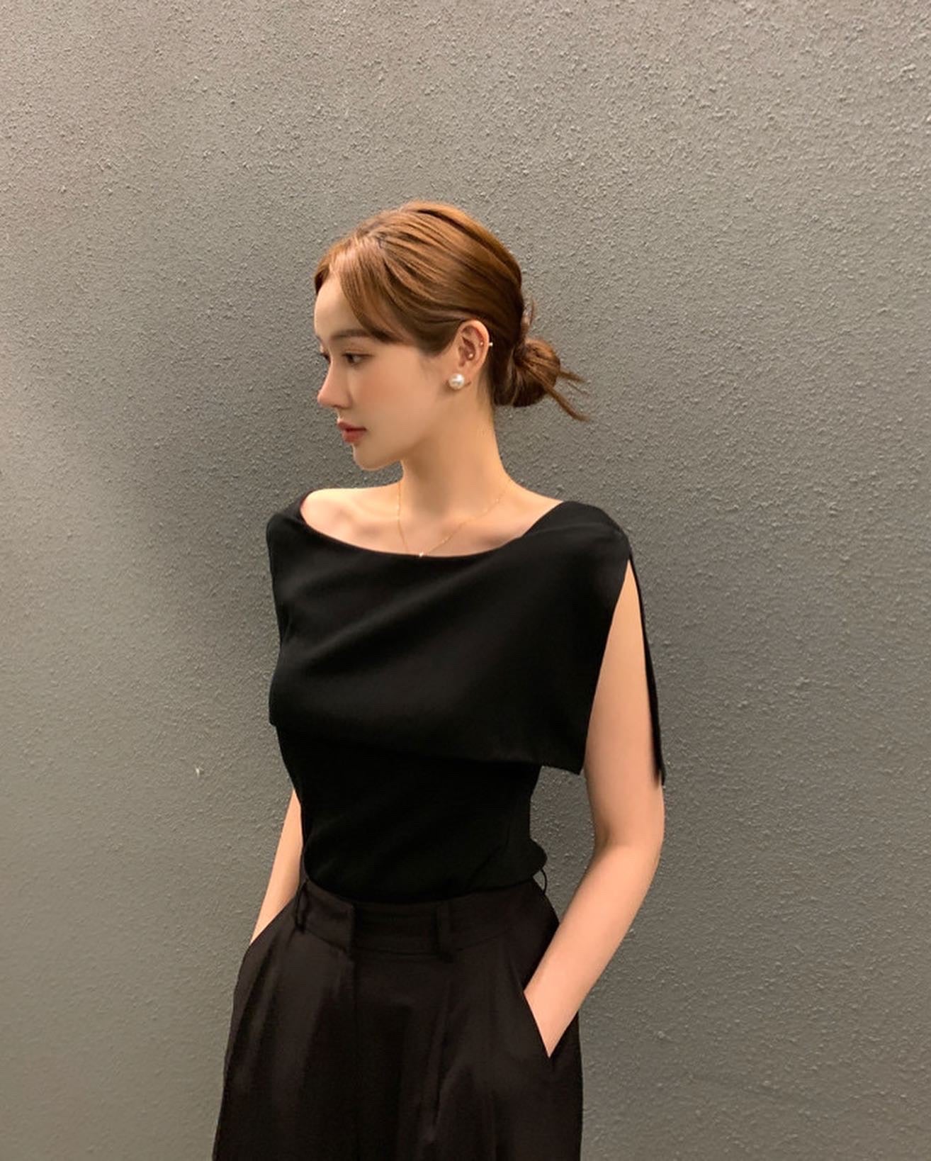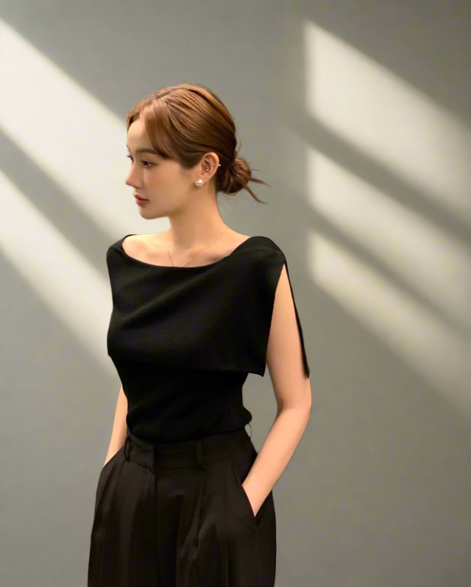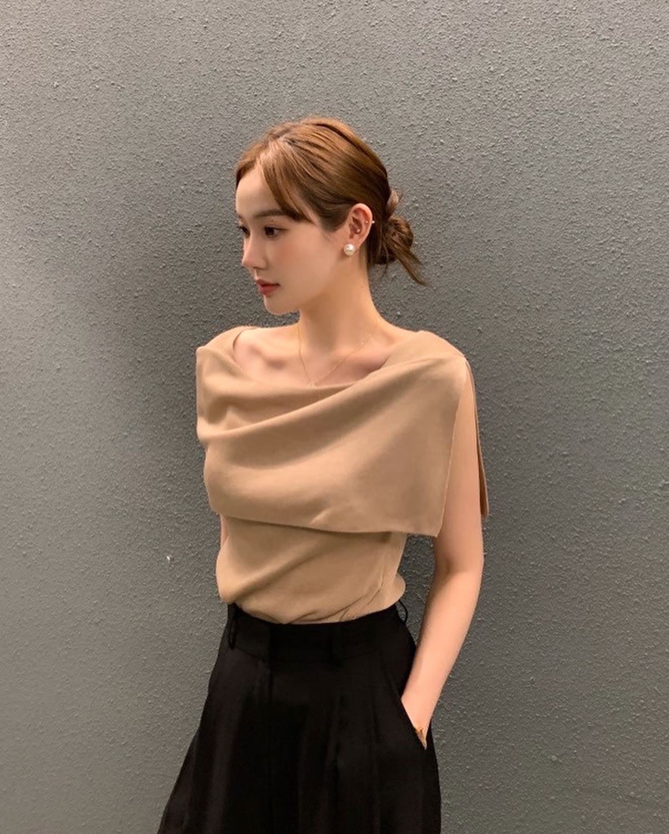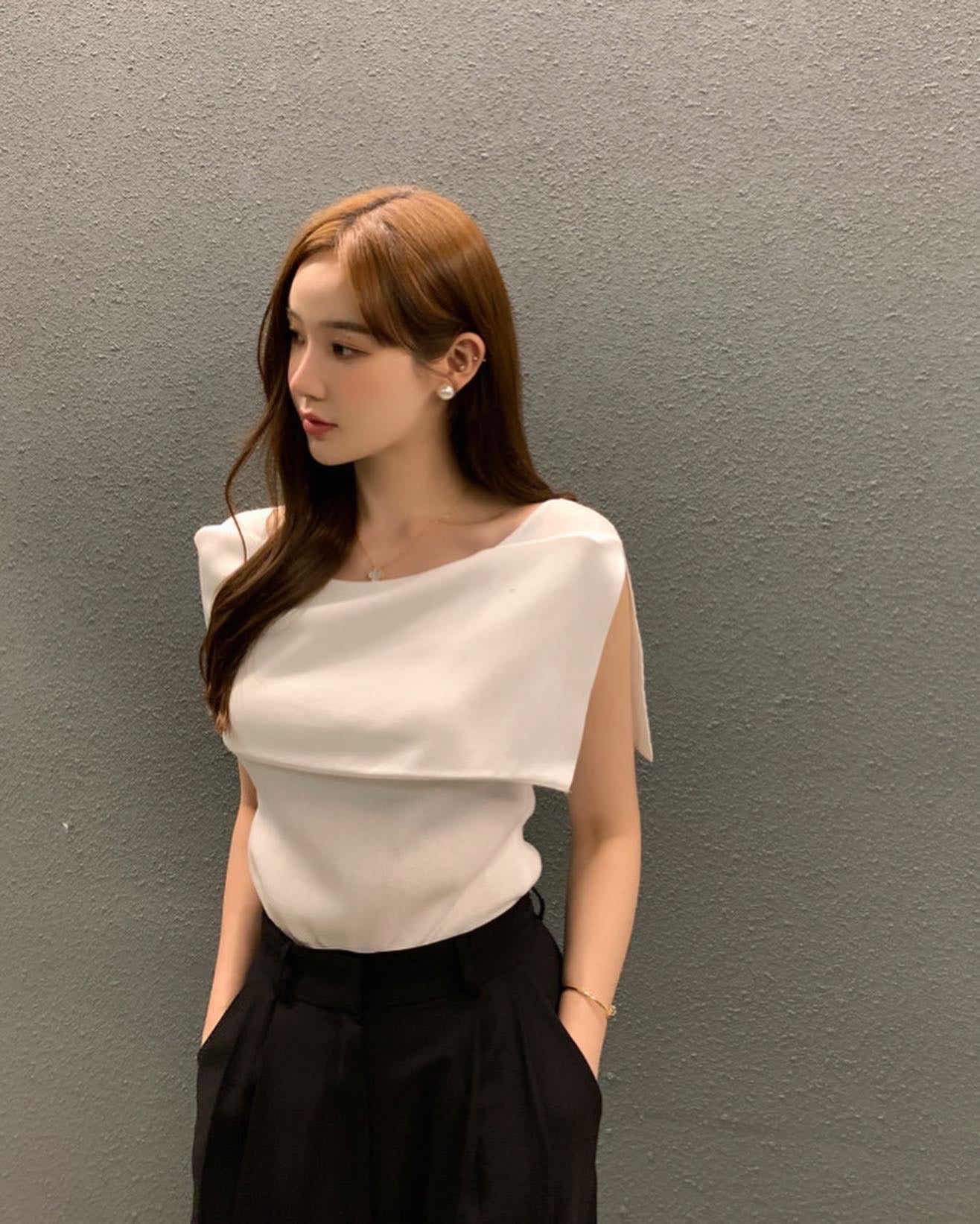 開衩一字肩針織衫