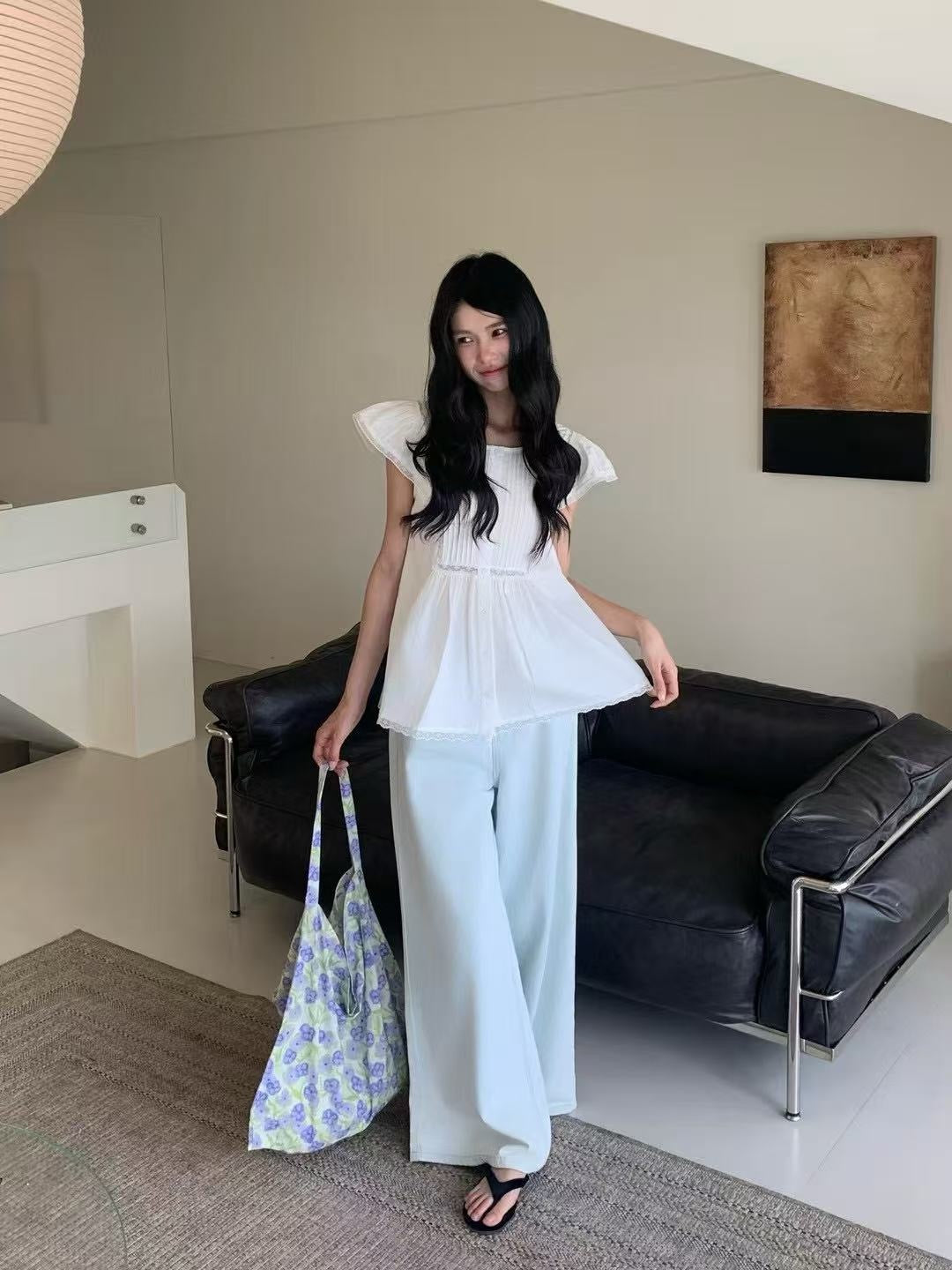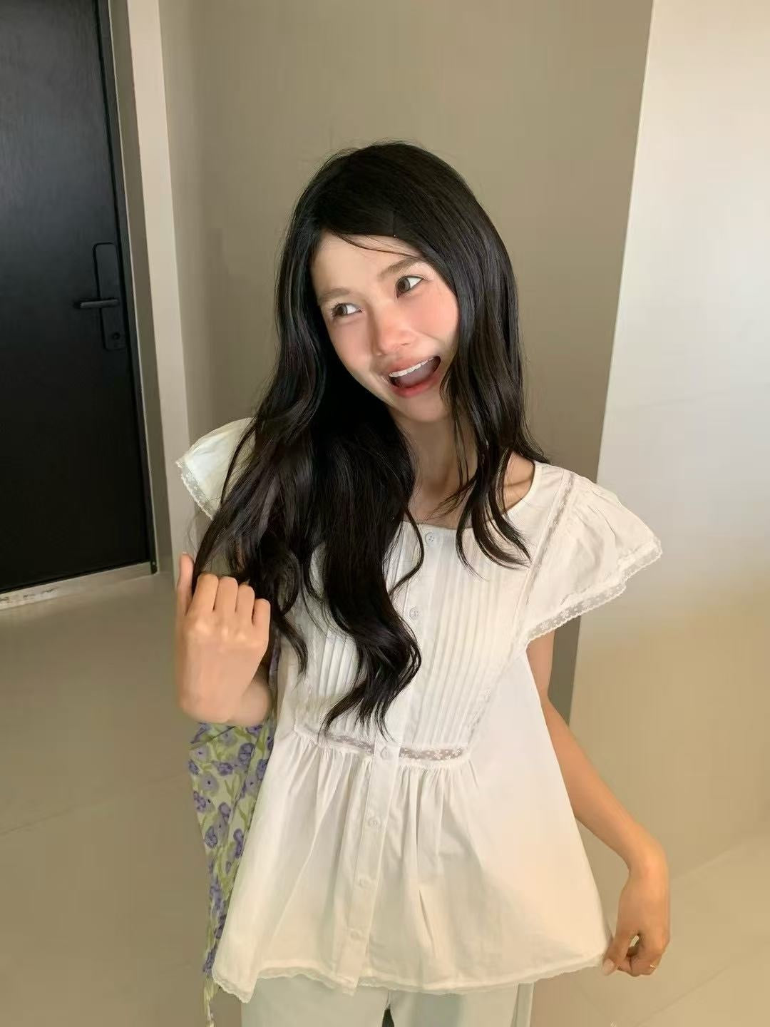 浪漫飛飛袖修飾手臂線條 ✨精緻蕾絲拼接增添女人味立體壓褶設計提升質感日常穿搭盡顯溫柔氣質滌綸面料