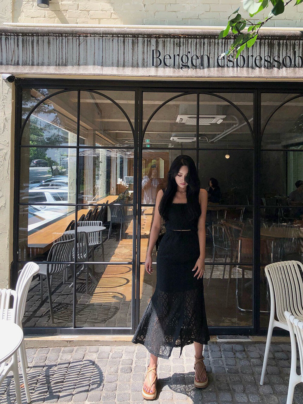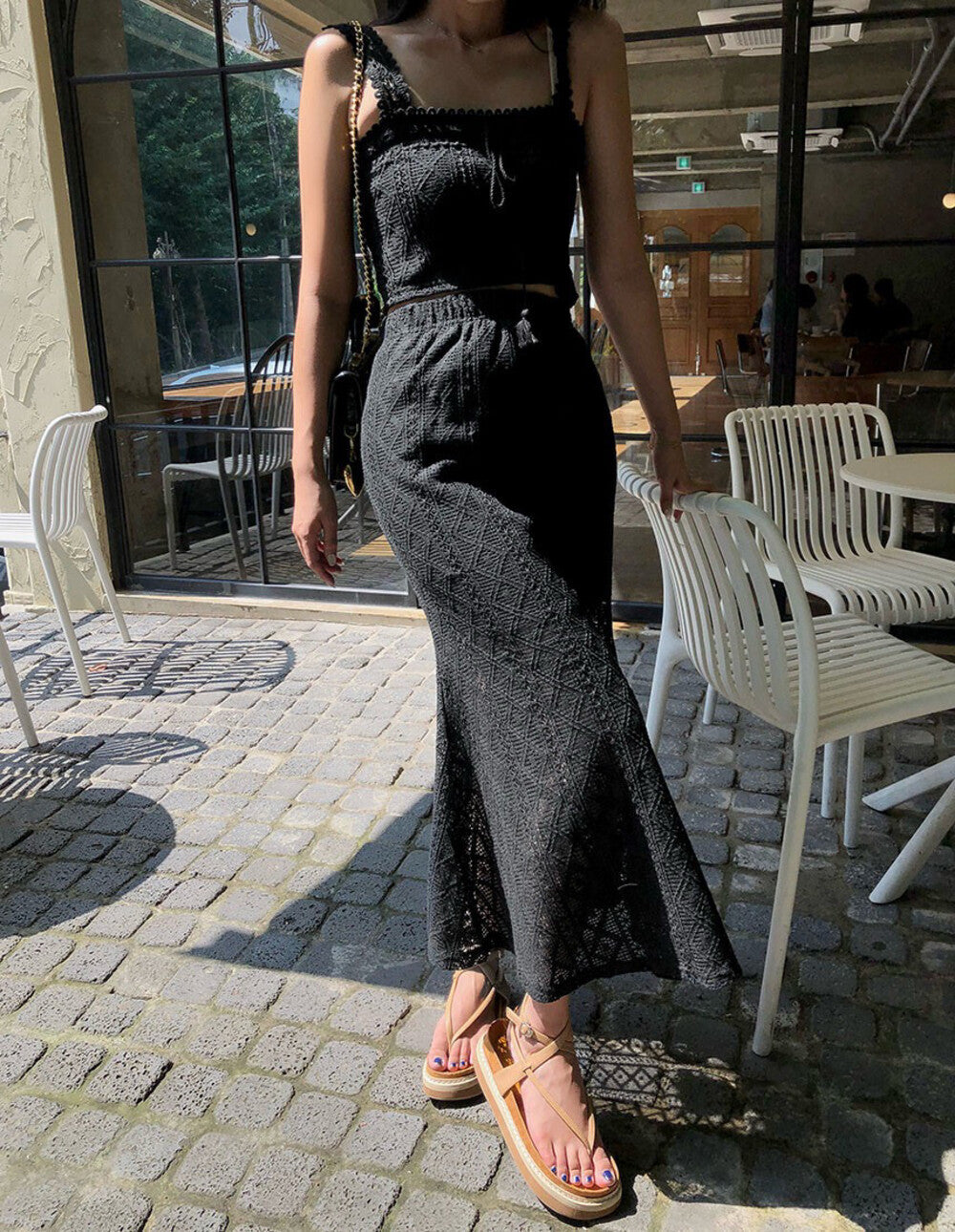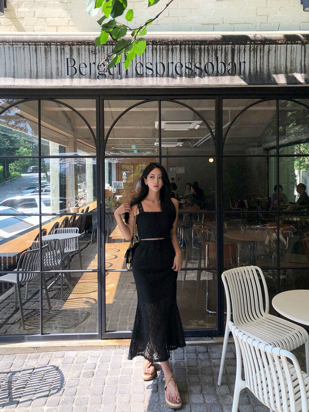 甜美蕾絲背心😘魚尾裙版型修飾身形上身優雅有氣質日常聚會都OK梭織面料