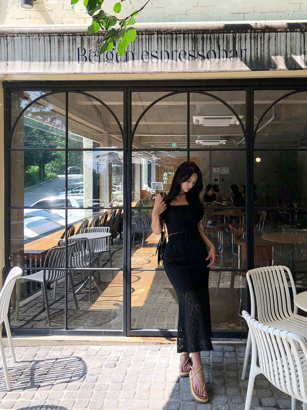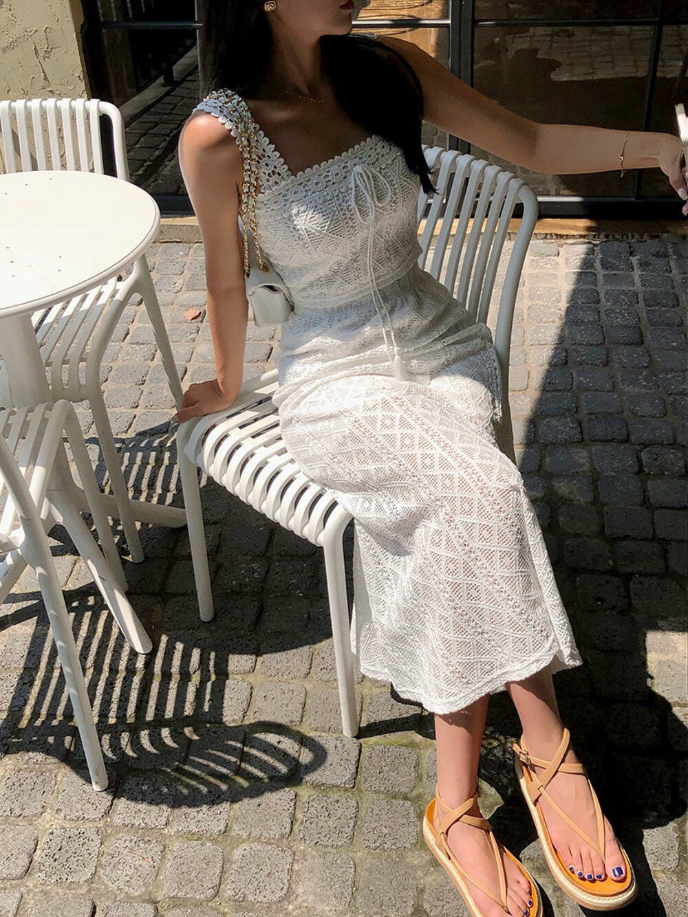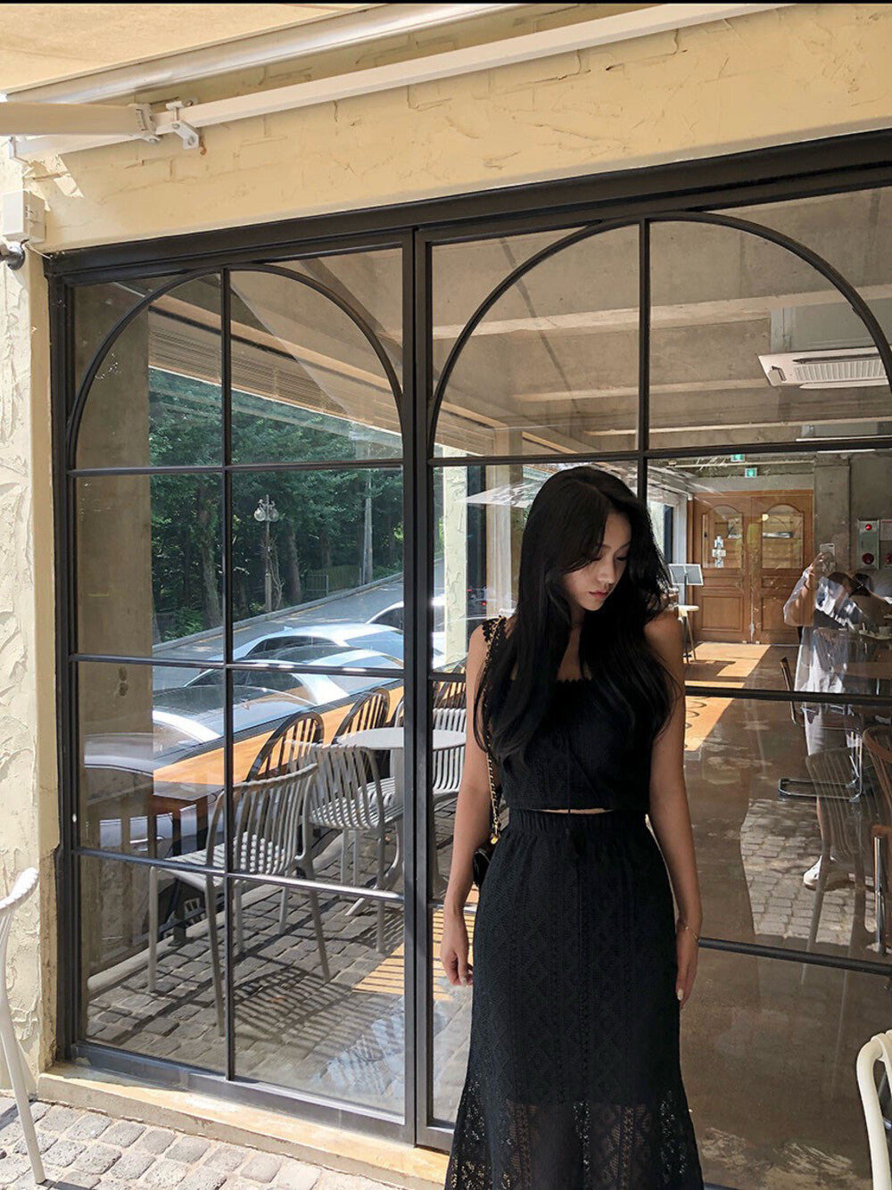 甜美蕾絲背心😘魚尾裙版型修飾身形上身優雅有氣質日常聚會都OK梭織面料