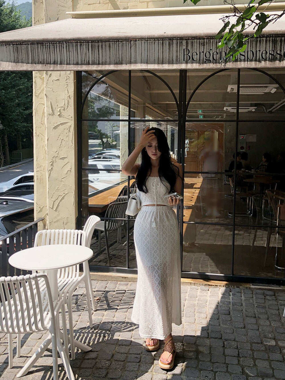 Size:Free Size 背心上圍 89cm衣長 45cm半身裙腰圍 67cm臀圍 100cm裙長 85cm