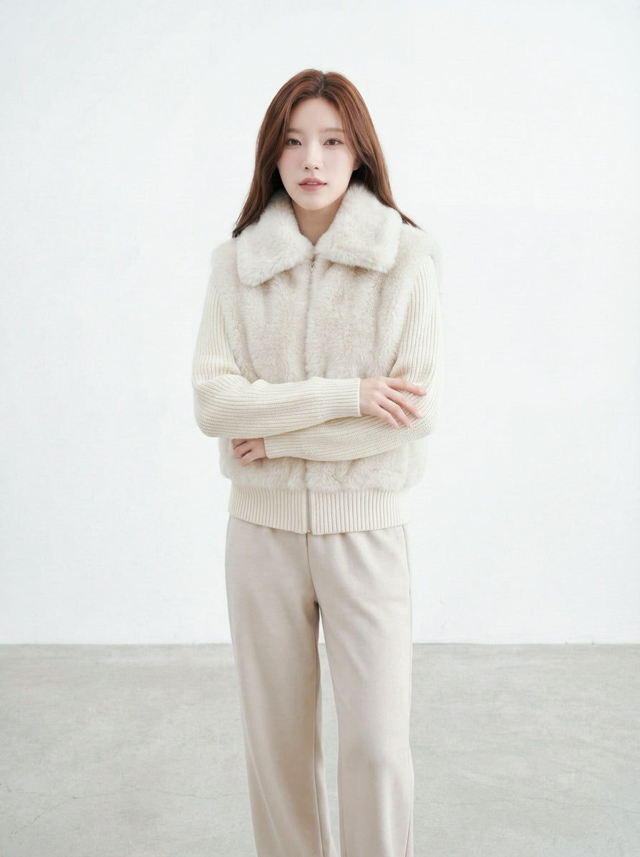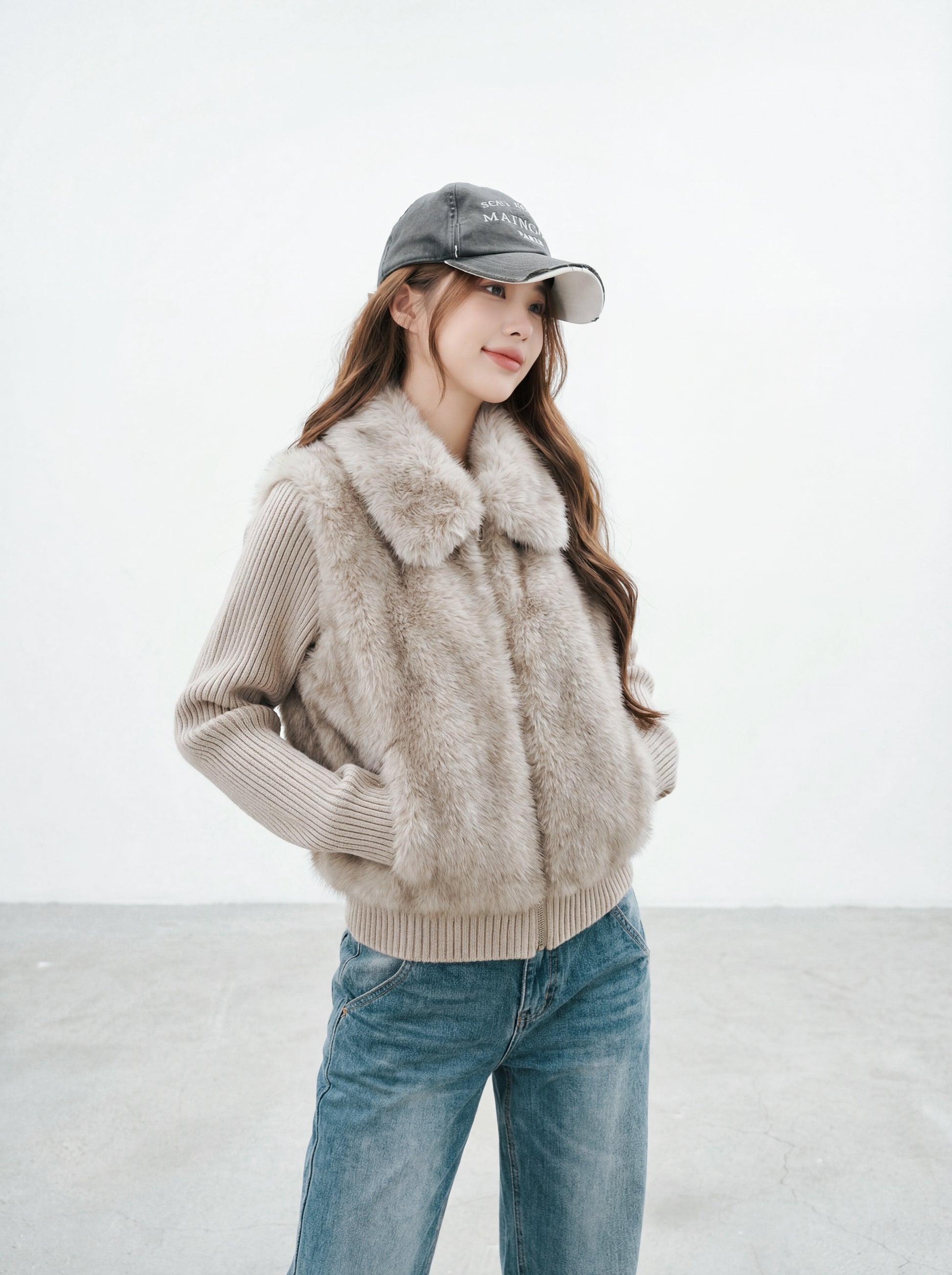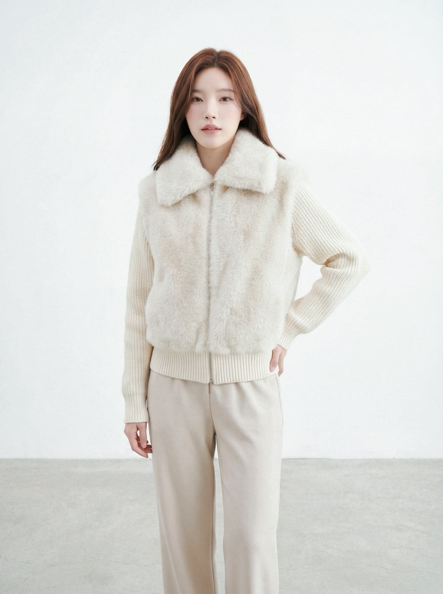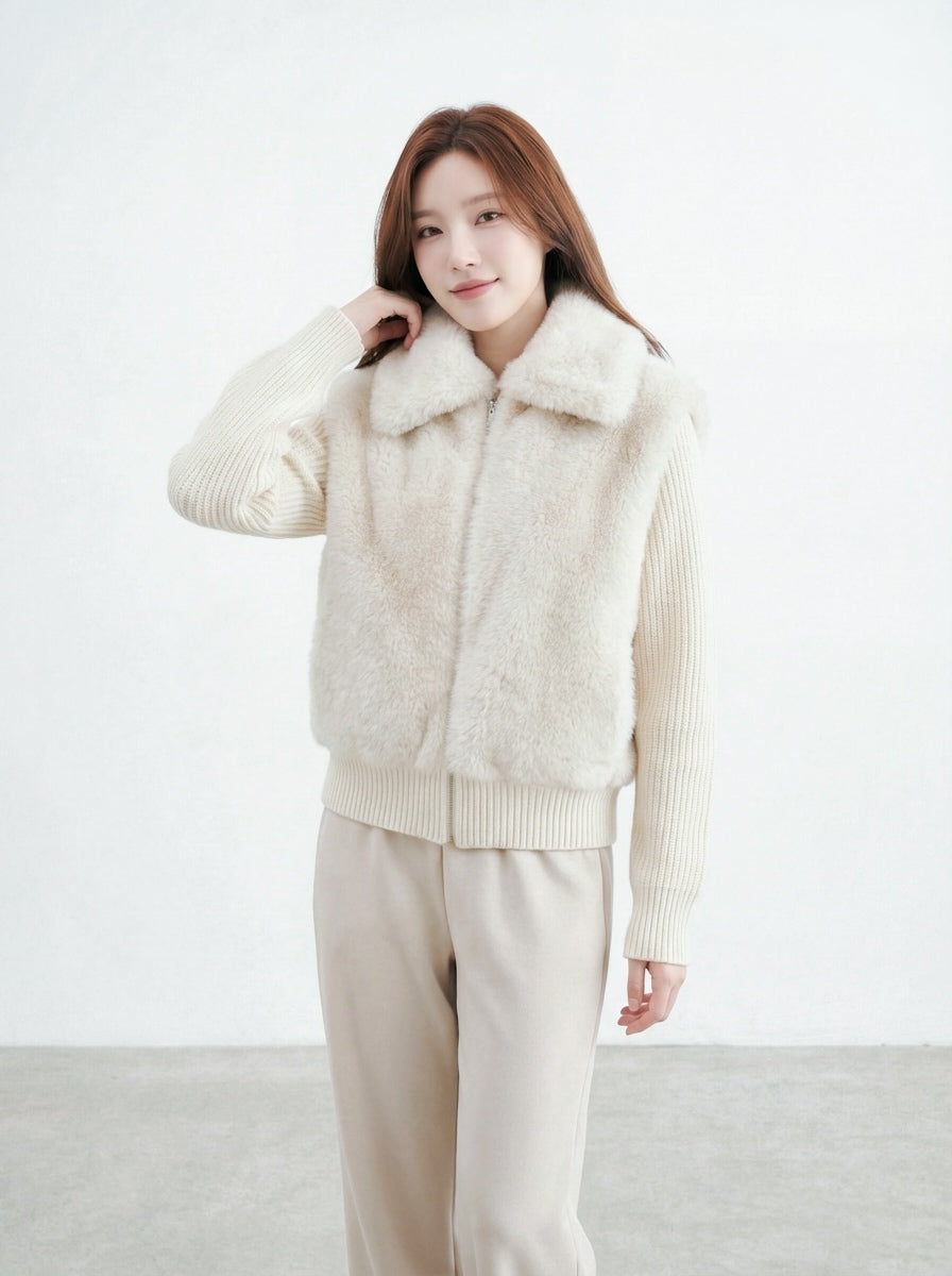 奶呼呼漸層毛毛領短外套