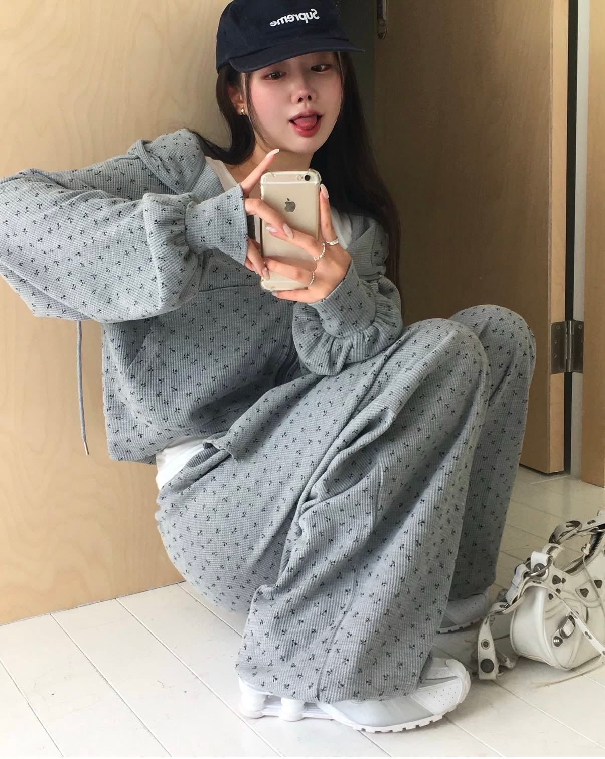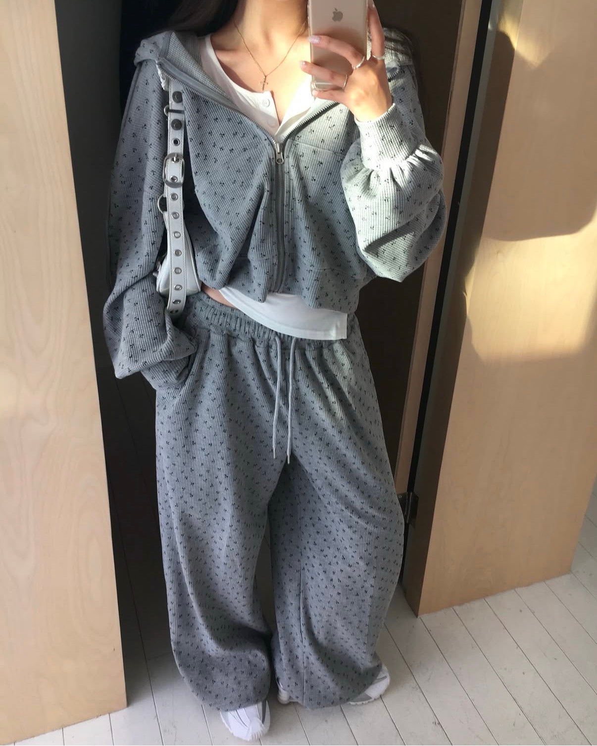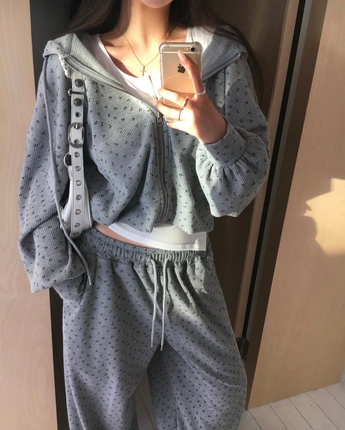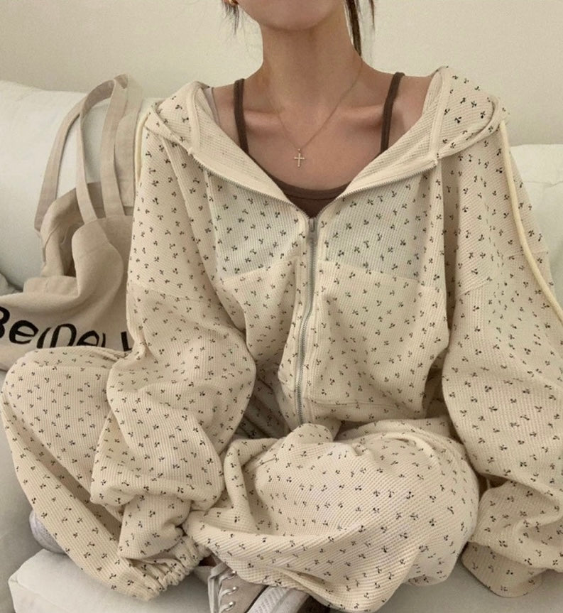 印花華夫格衛衣set