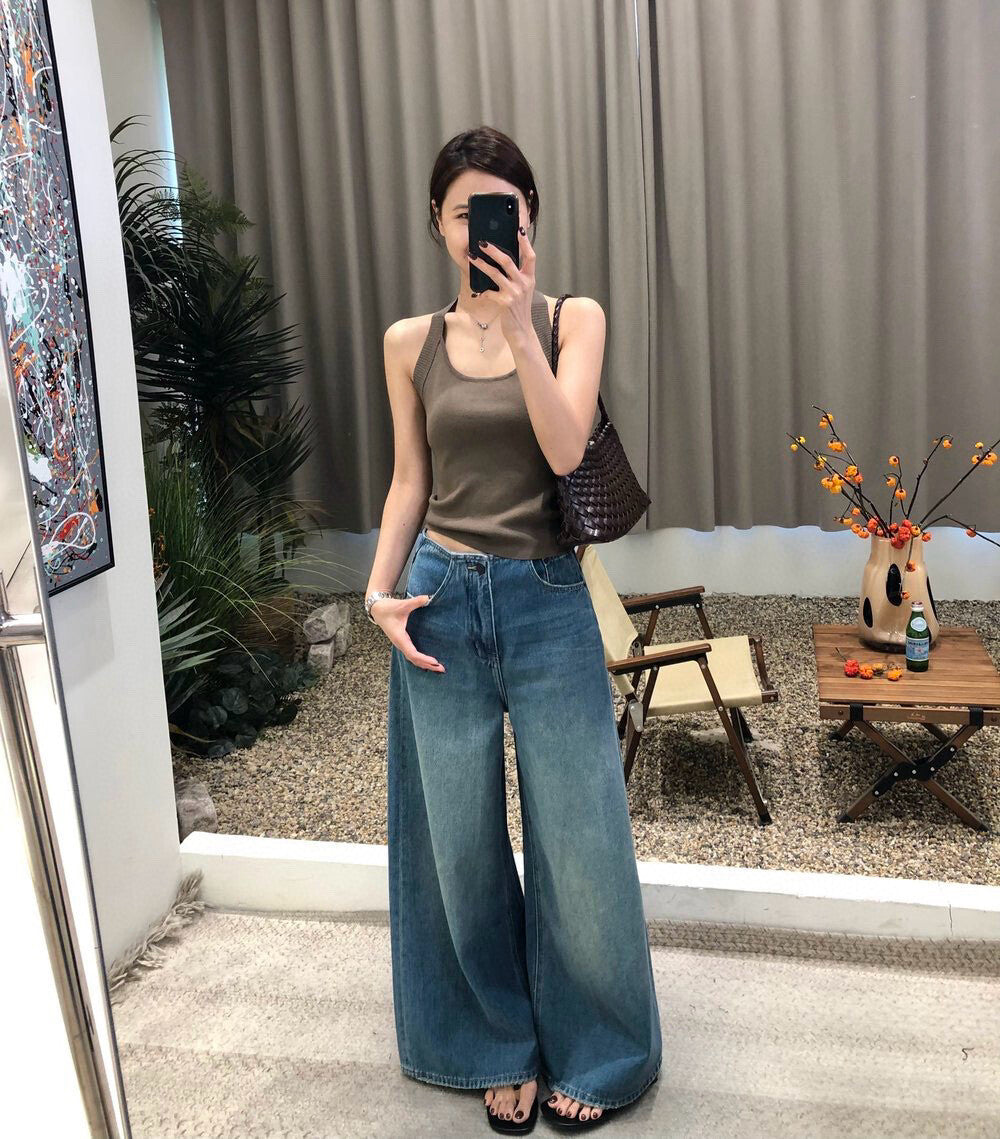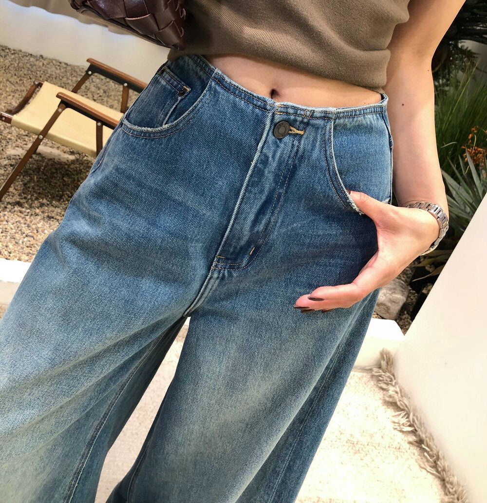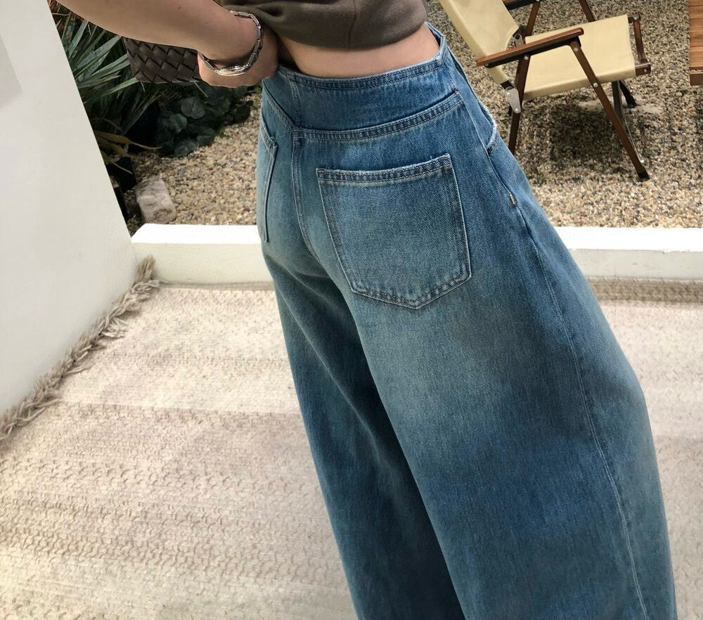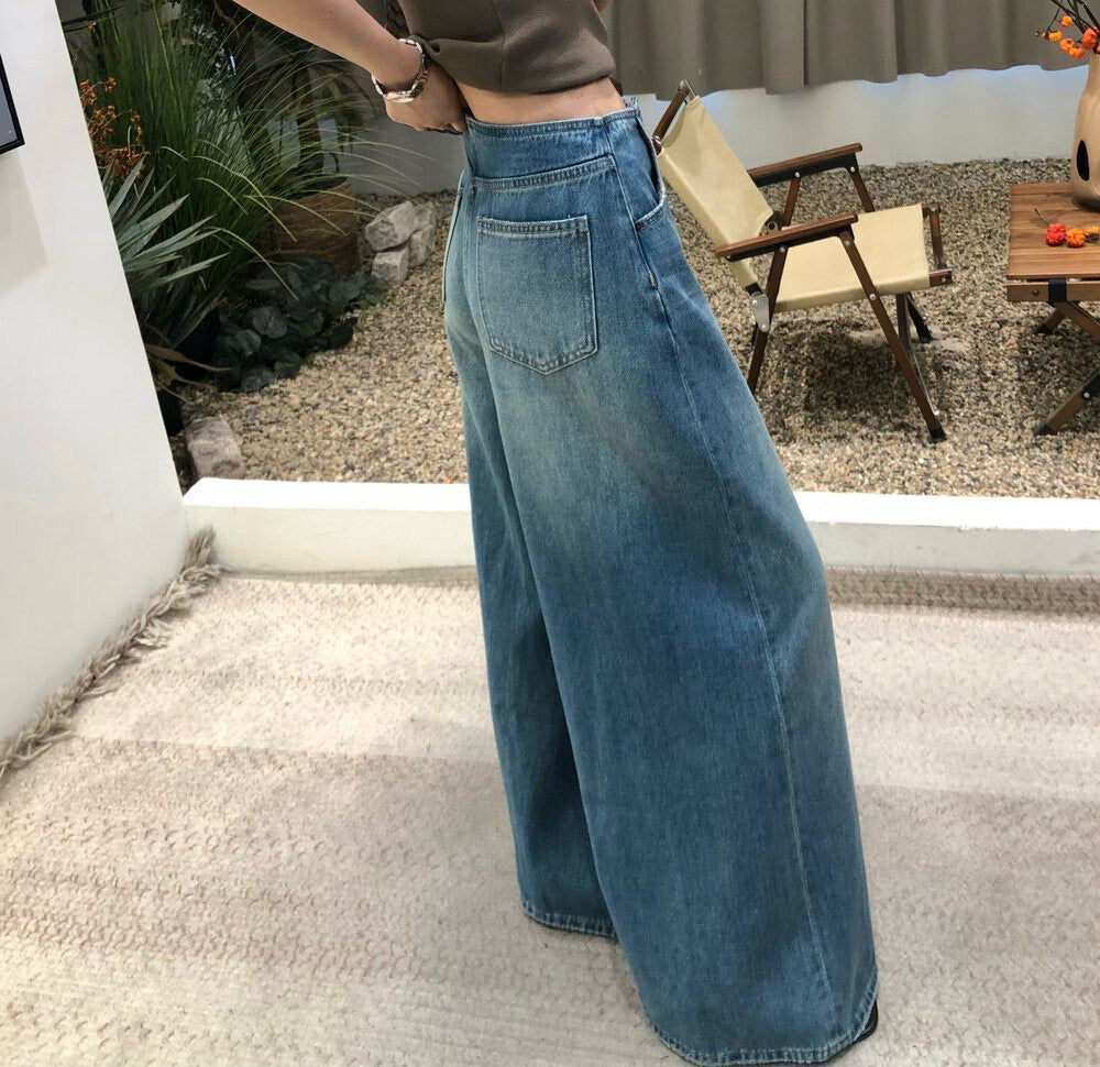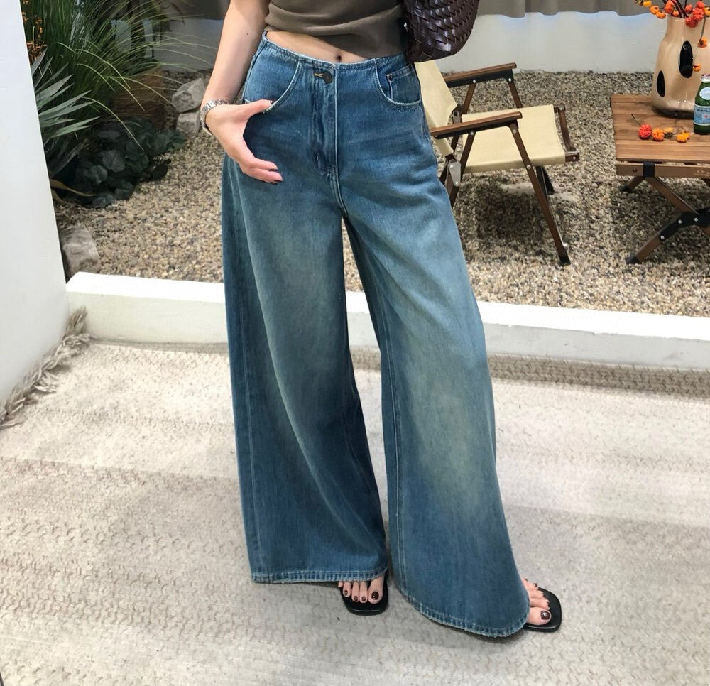 復古水洗寬鬆顯瘦闊腿牛仔褲