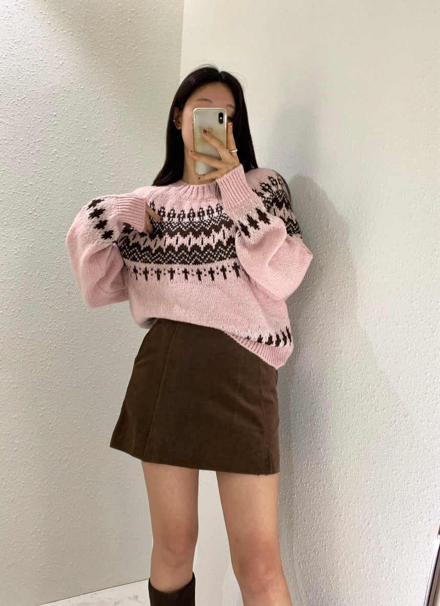 經典圓領設計,簡約又有型😘費爾島圖案,充滿復古氛圍柔軟毛衣,保暖又舒適✨秋冬必備,穿上即刻提升氣質!滌綸面料