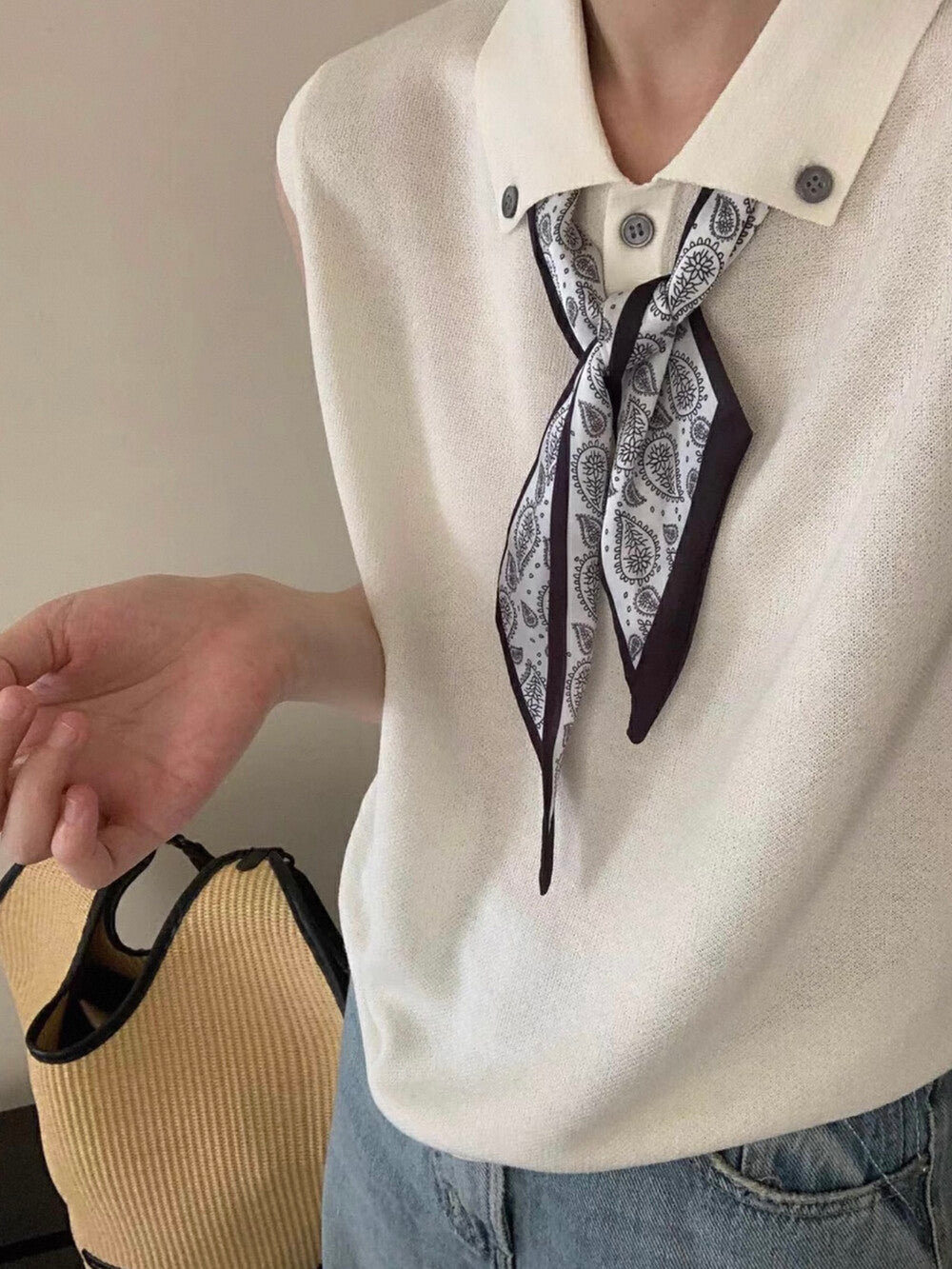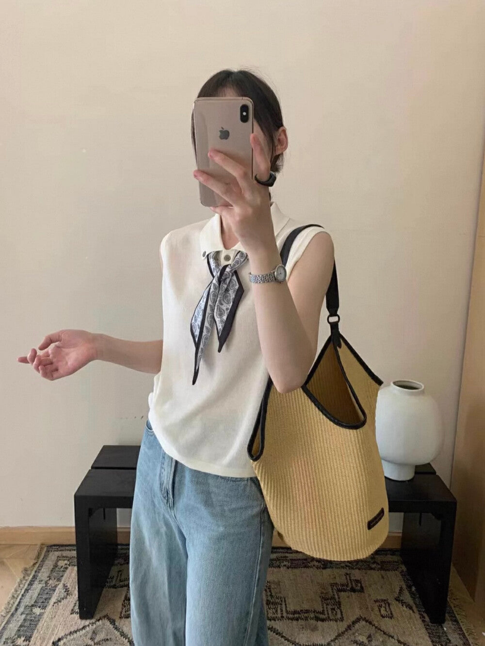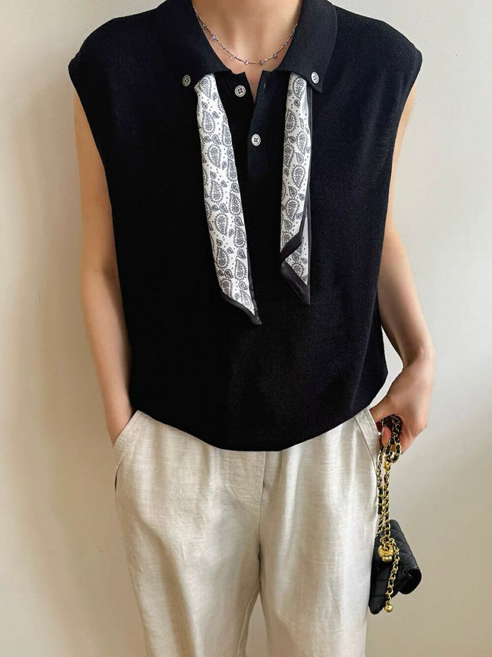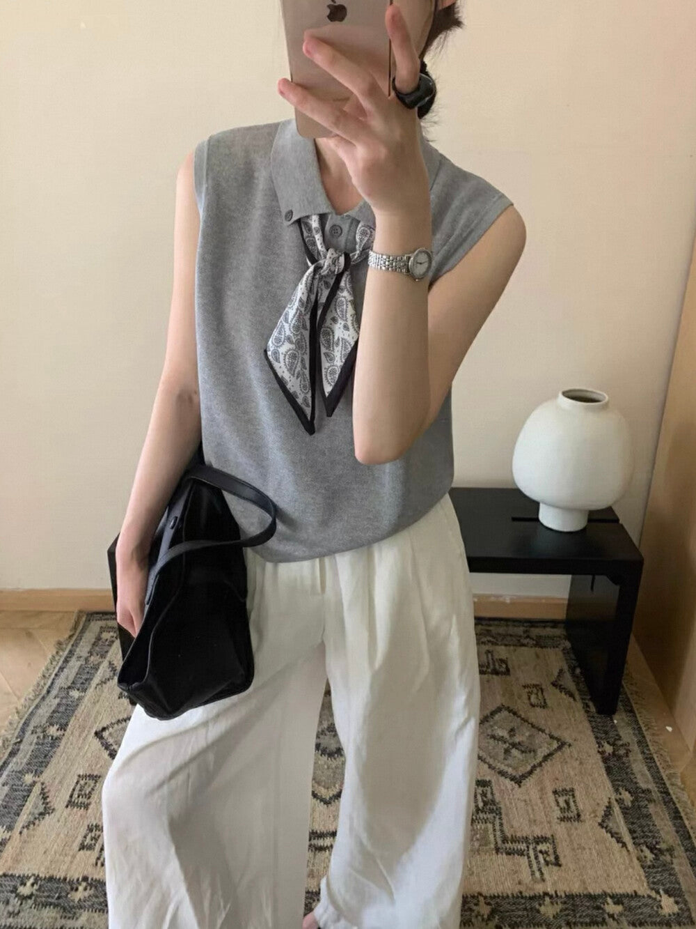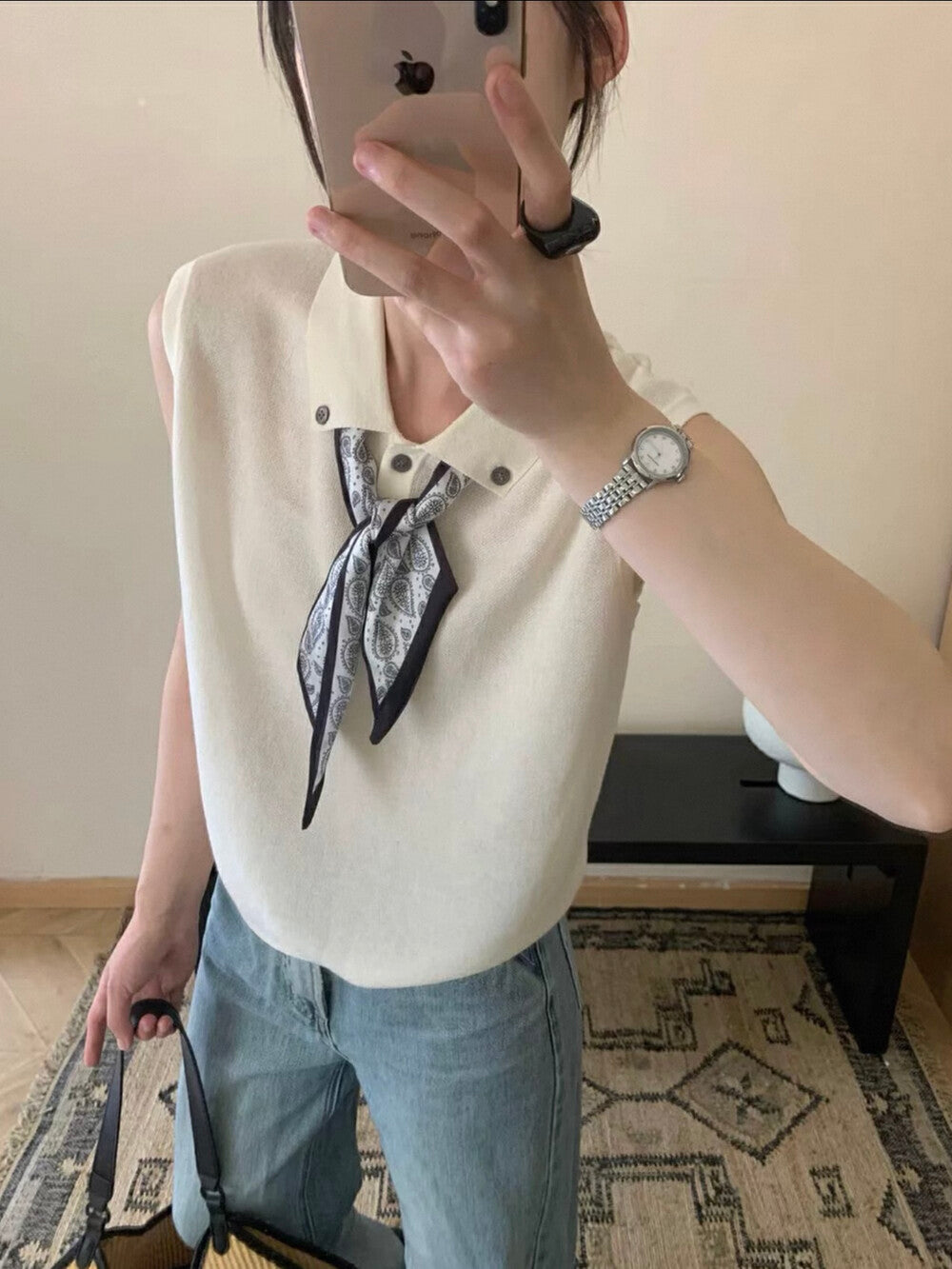 精緻翻領設計俐落有型 ✨針織面料柔軟透氣搭配絲巾提升優雅度疊穿打造層次感穿搭棉面料