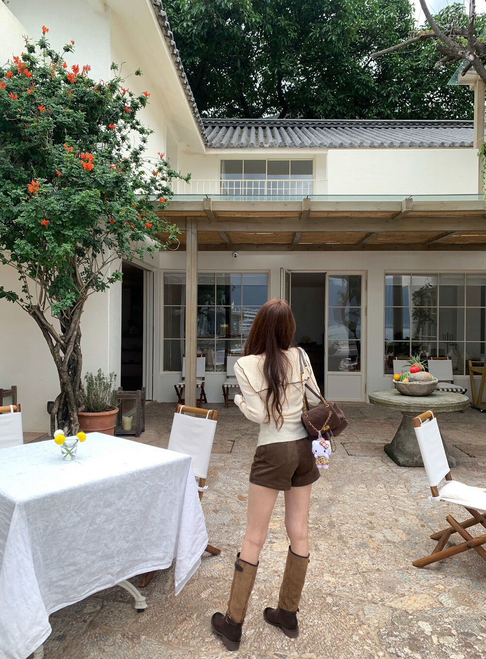 麂皮材質質感滿分休閒剪裁超好活動短褲款式清爽顯腿長輕鬆穿出復古型格滌綸面料