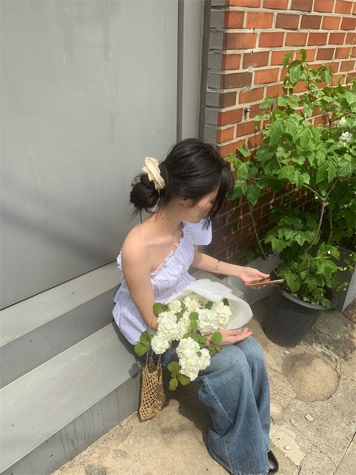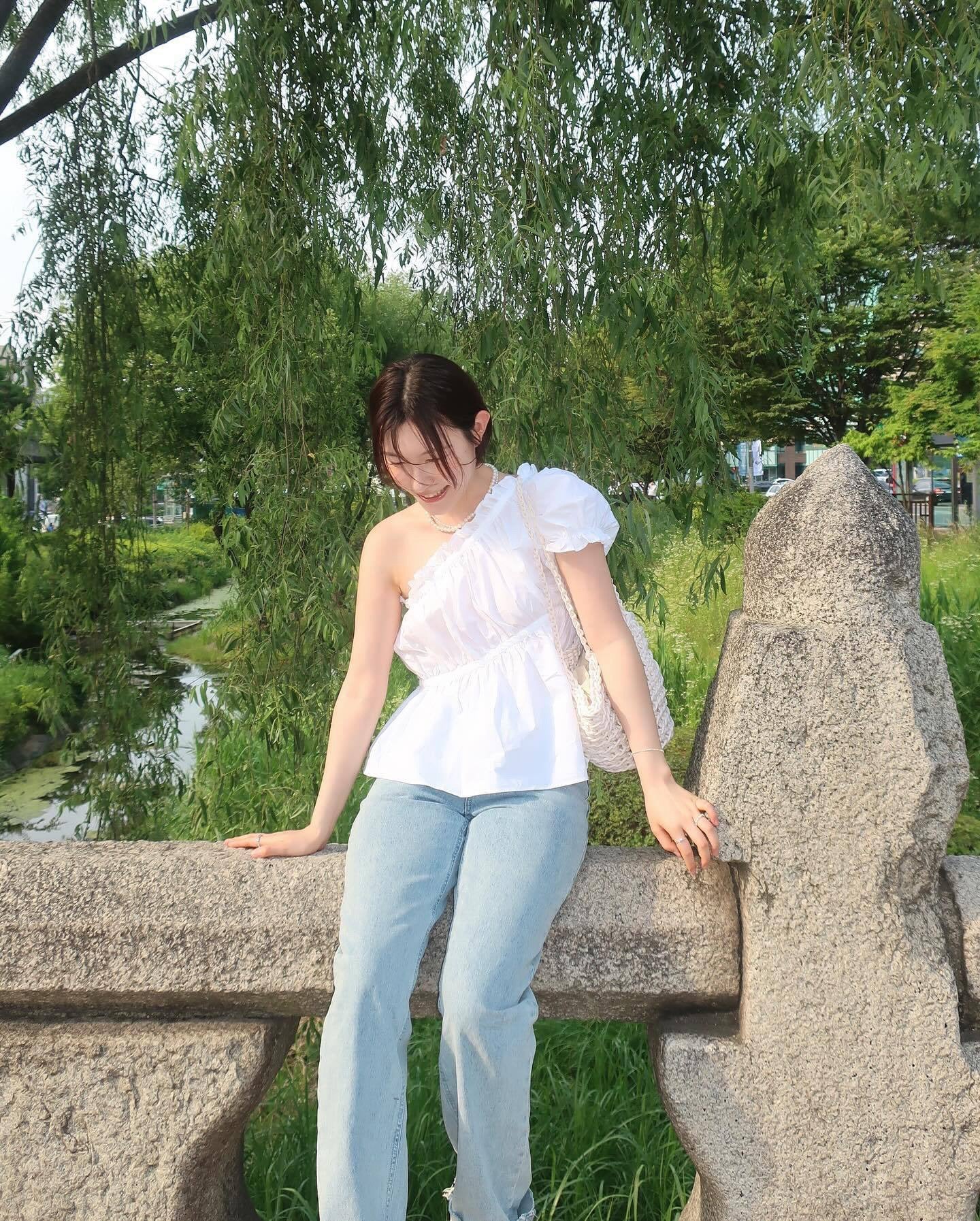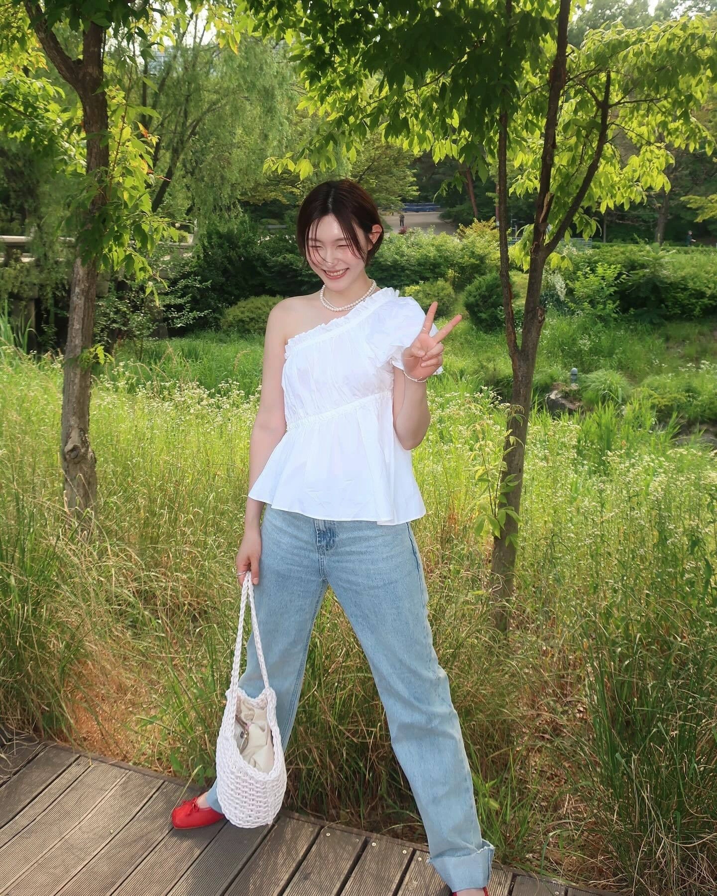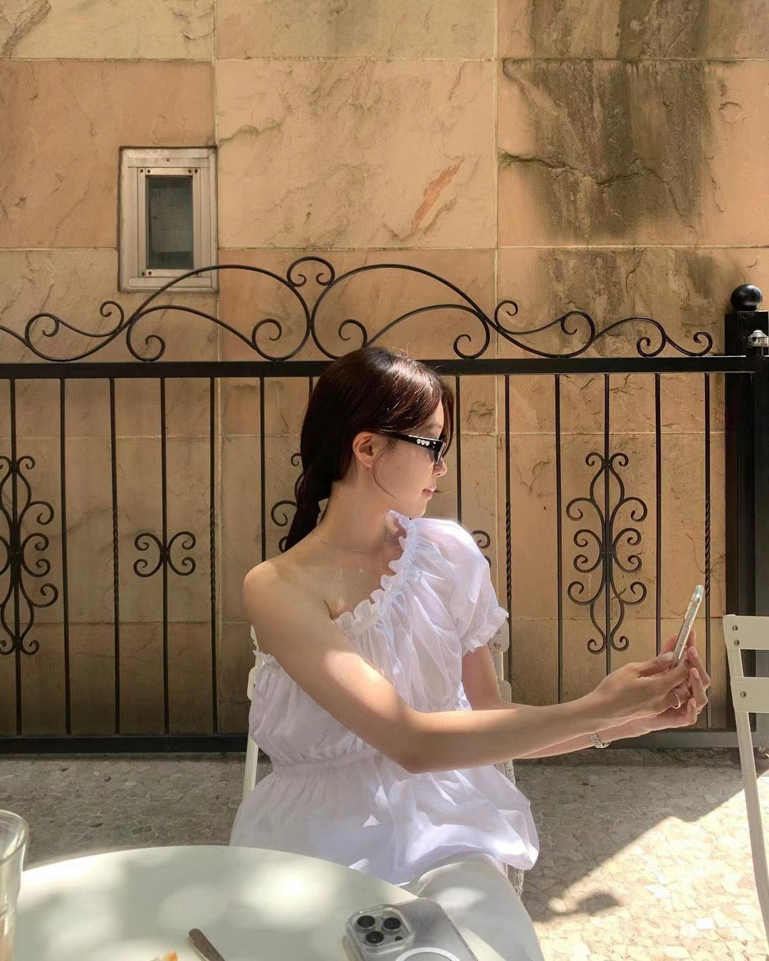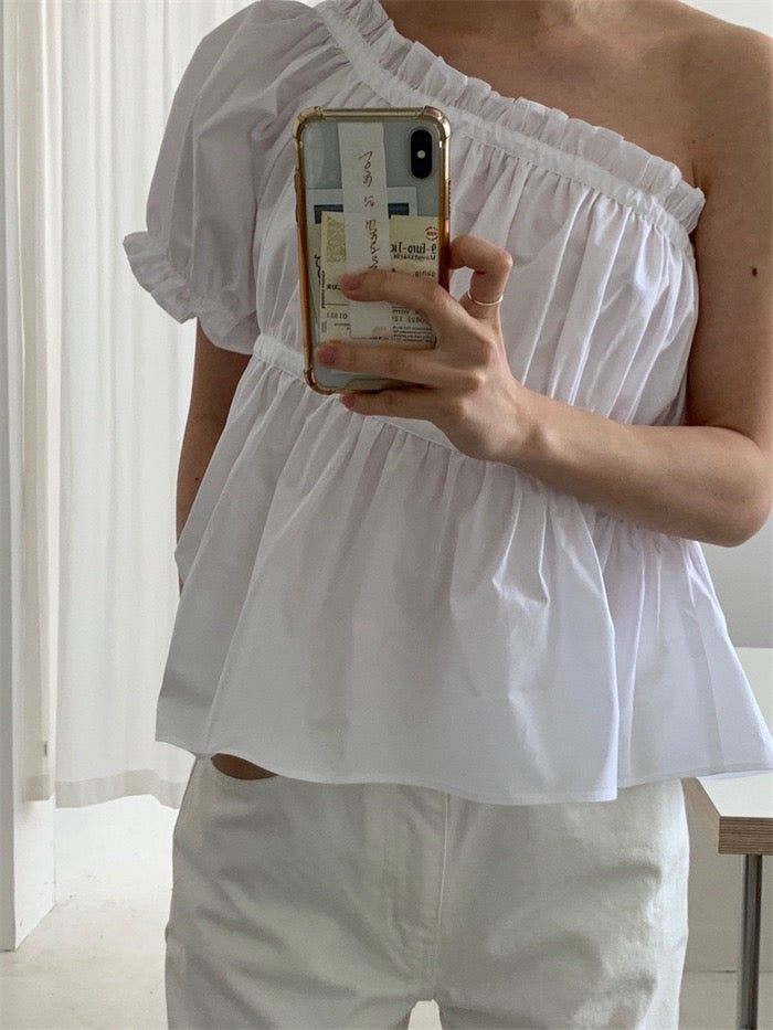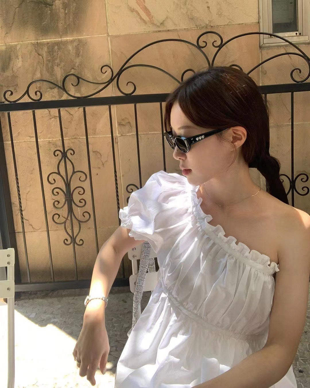斜肩設計小性感😉遮手臂同時拉長肩頸線隨意搭條牛仔褲就很好看通勤約會都合適棉面料
