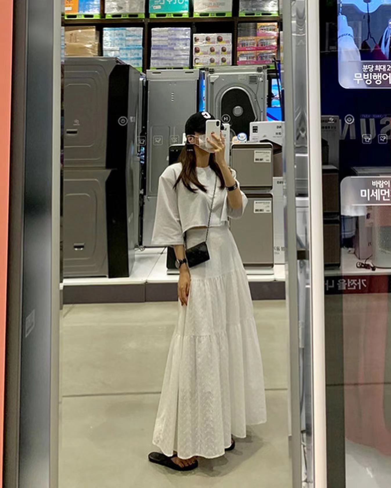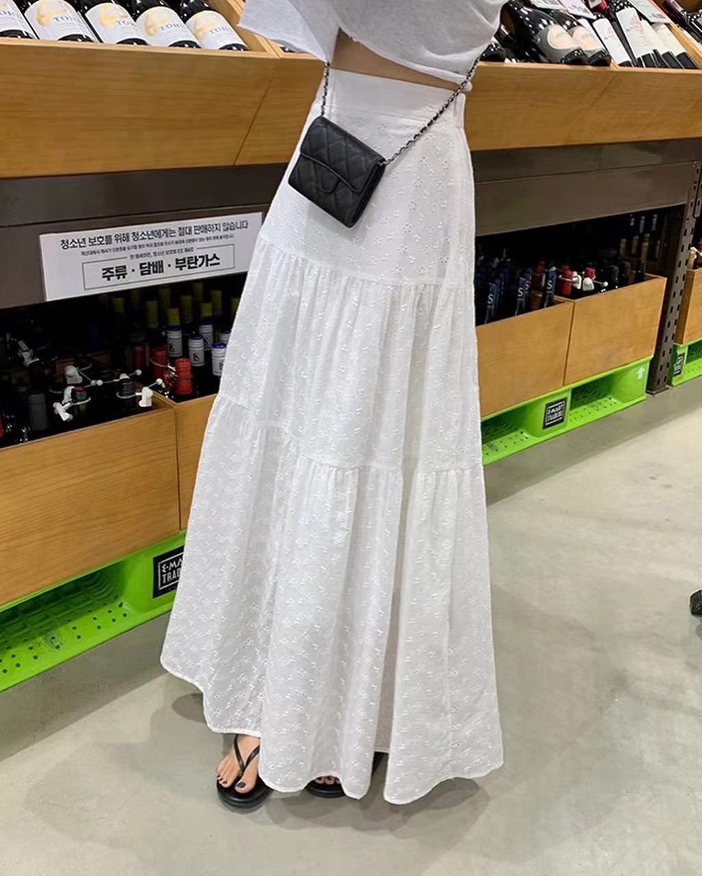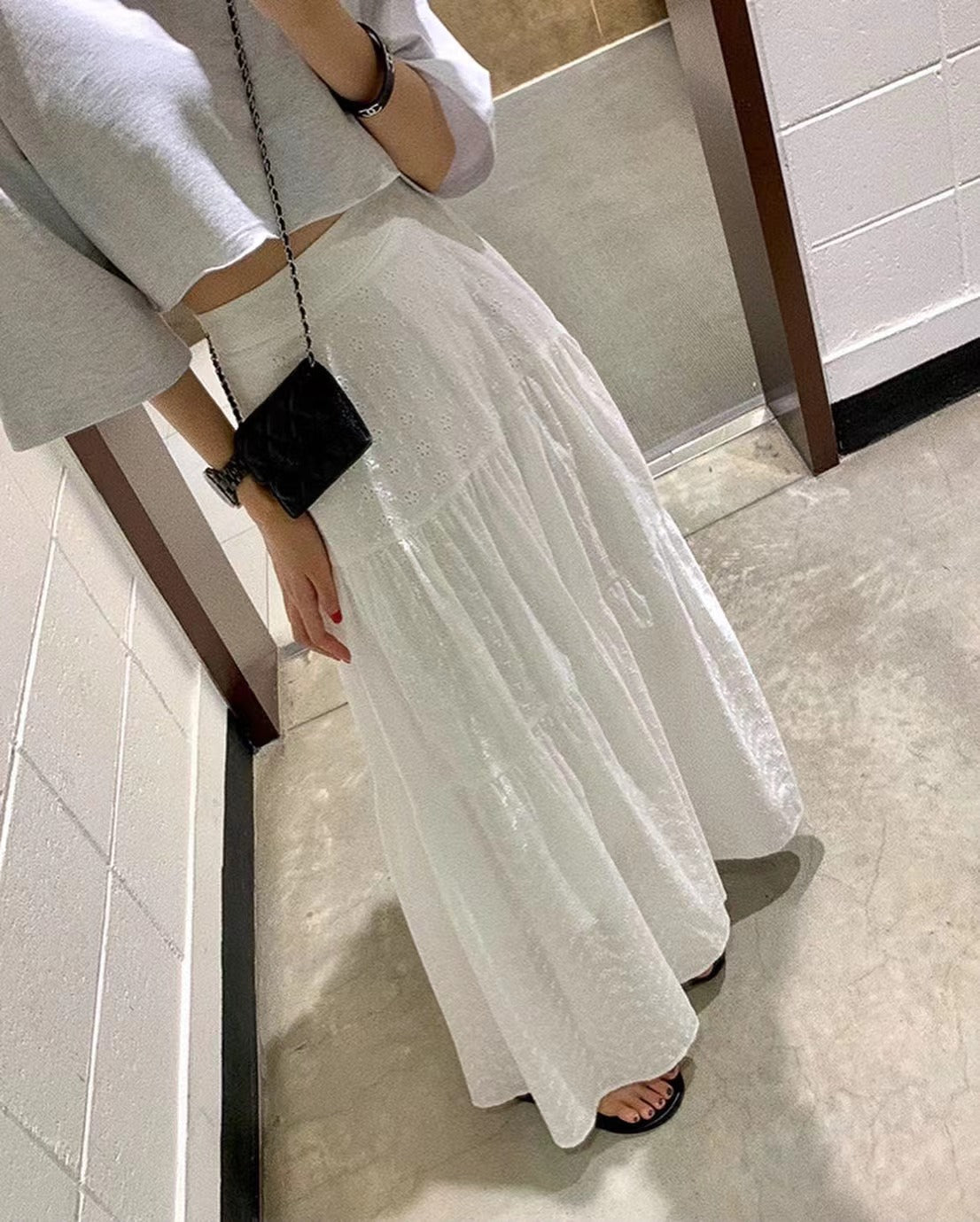 著上身超靚~甜美刺繡蕾絲💗飄逸大擺長裙春夏必備單品😍滌綸布料材質:100% 滌綸Size:Size Free腰圍 60cm裙長 91cm*All measurements are measured by hands, thus there might be a 1-2 cm difference from measurement.