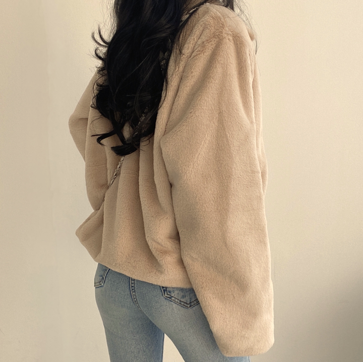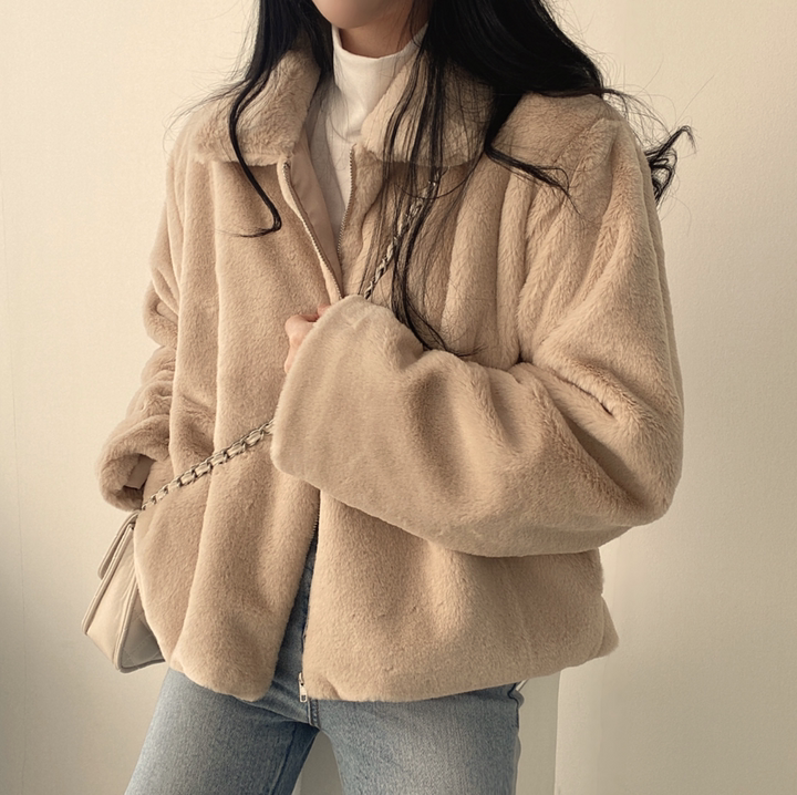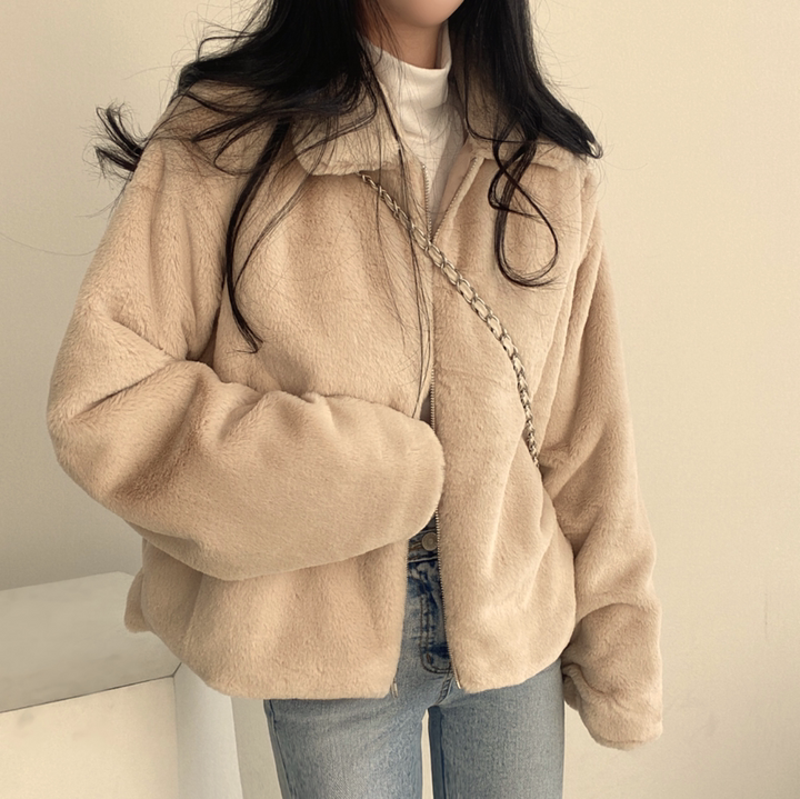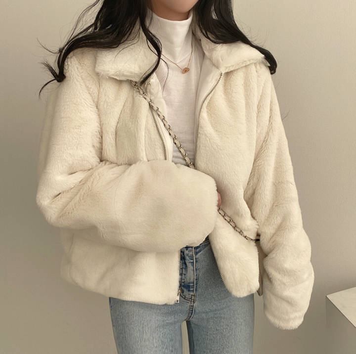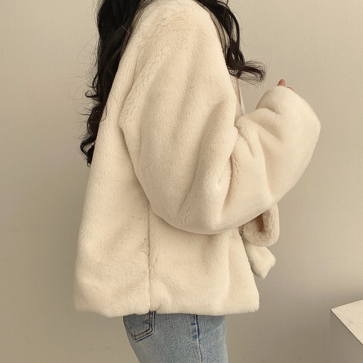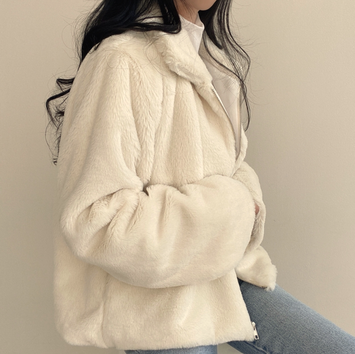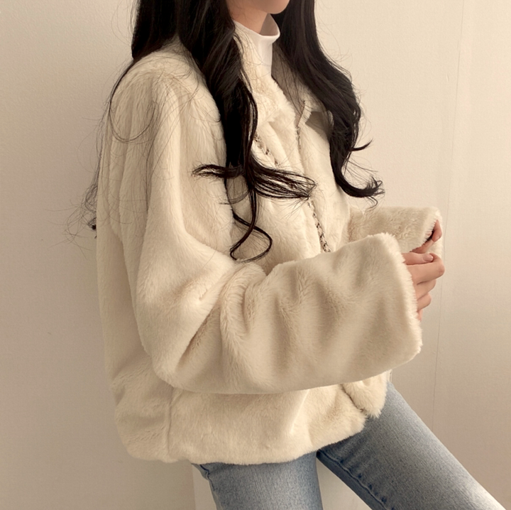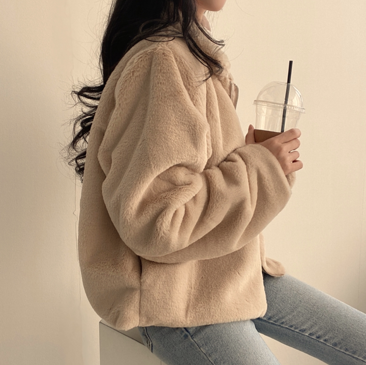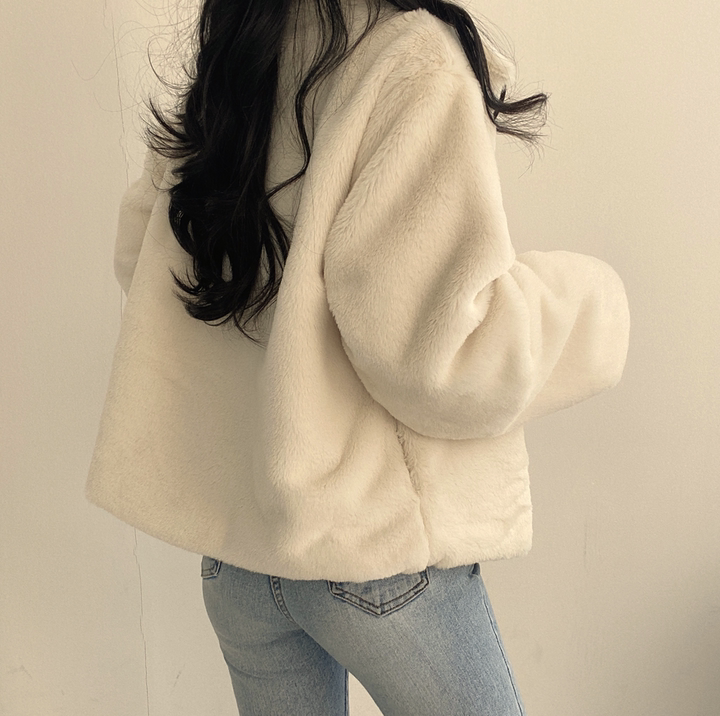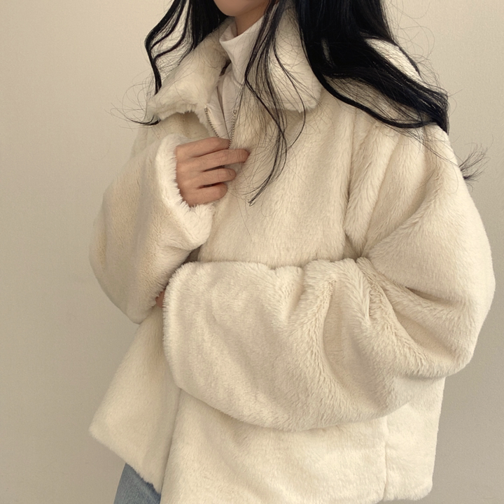毛毛立領短款外套
