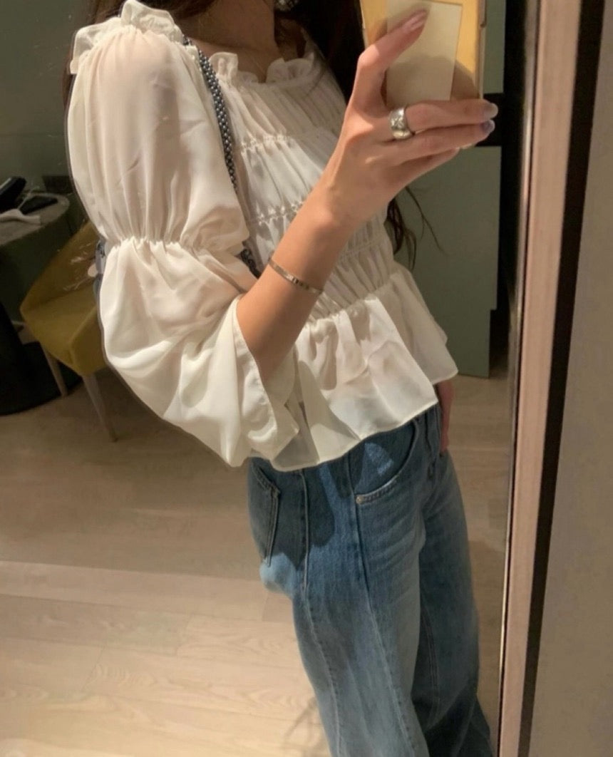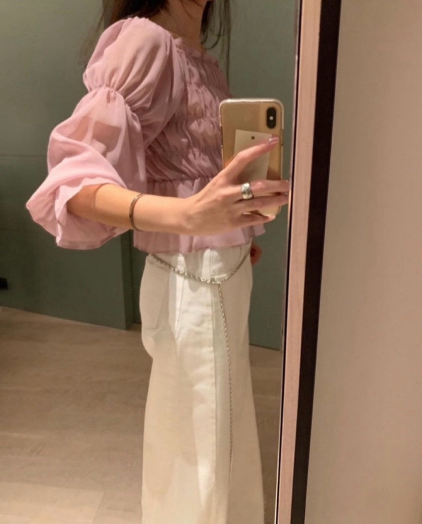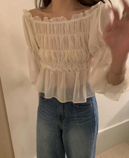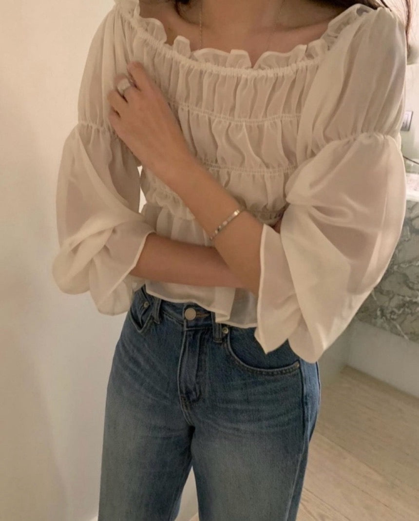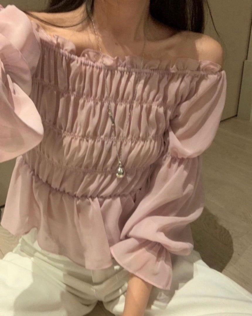 簡約一字領設計,展現迷人肩部線條😘雪紡材質,輕盈透氣,穿著舒適💯優雅氣質,完美搭配各種造型手臂活動空間大,讓你自由自在💃雪紡面料