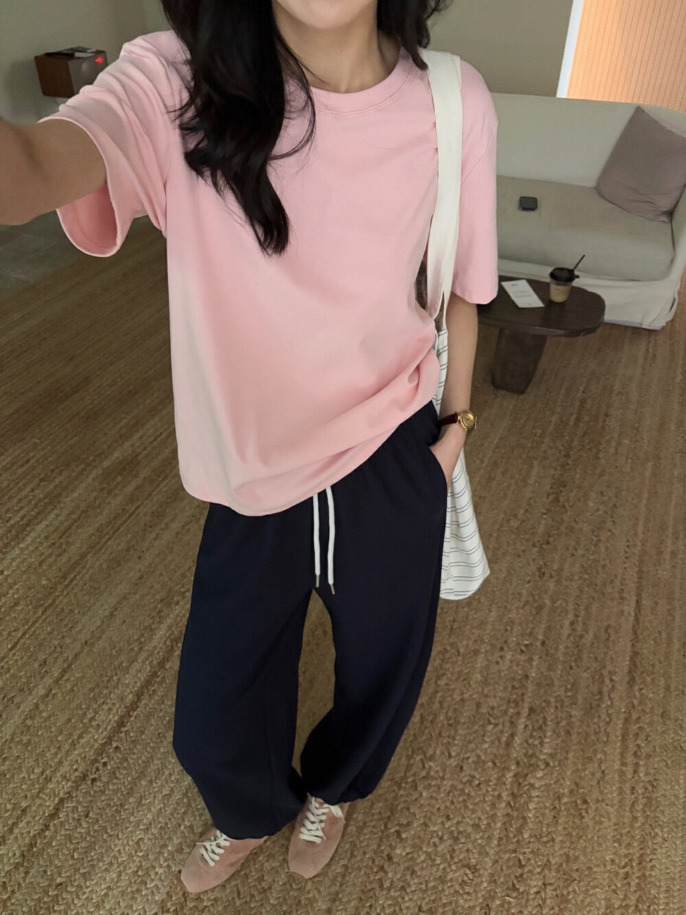 柔軟棉質面料,舒適透氣🌸彈力設計,貼合身形不緊繃經典圓領,簡約百搭日常穿搭首選,輕鬆搭配任何下身💯棉面料