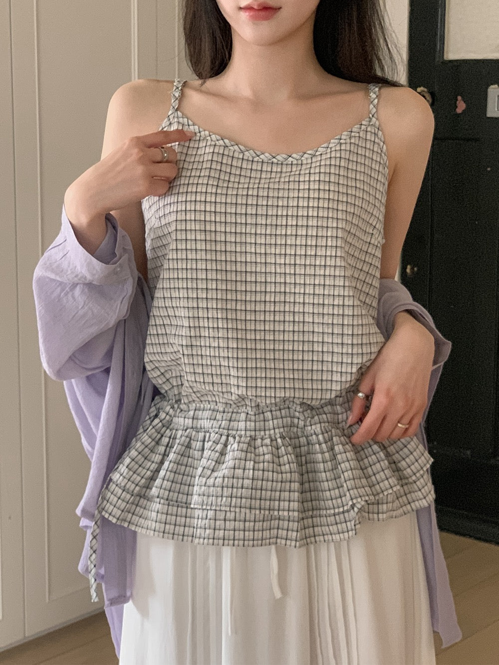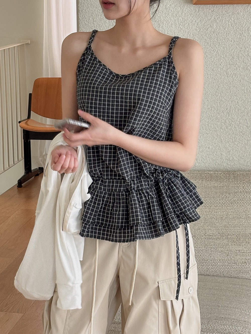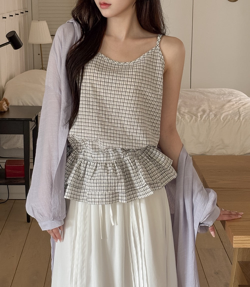 荷葉邊抽繩綁帶吊帶