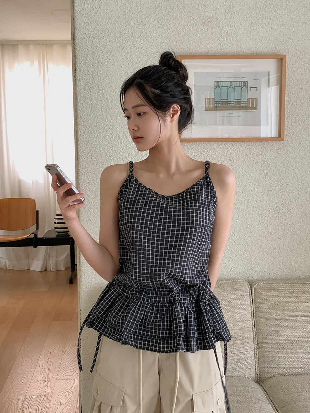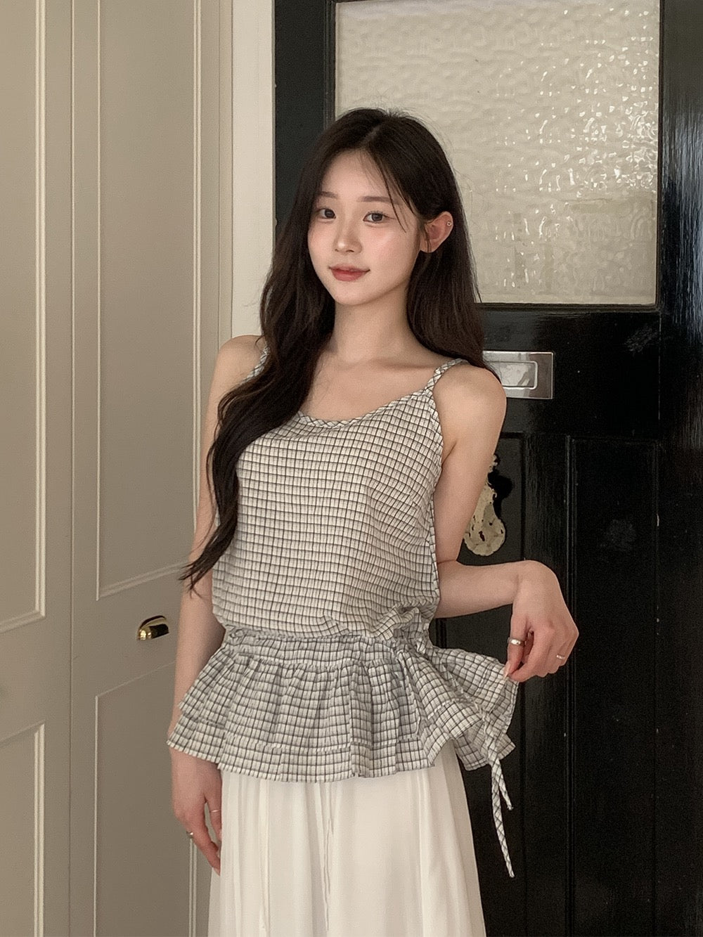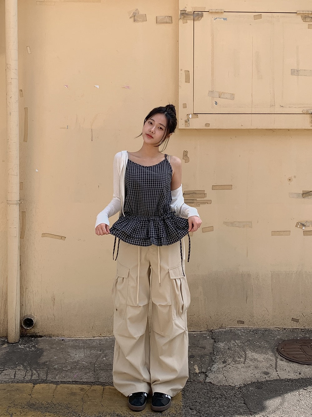 荷葉邊抽繩綁帶吊帶