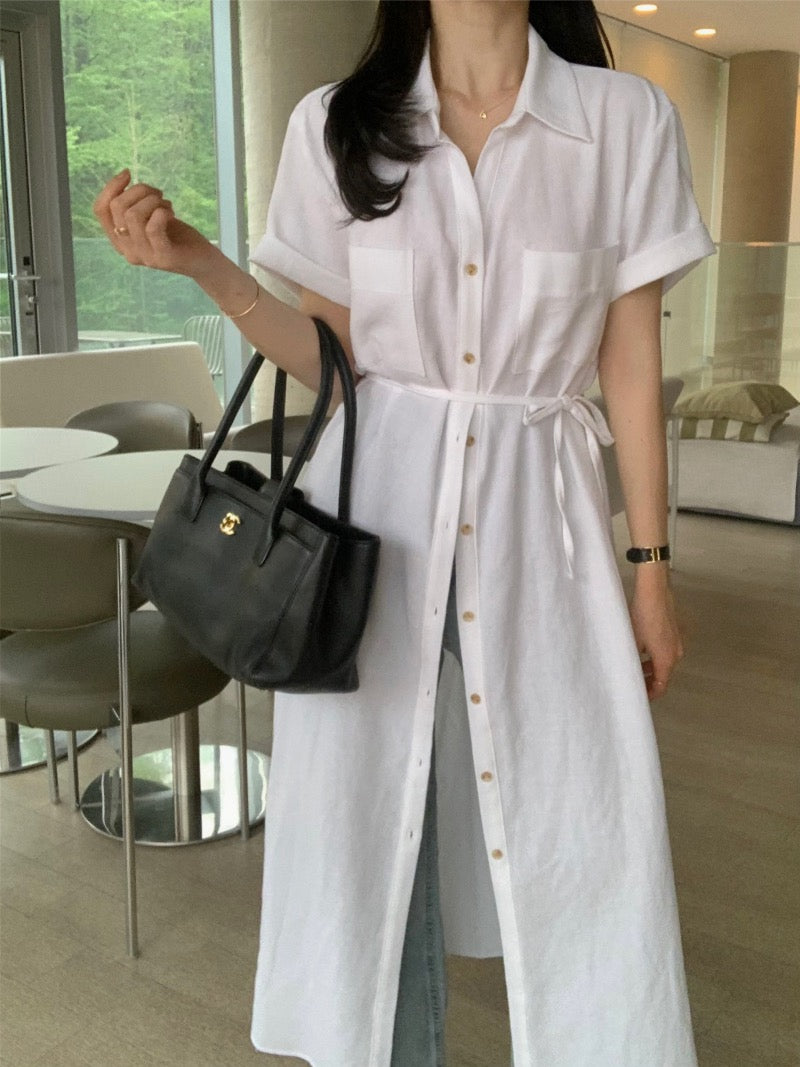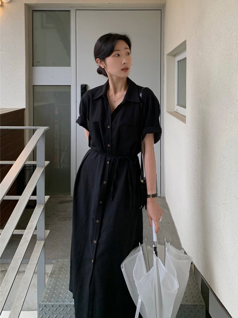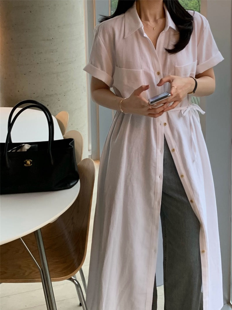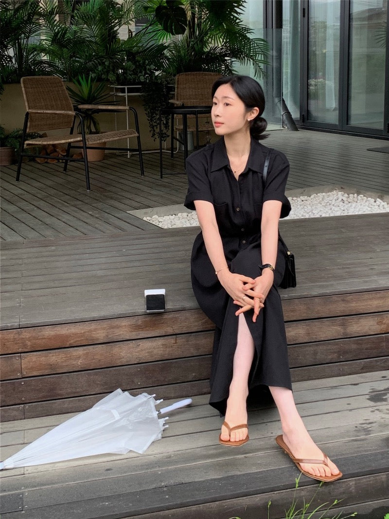 簡約單排扣恤衫連身裙