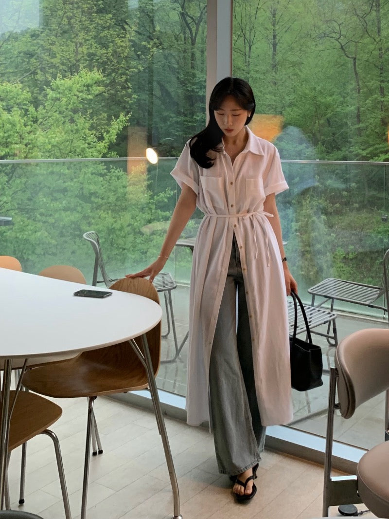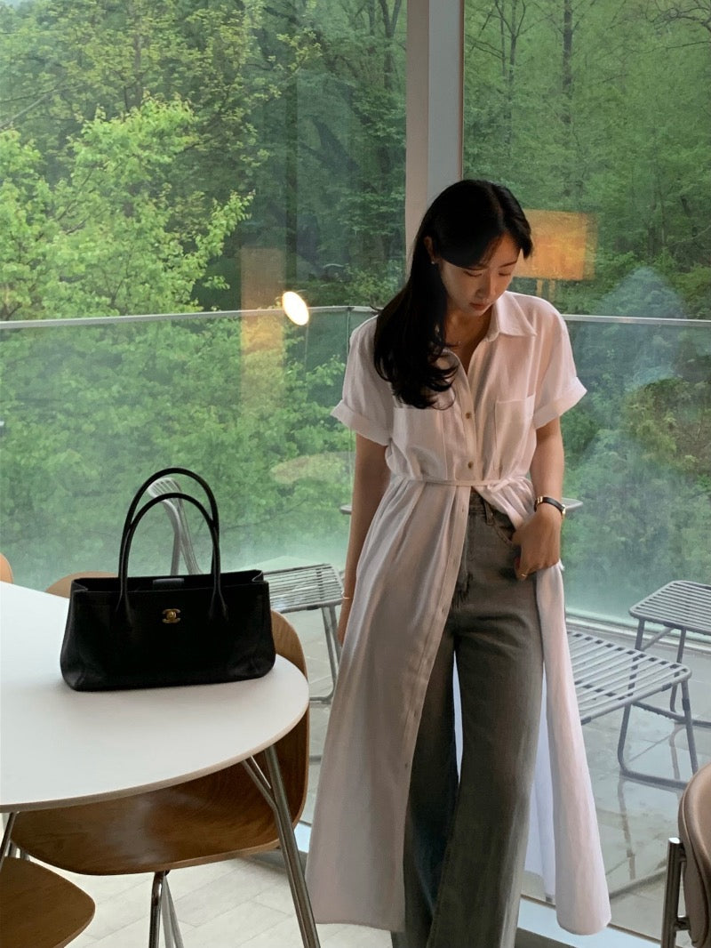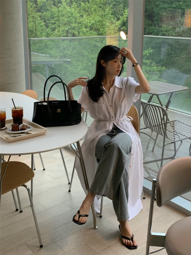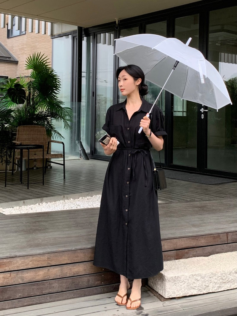 簡約單排扣恤衫連身裙